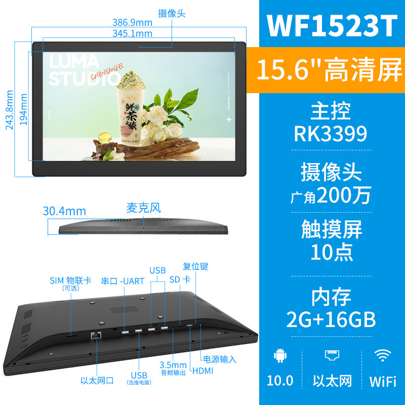 • 15.6inch WF1523T 2.0million 카메라 2+16GB 안드로이드 10 터치 광고 기계
