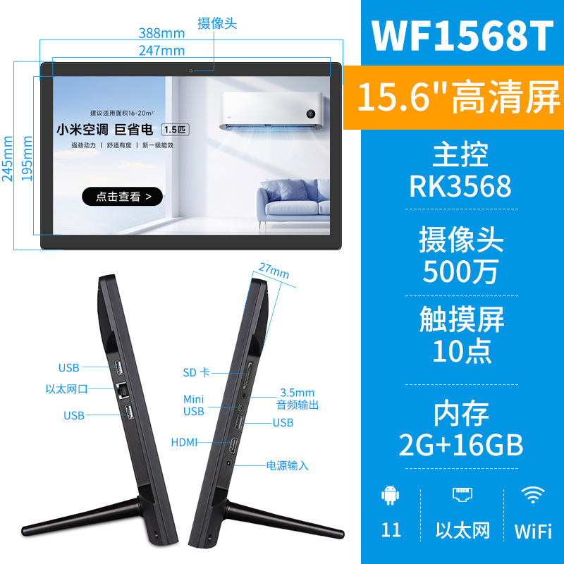 • 15.6inch WF1568T 5.0million 카메라 2+16GB 안드로이드 11 터치 광고 기계