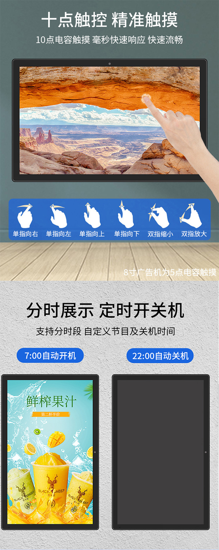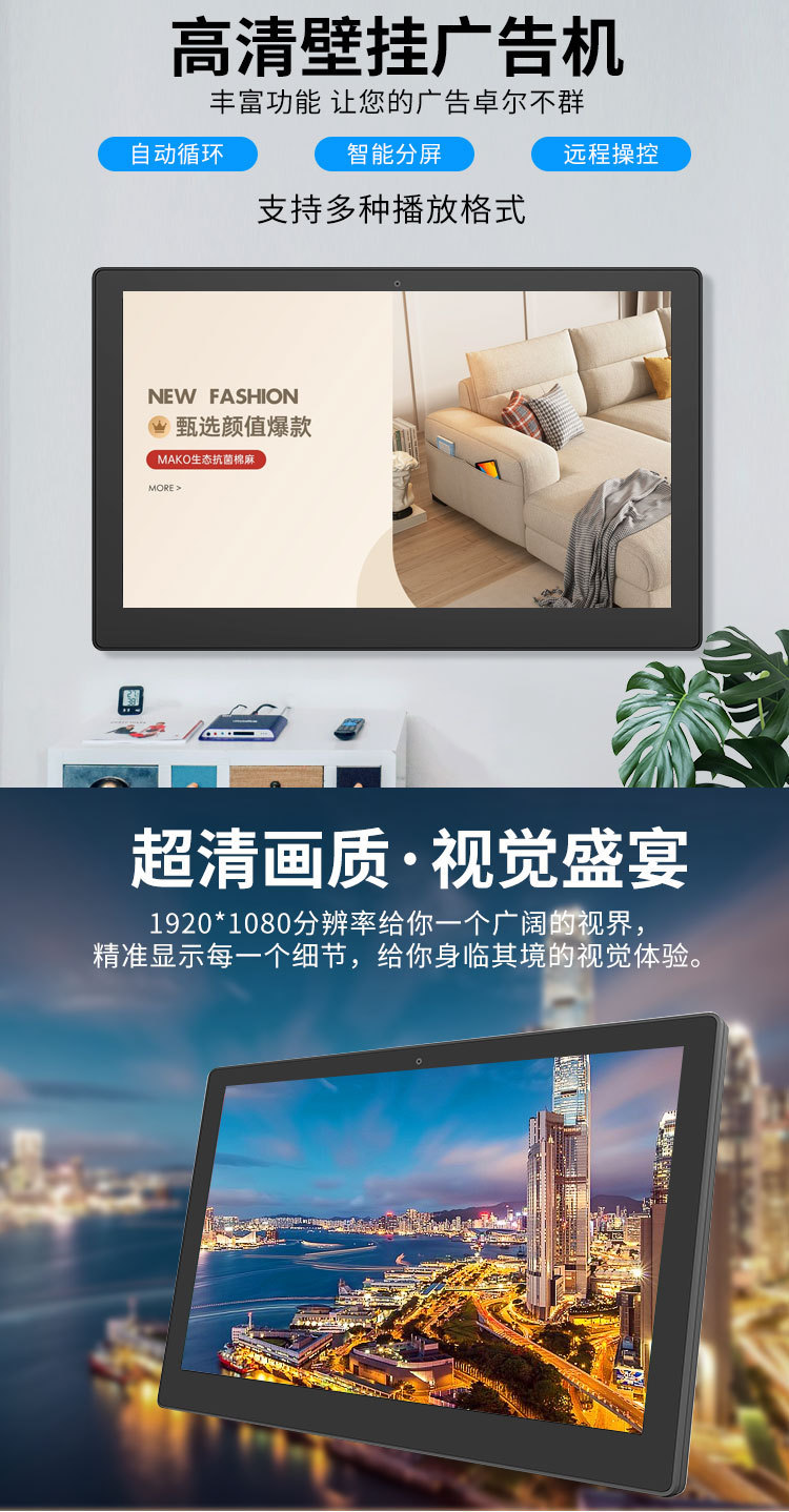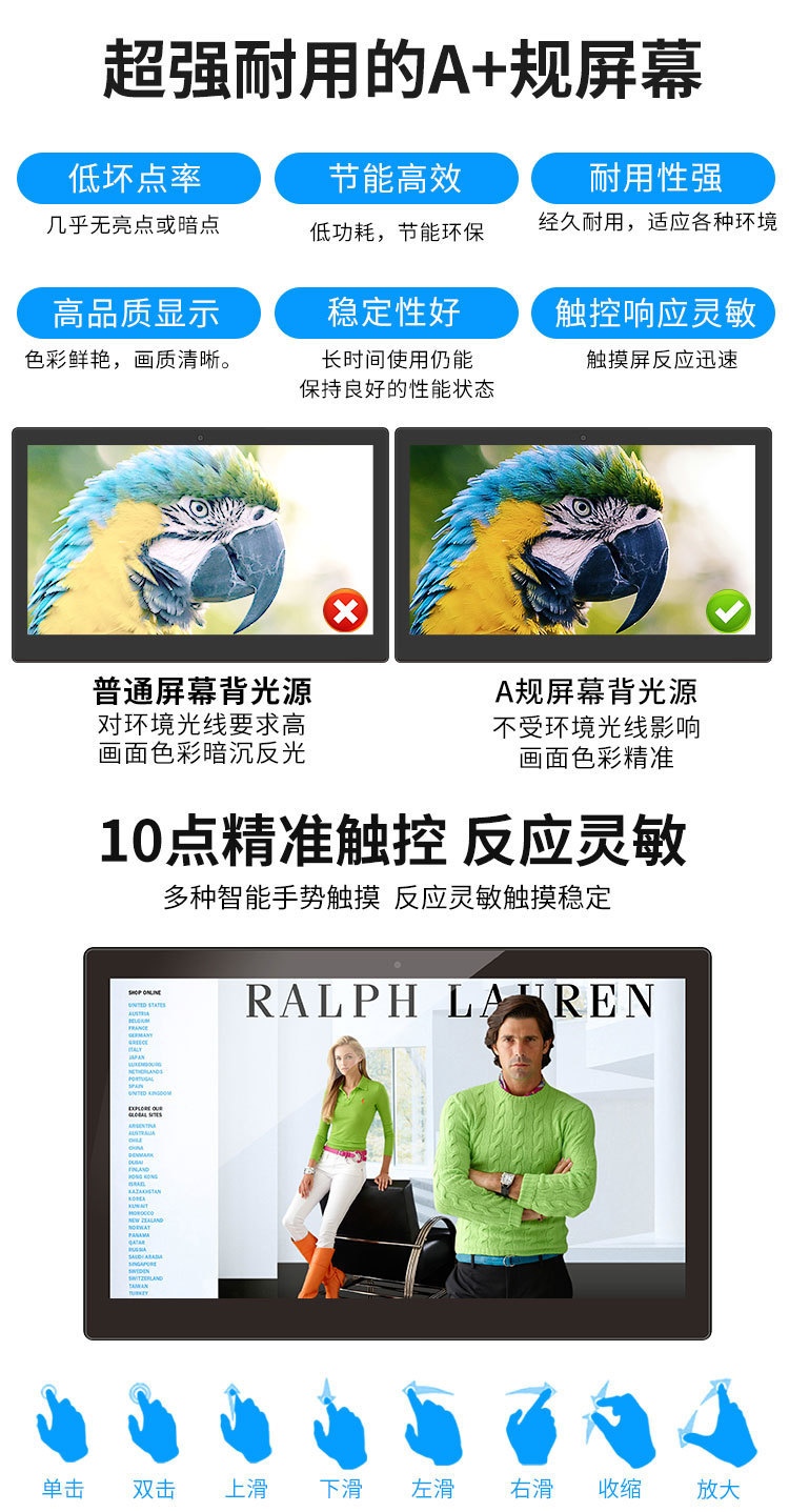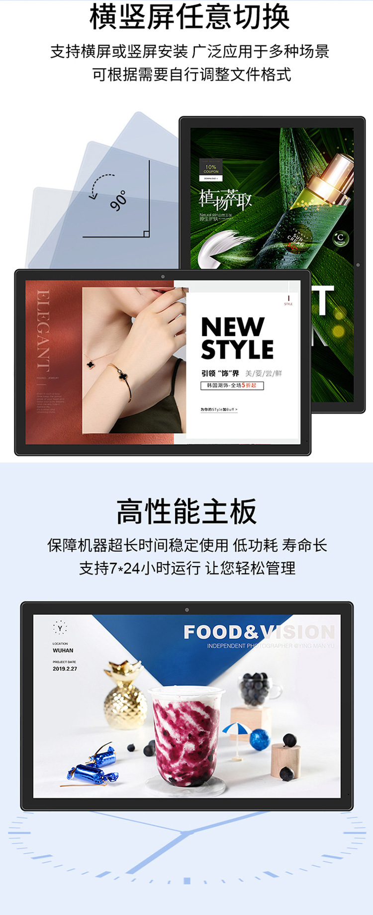 15.6 인치 벽걸이 형 고화질 터치 올인원 광고 기계 터치 디스플레이 화면 수평 및 수직 네트워크 지능형 분할 화면스토어 가기