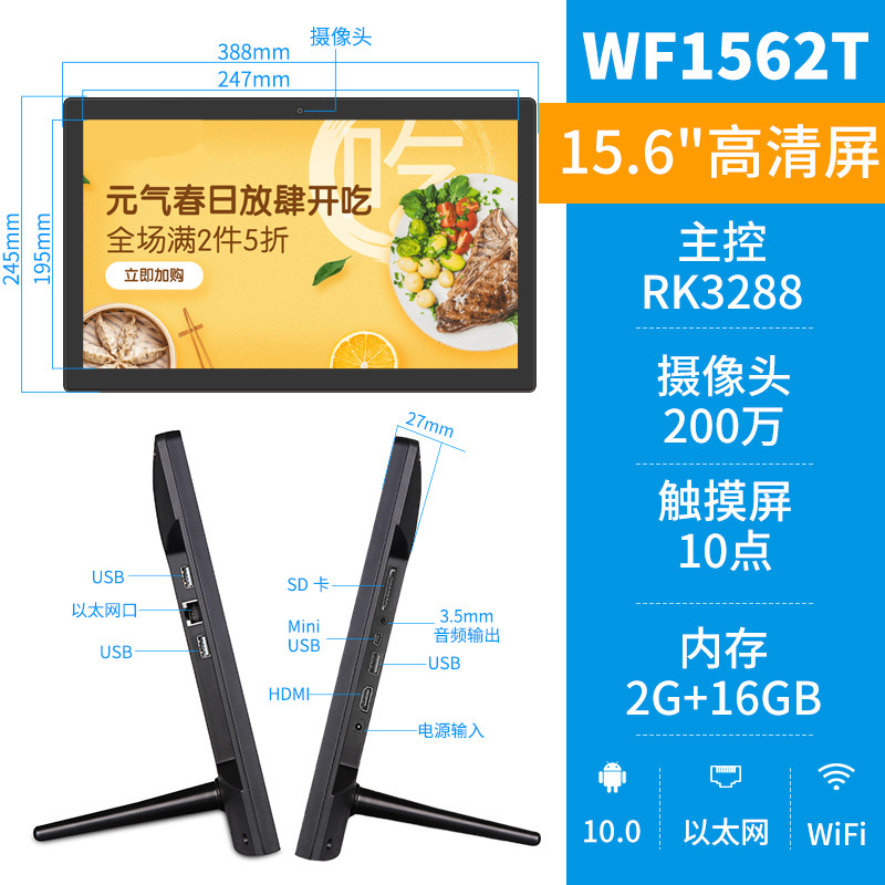 • 15.6inch WF1562T 2.0million 카메라 2+16GB 안드로이드 10 터치 광고 기계