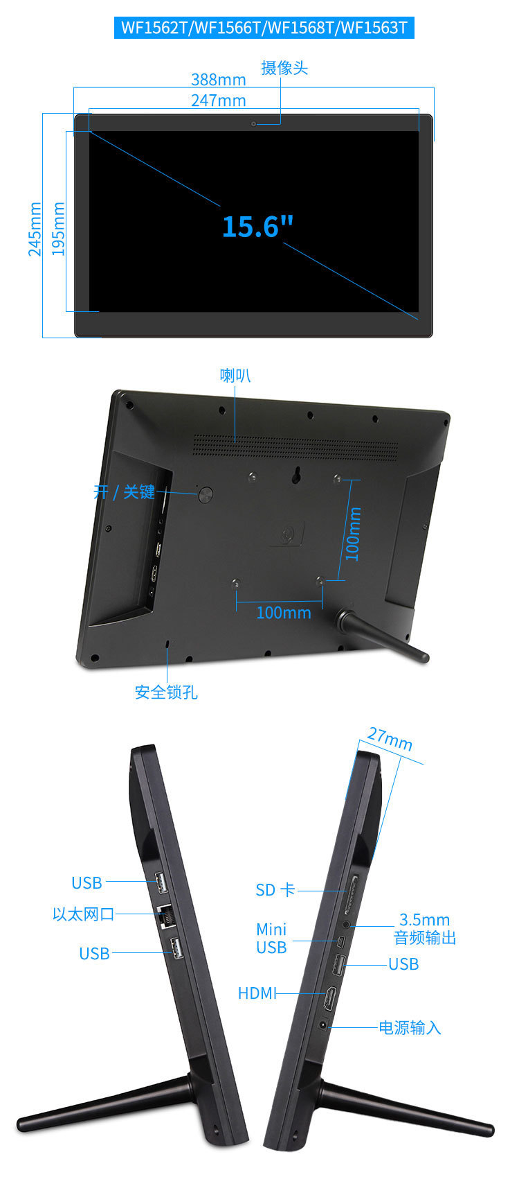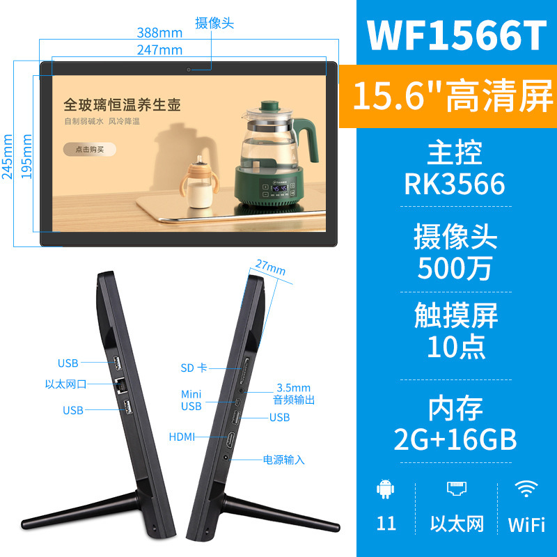 • 15.6inch WF1566T 5.0million 카메라 2+16GB 안드로이드 11 터치 광고 기계