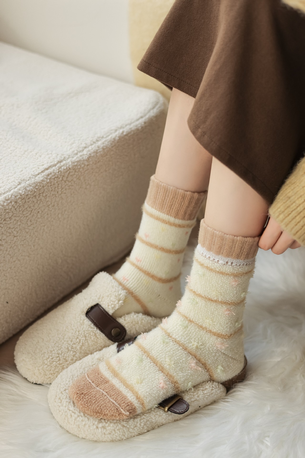 초두꺼운 보온 겨울 한국 양말 캐시미어 양말 여성용 가을 겨울 중목 양말 플러스 벨벳 두꺼운 울 양털 양말스토어 가기