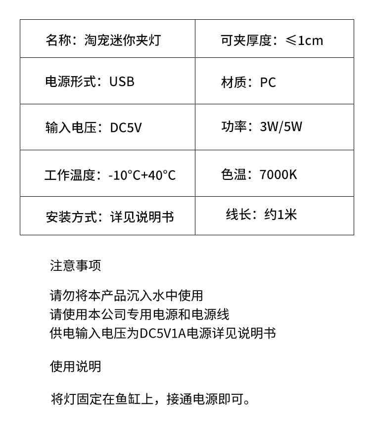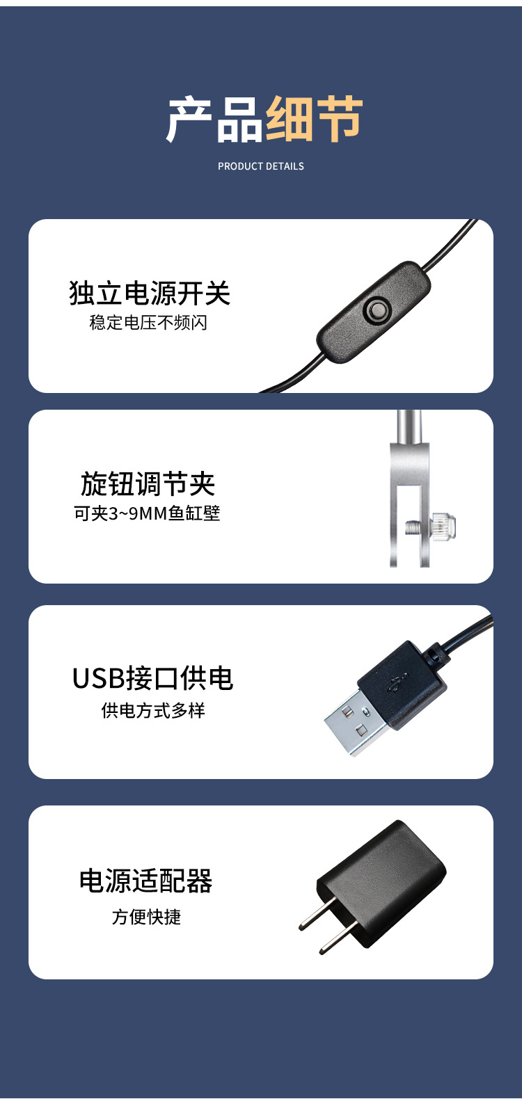 USB 작은 수족관 물고기 탱크 에너지 절약 클립 램프 360 ° 회전 가능한 높은 투과성 PC 소재 전등 물고기 탱크 물 공장 램프