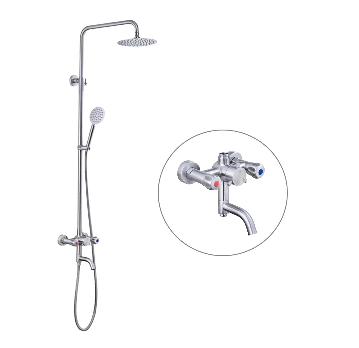 국경 304 스테인레스 스틸 더블 오픈 대형 샤워 세트 냉기와 핫 더블 컨트롤 벽 혼합 밸브 욕실 샤워스토어 가기