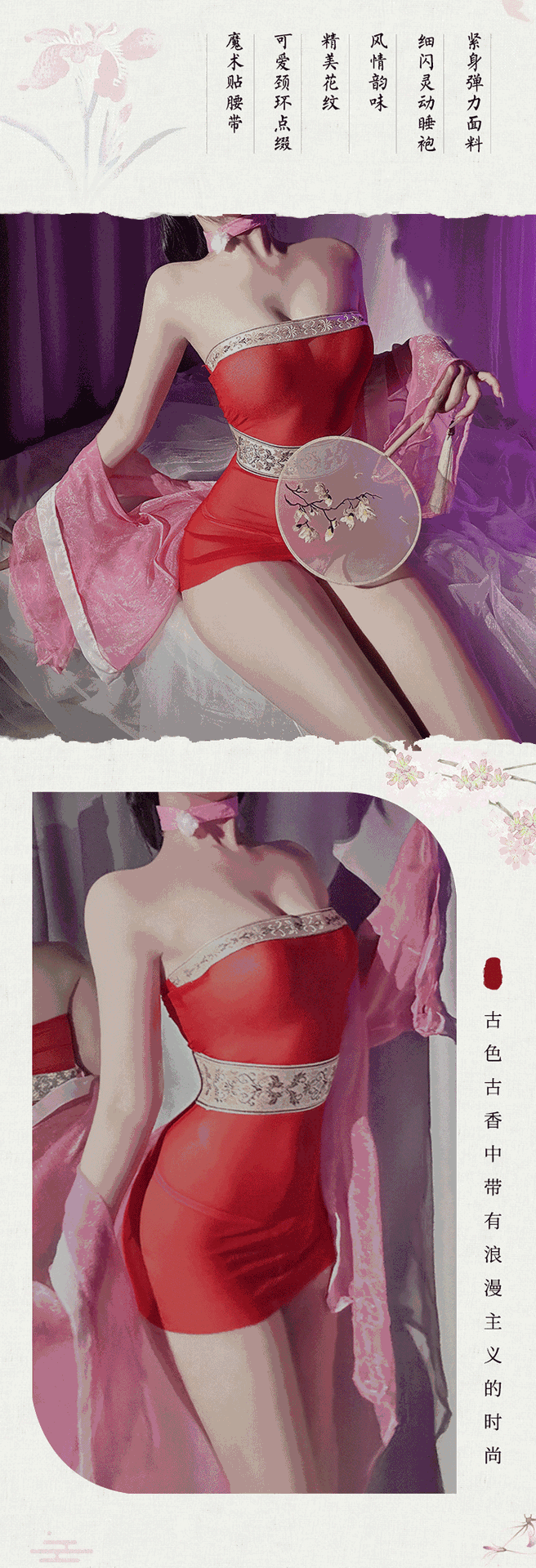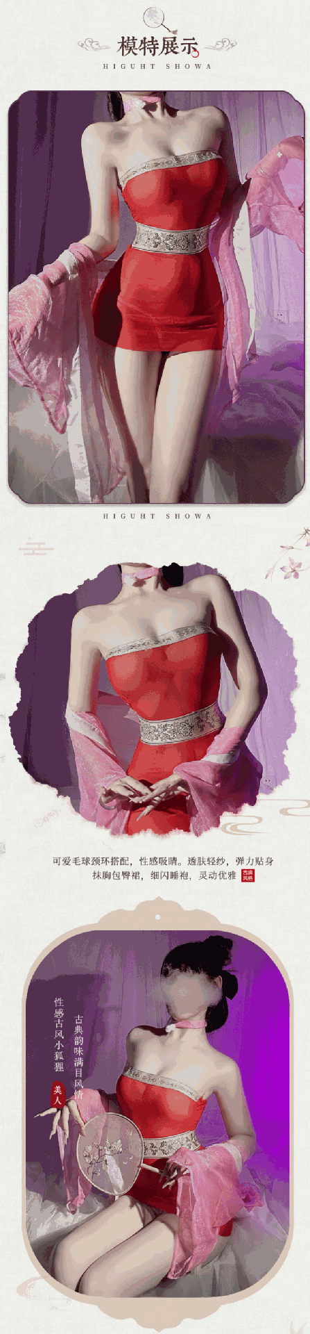 섹시한 속옷 섹시 로우 칼라 스트랩리스 폭스 악마 다지 백 힙합 스커트 유니폼 세트
