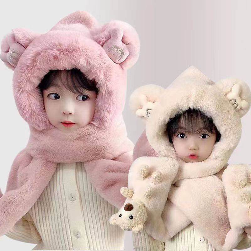 겨울 소년 소녀 슈퍼 귀여운 아기 모자와 스카프 통합 가을과 겨울 아기 귀 보호 기모스토어 가기