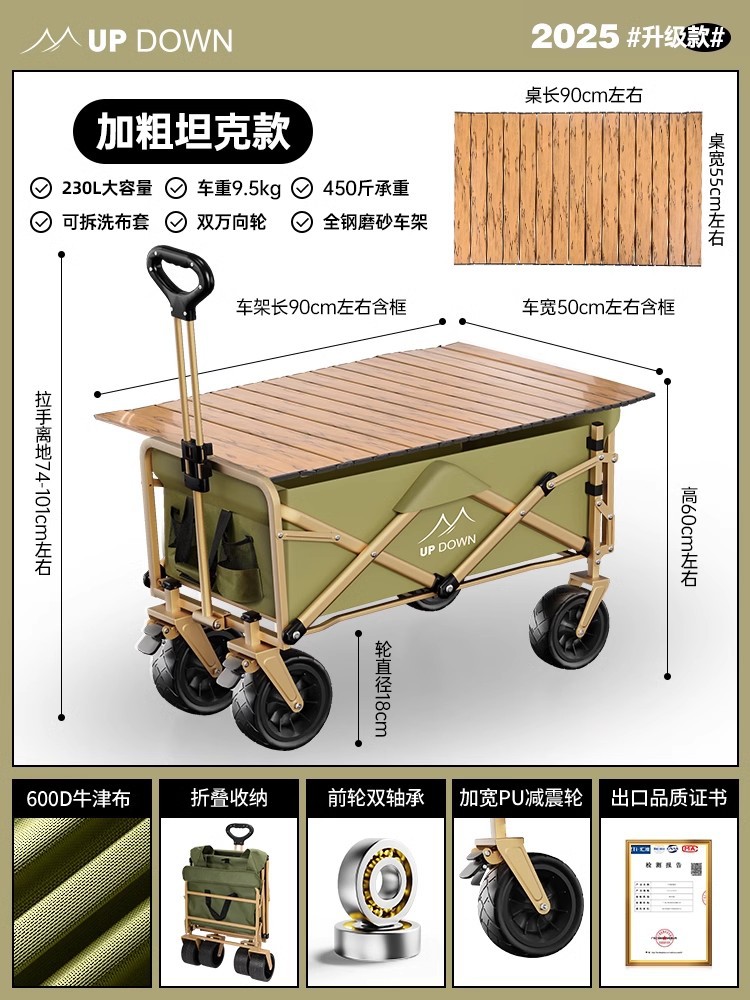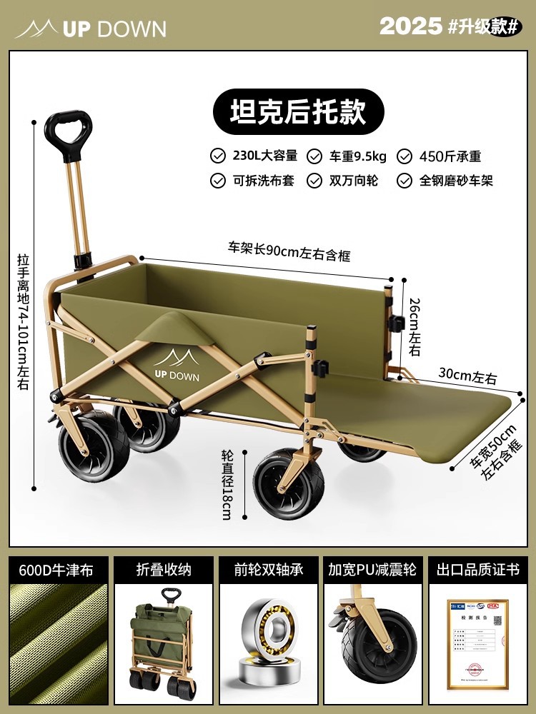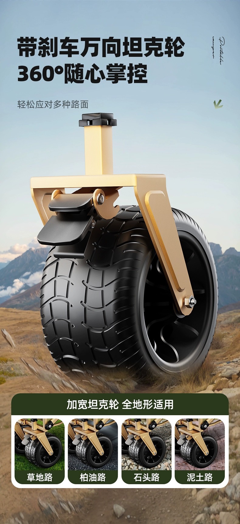 • [탱크 리어 지지대] 7cm 더블 브레이크 대형 타이어 + 확대된 올스틸 프레임 + 앞바퀴 이중 베어링 + 대용량 + 휴대용 수납..