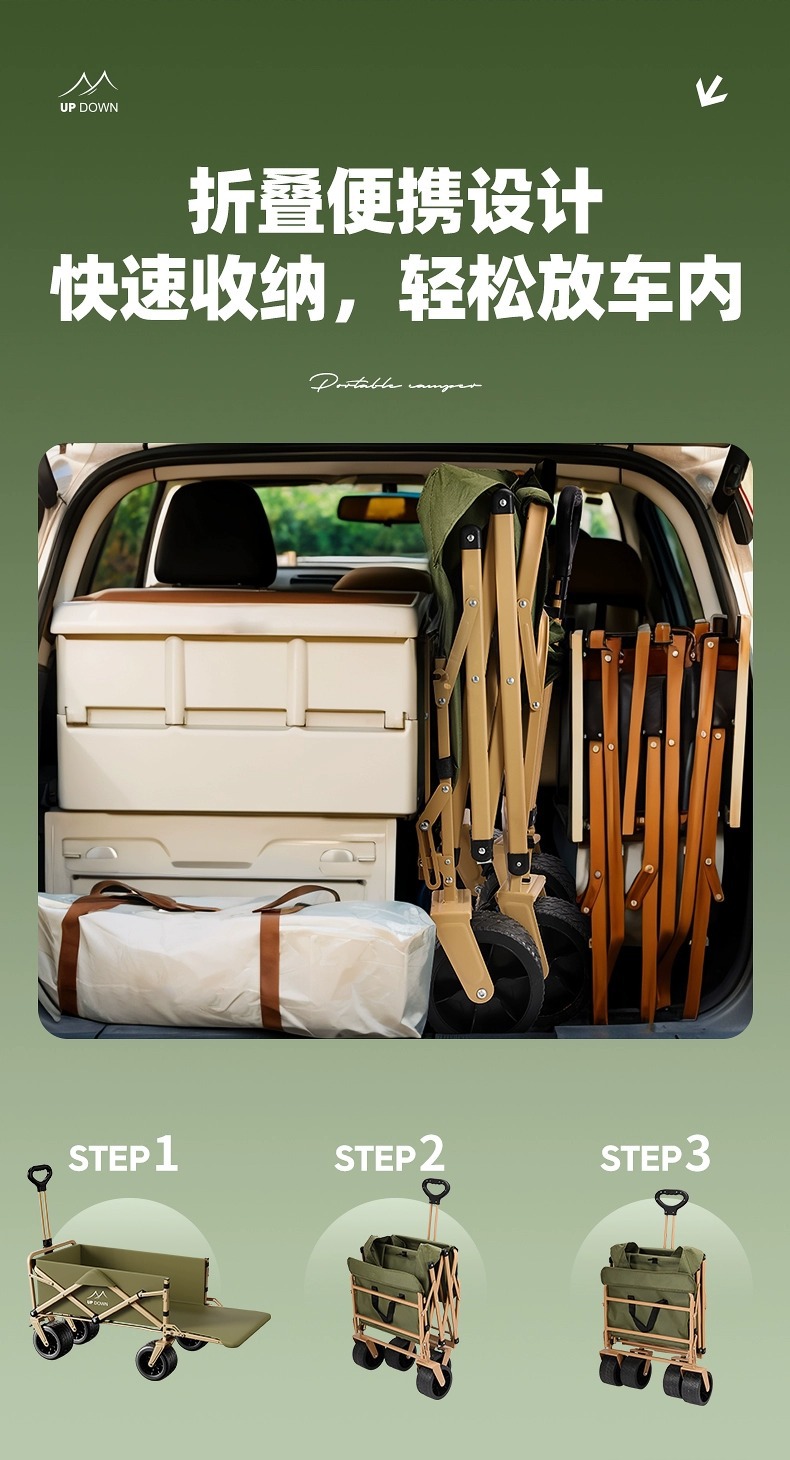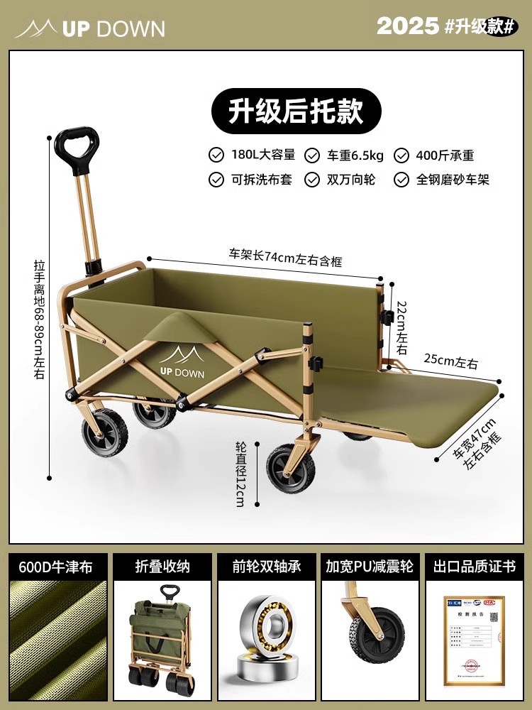 캠핑 카트 야외 접이식 캠핑 카트 캠핑 트레일러 피크닉 마구간 여행 카트 어린이스토어 가기