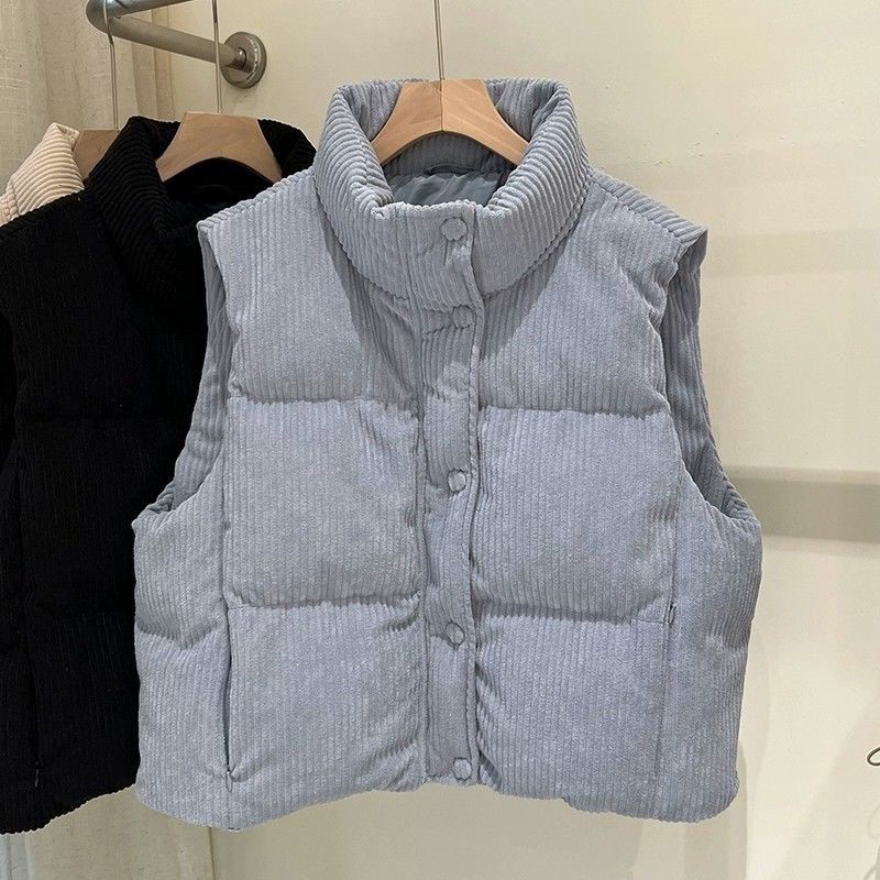 여성용 코듀로이 코튼 조끼, 짧은 스타일, 2025 봄 가을 신상 한국 버전, 스탠드 칼라, 루즈하고 패셔너블한 루즈 조끼스토어 가기