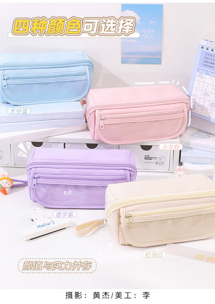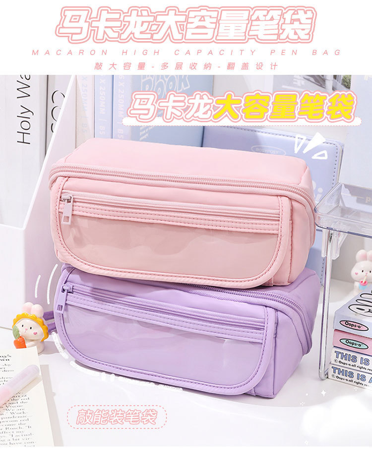 간단한 연필 케이스 대용량 문구 상자 중학교 학생 마카롱 저장 상자 저장 가방 작은 가방 제공