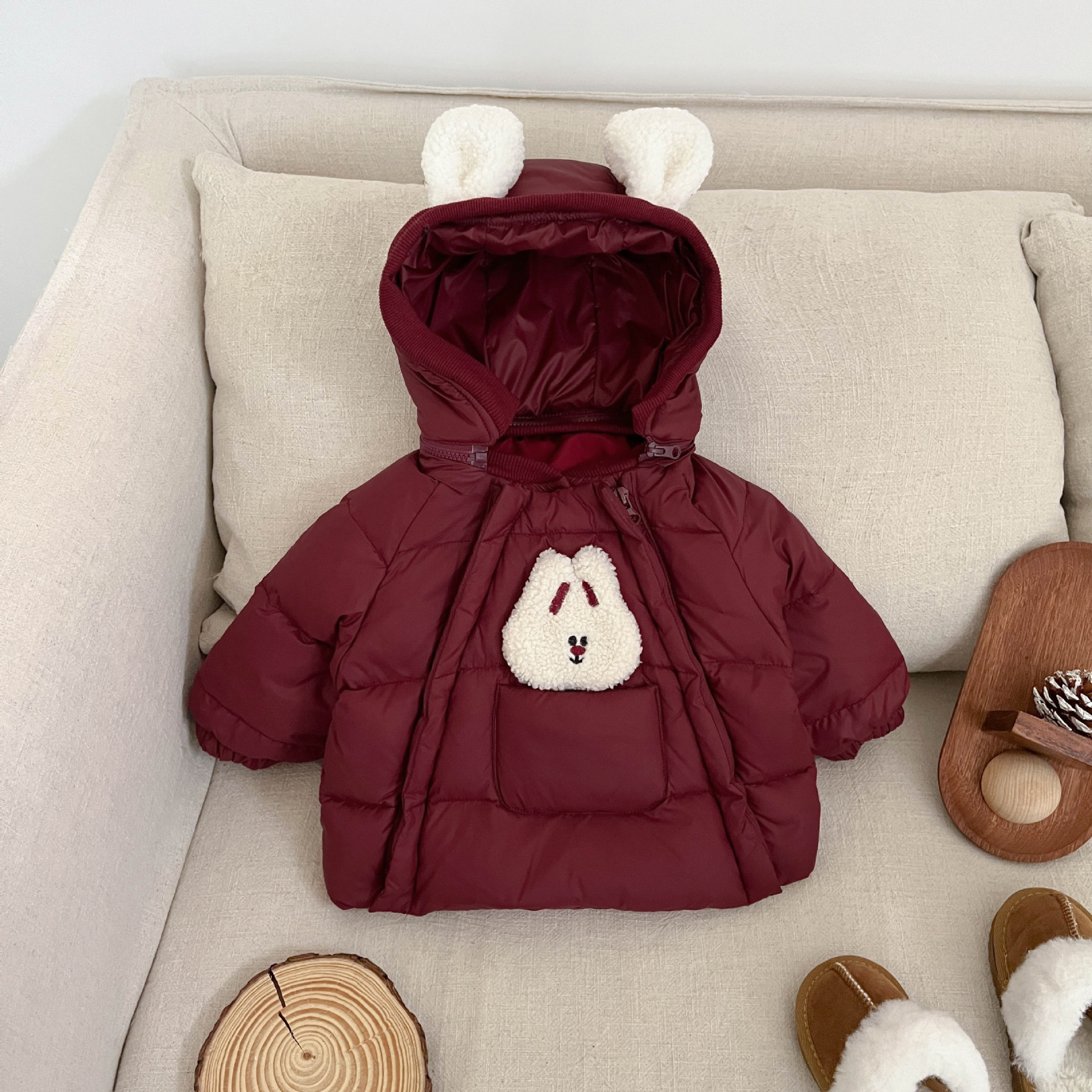 소녀의 새해 전야 원피스 겨울 붉은 축제 다운 재킷 서양식 어린 소녀 두꺼운 따뜻한 흰색 오리 다운 재킷