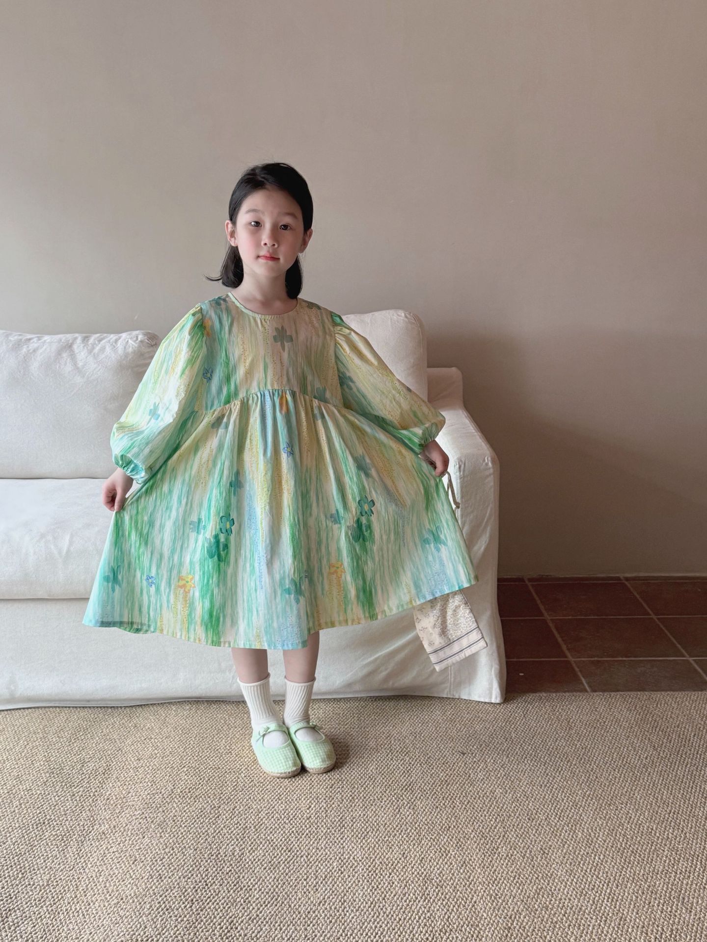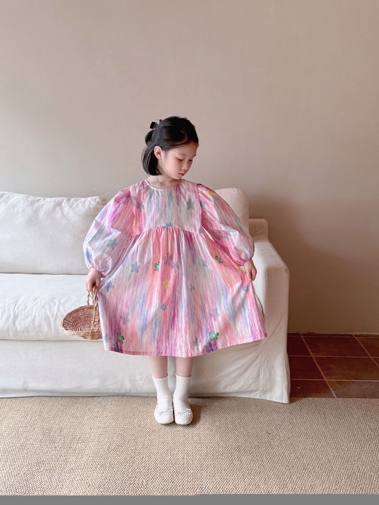 어린이 의류 소녀 원피스 2025 봄 새로운 스타일 둥근 목 긴 소매 공주 원피스 아기 원피스 Q265D스토어 가기