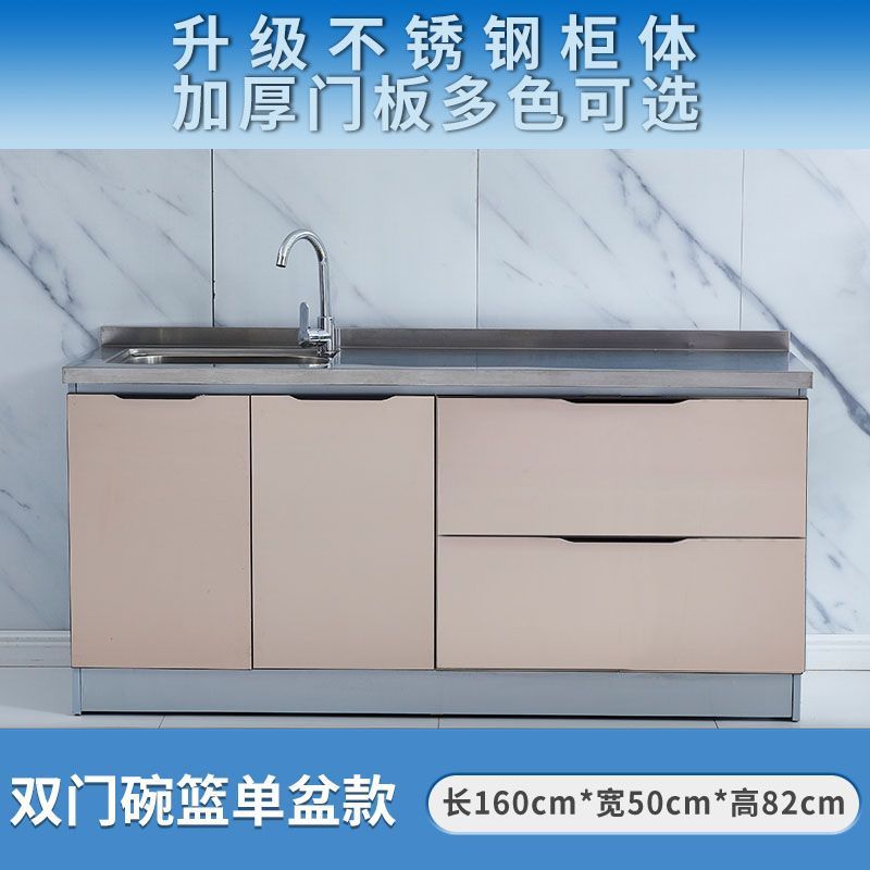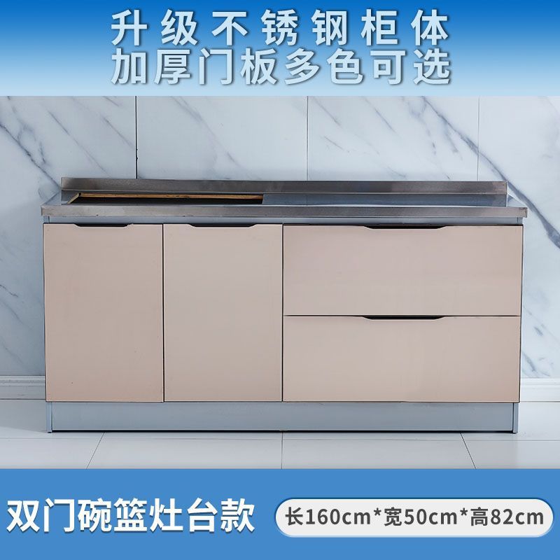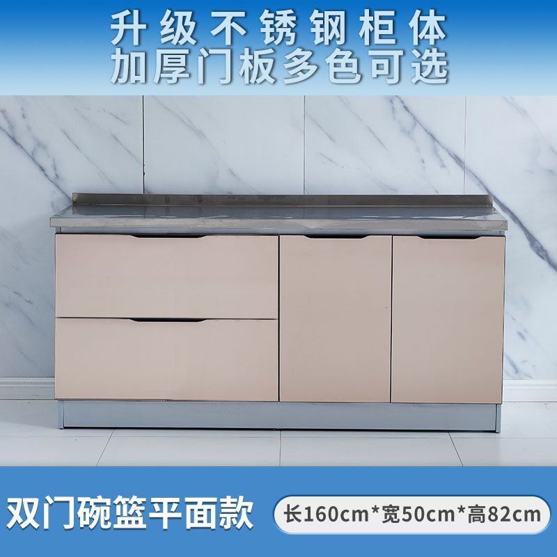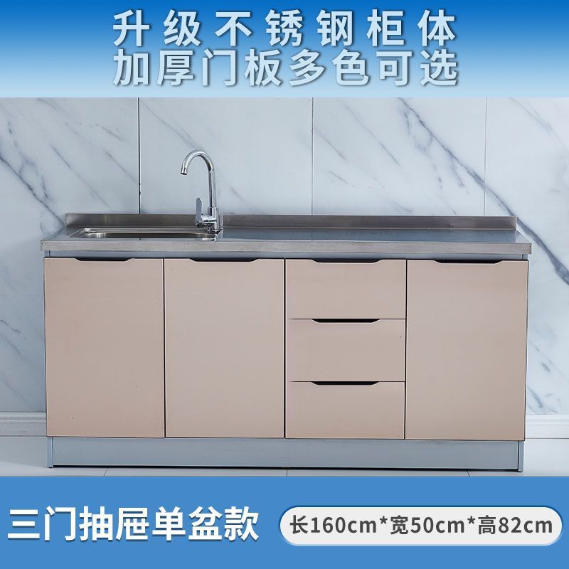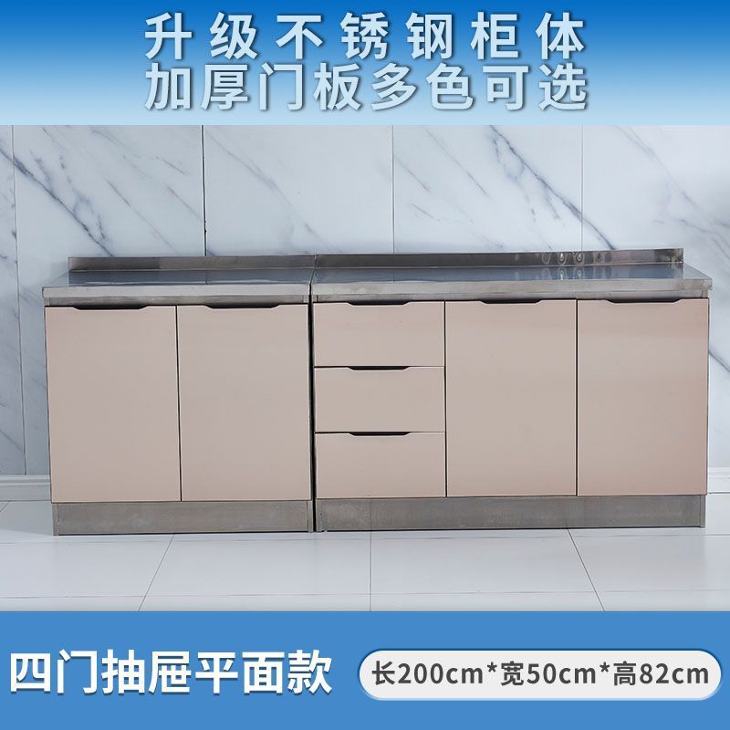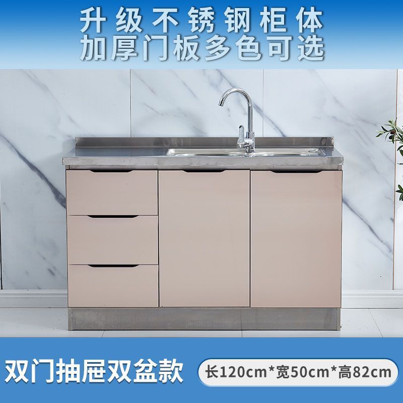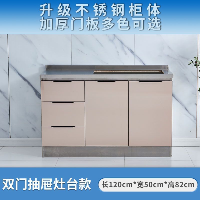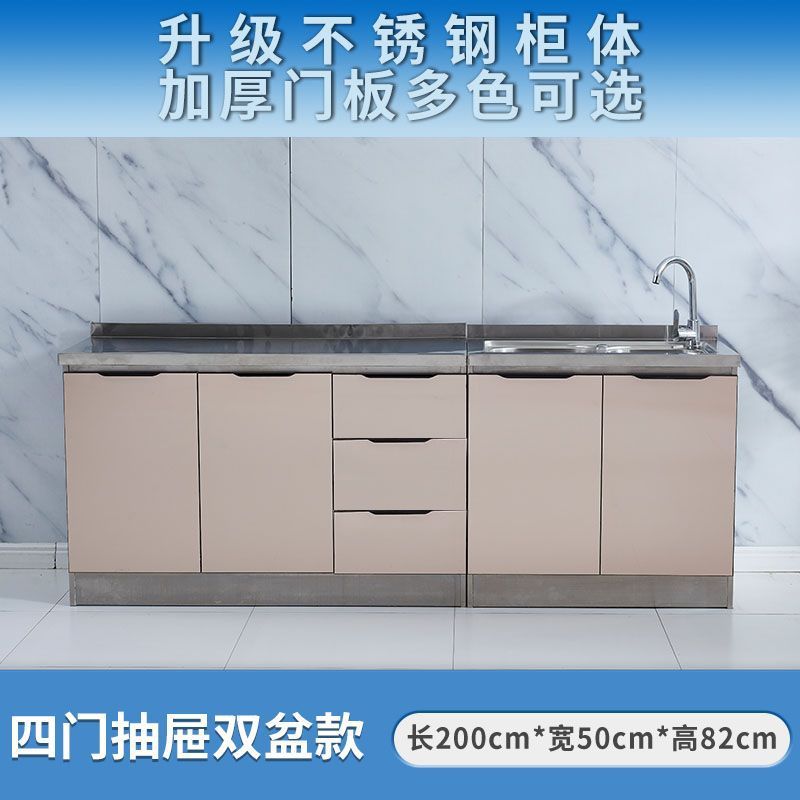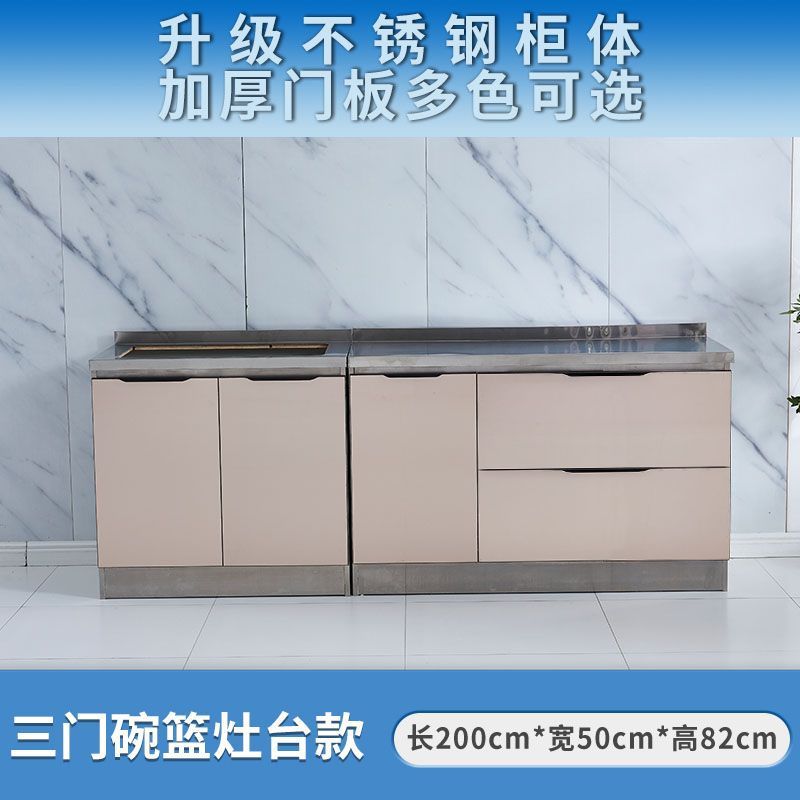스테인레스 스틸 캐비닛 가정용 가스 스토브 카운터 캐비닛 주방 캐비닛 통합 간단한 캐비닛 농촌 주방 싱크 캐비닛 임대 주택스토어 가기