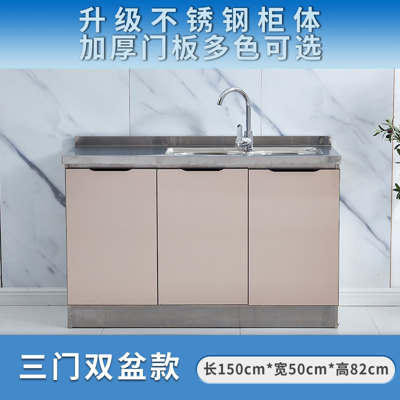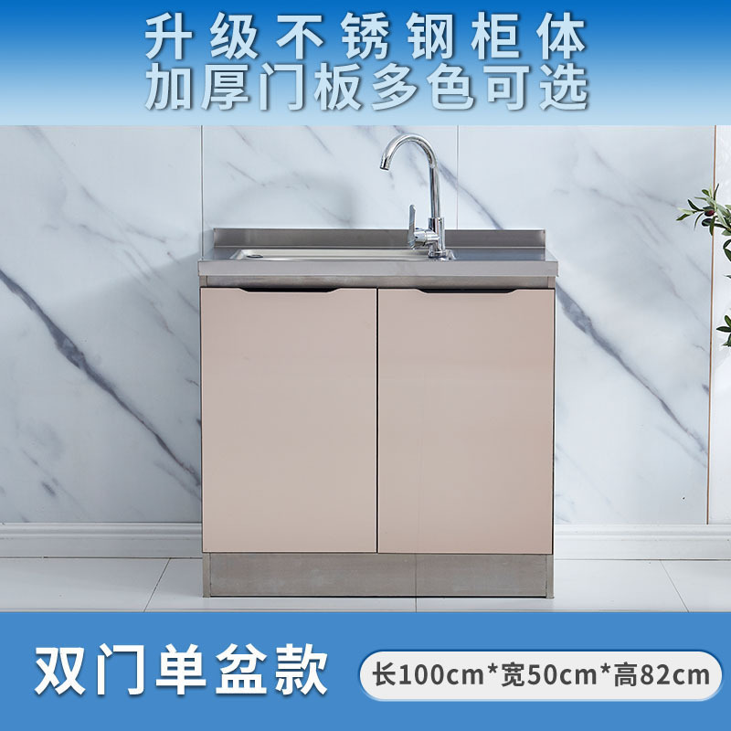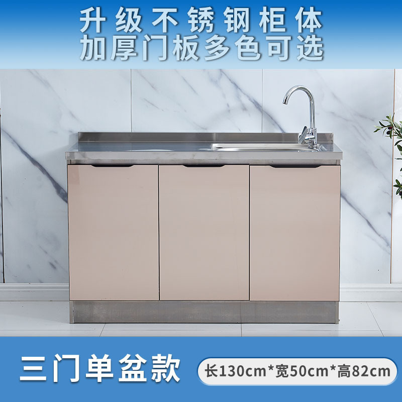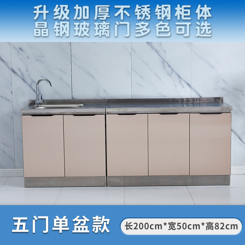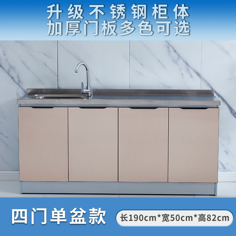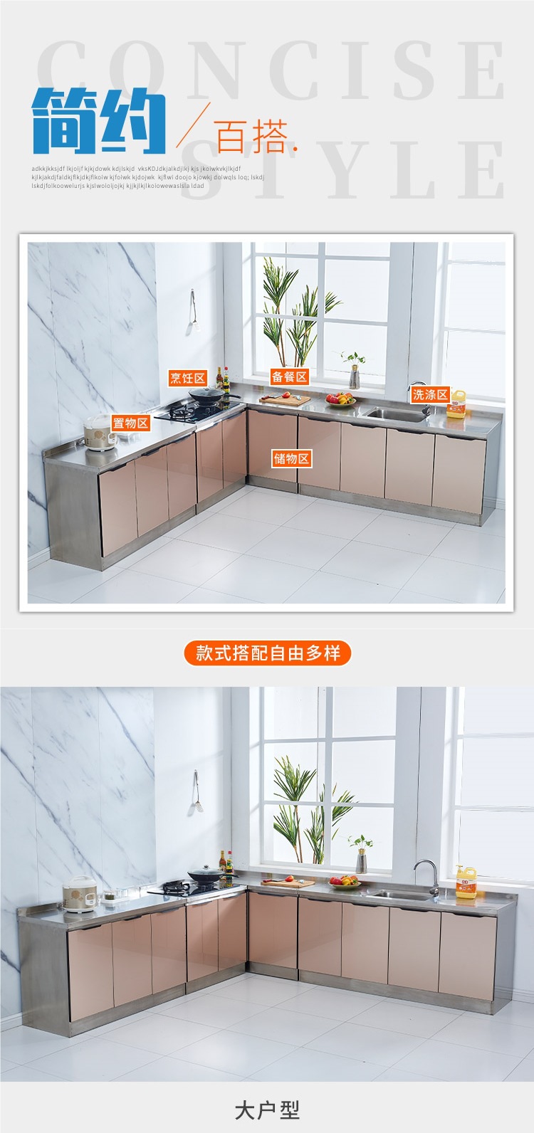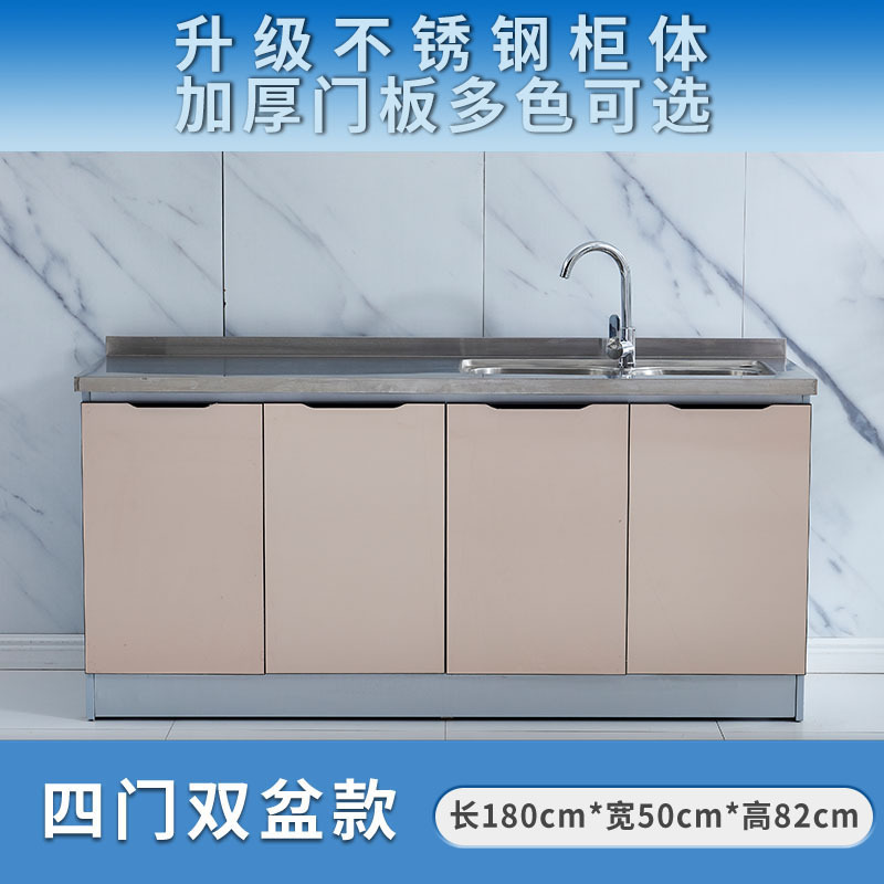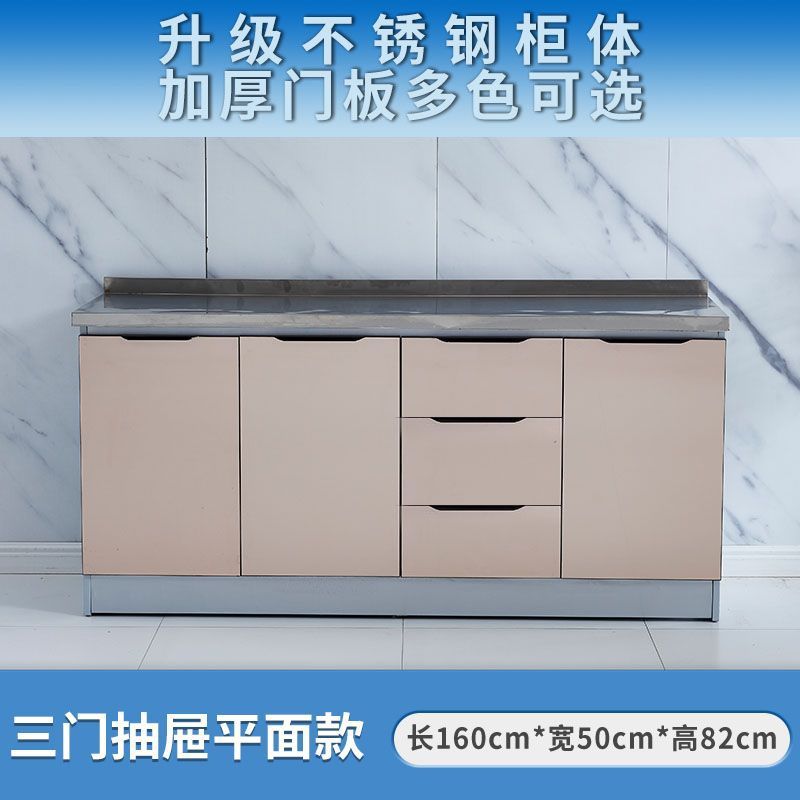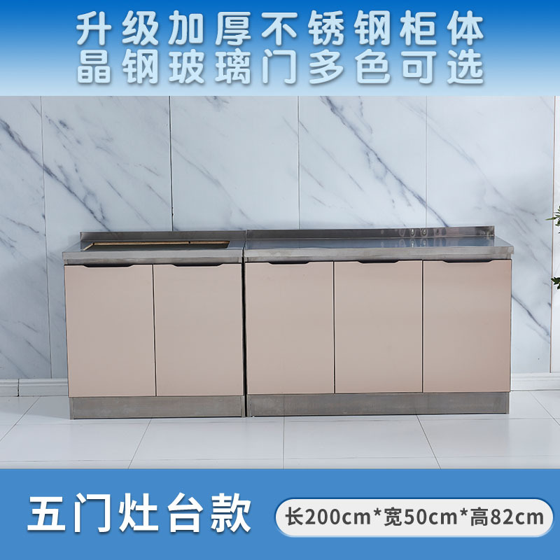 스테인레스 스틸 캐비닛 가정용 가스 스토브 카운터 캐비닛 주방 캐비닛 통합 간단한 캐비닛 농촌 주방 싱크 캐비닛 임대 주택스토어 가기
