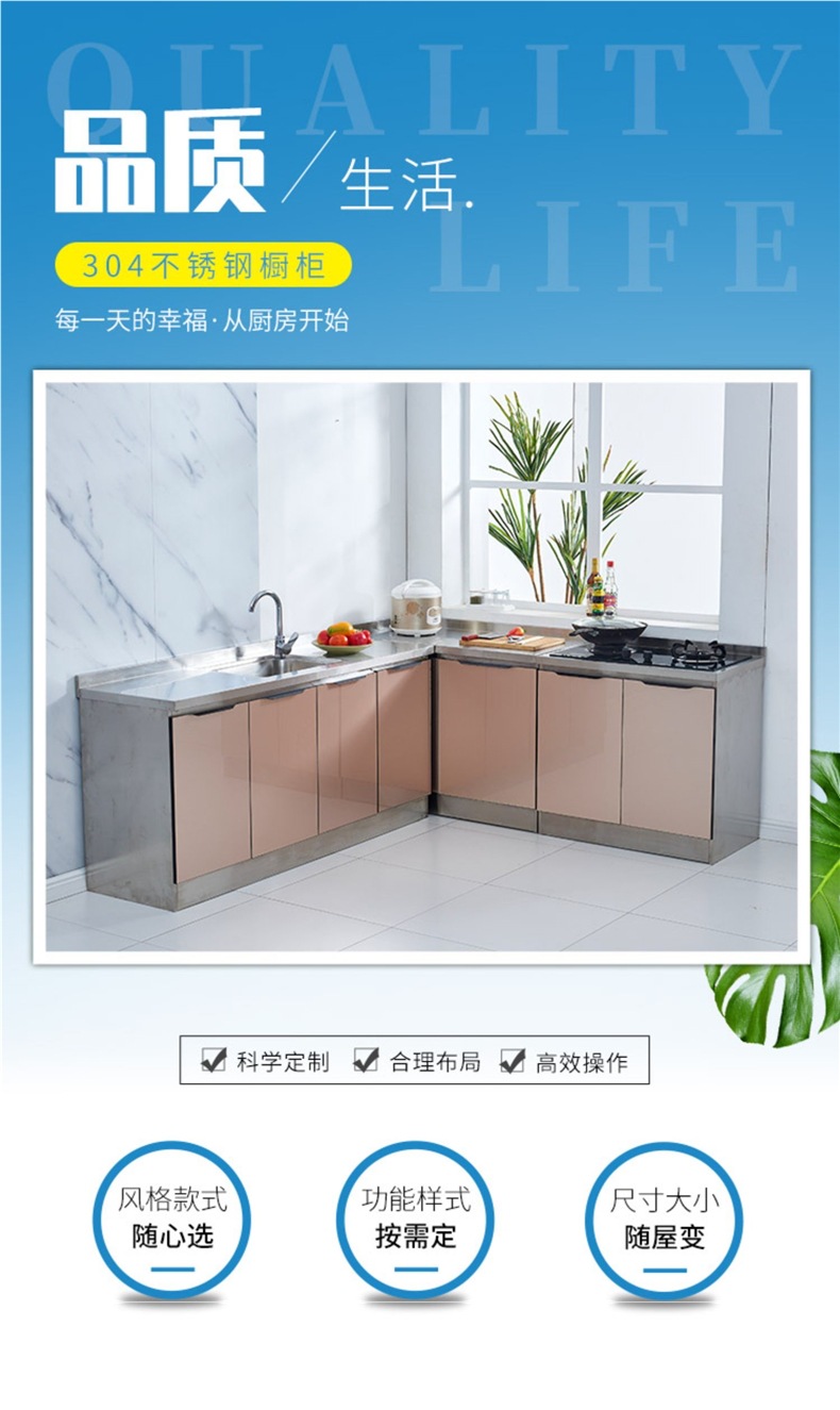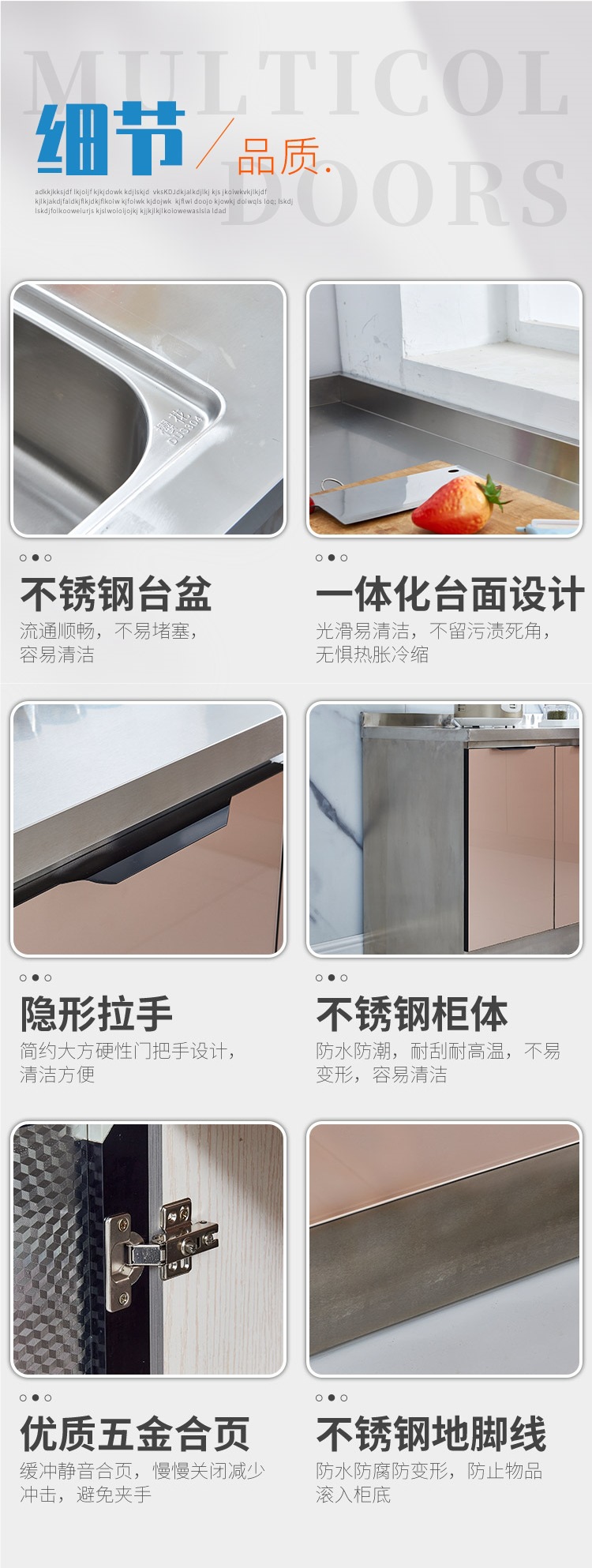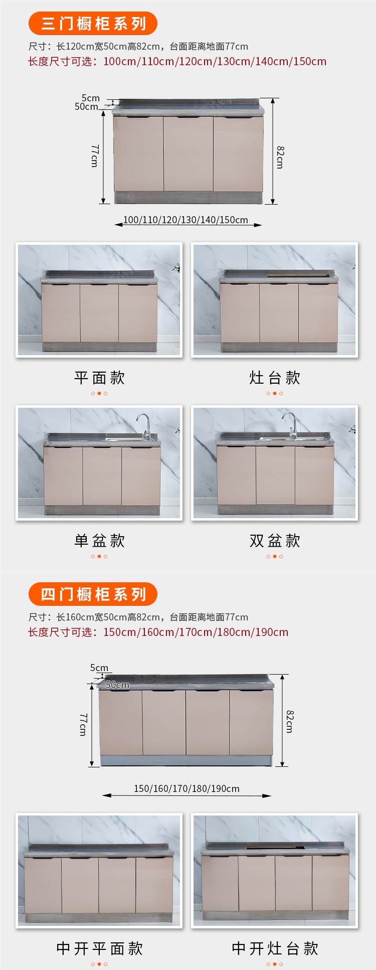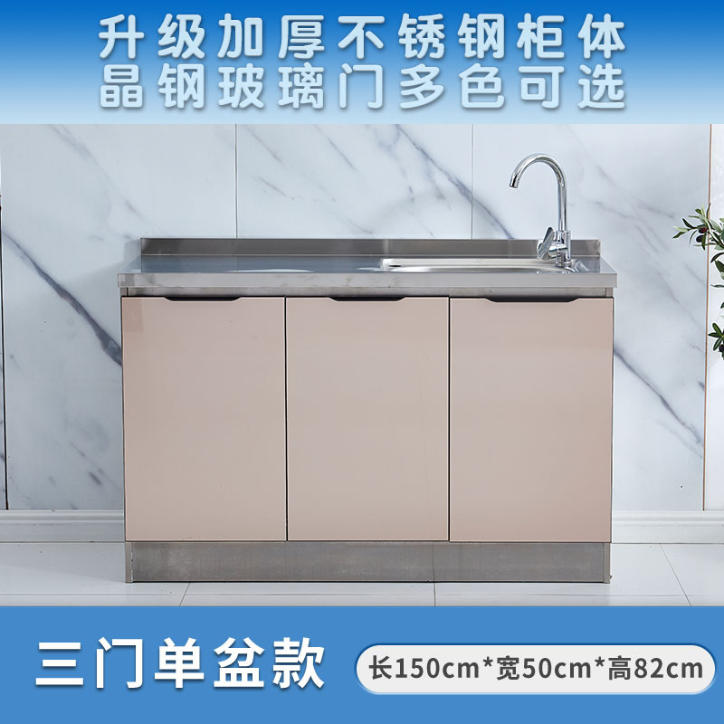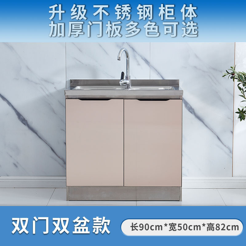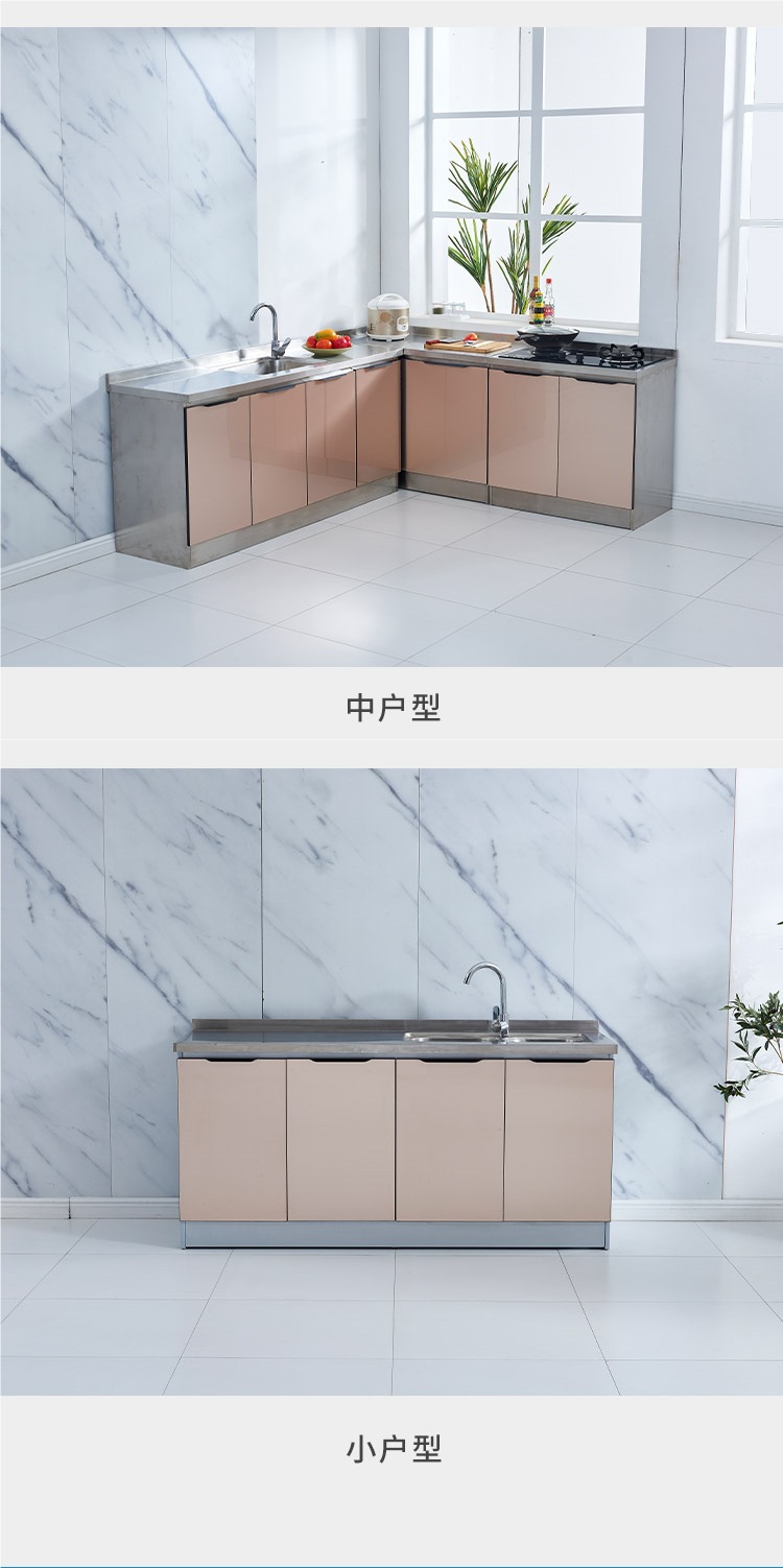 스테인레스 스틸 캐비닛 가정용 가스 스토브 카운터 캐비닛 주방 캐비닛 통합 간단한 캐비닛 농촌 주방 싱크 캐비닛 임대 주택스토어 가기