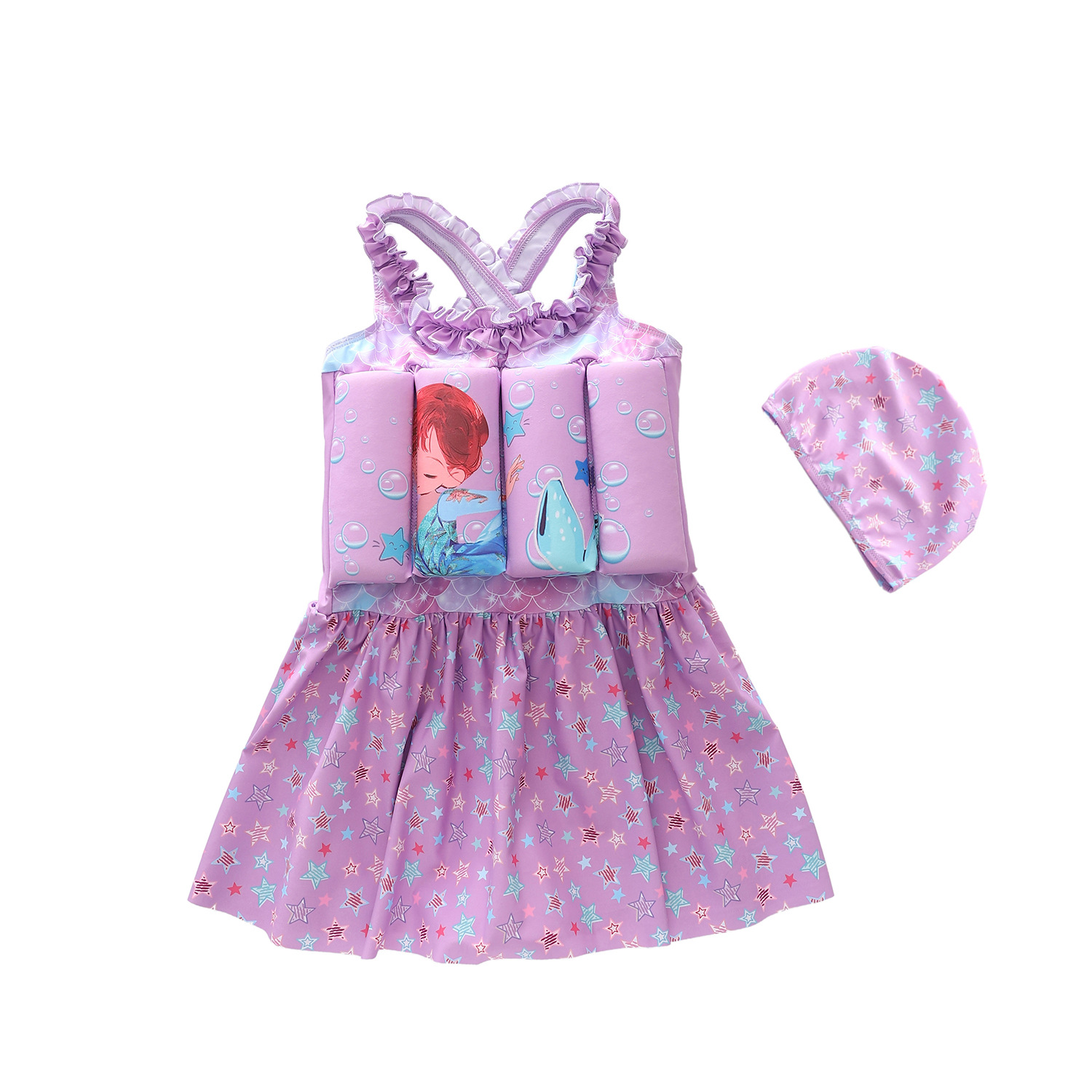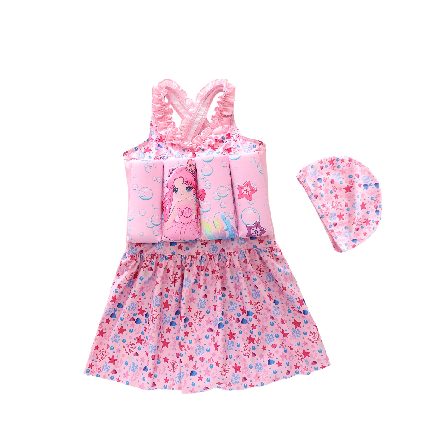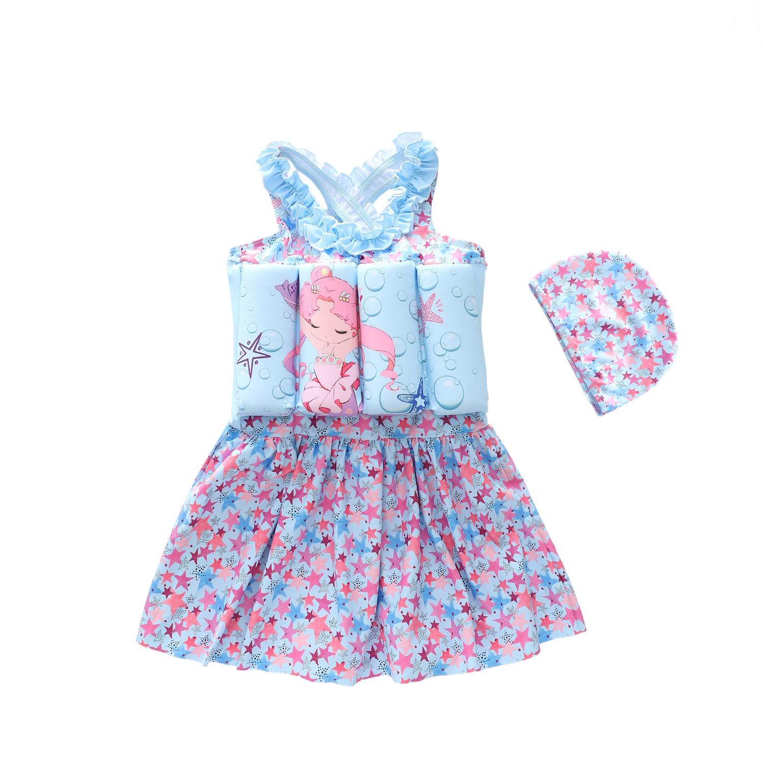 새로운 어린이 수영복 소녀 수영복 소녀 유행 스커트 중소형 어린이 부력 다이빙 만화 원피스 수영복