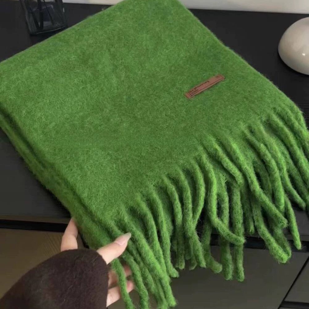 한국 스타일 수입 호주 양모 혼합 Hamada Chaokuang 같은 스타일 그린 스카프 여성의 겨울 따뜻한 분위기 스카프스토어 가기
