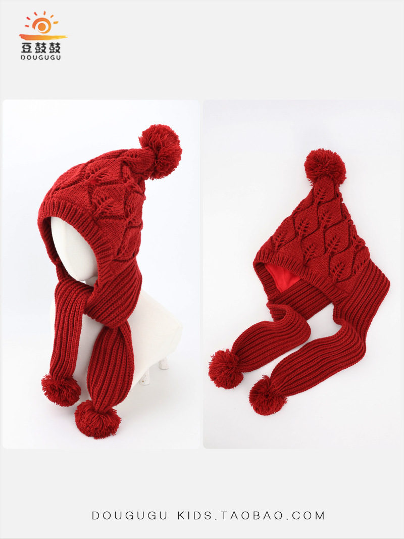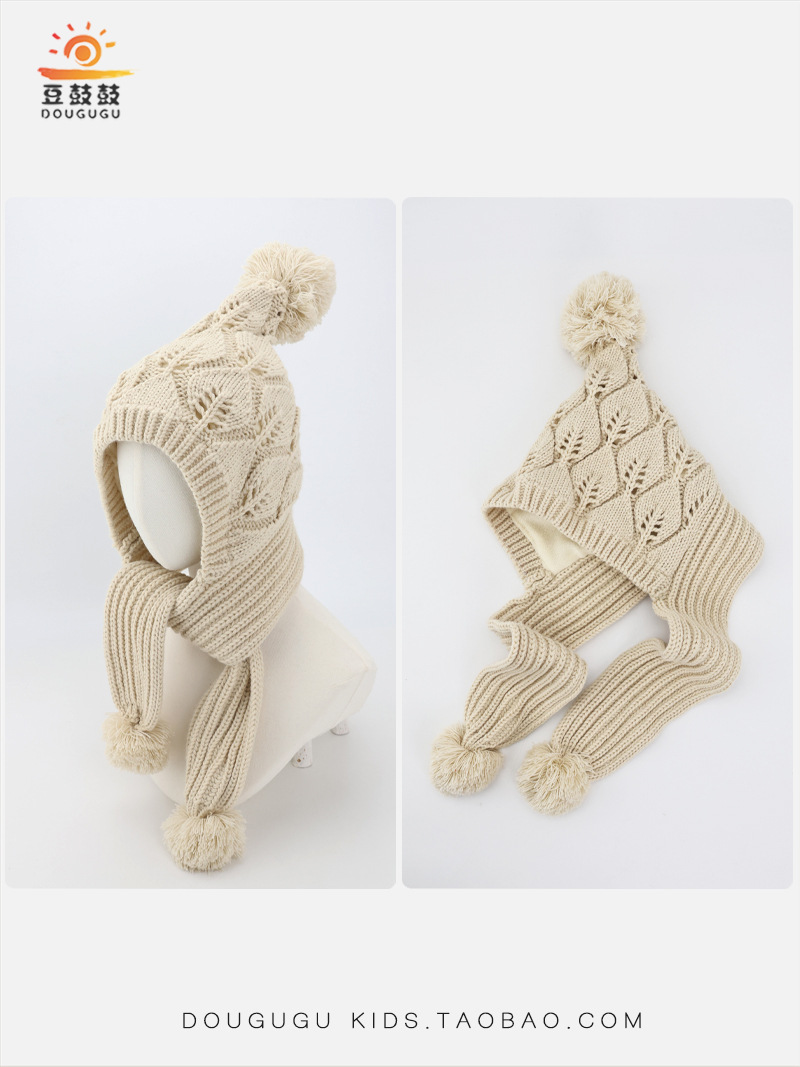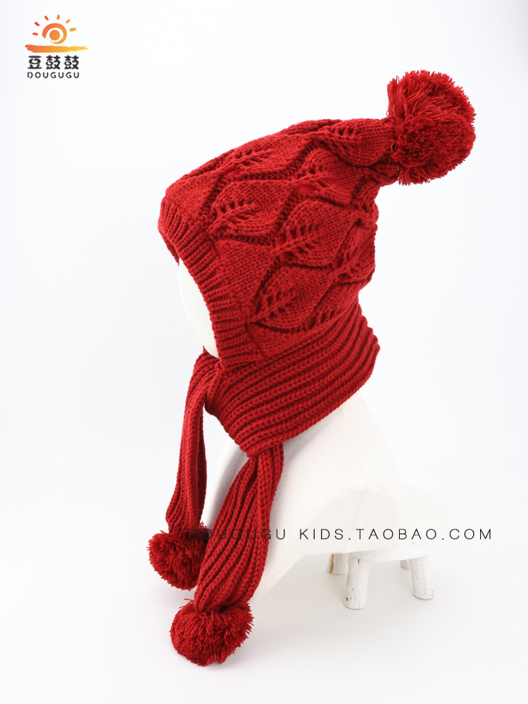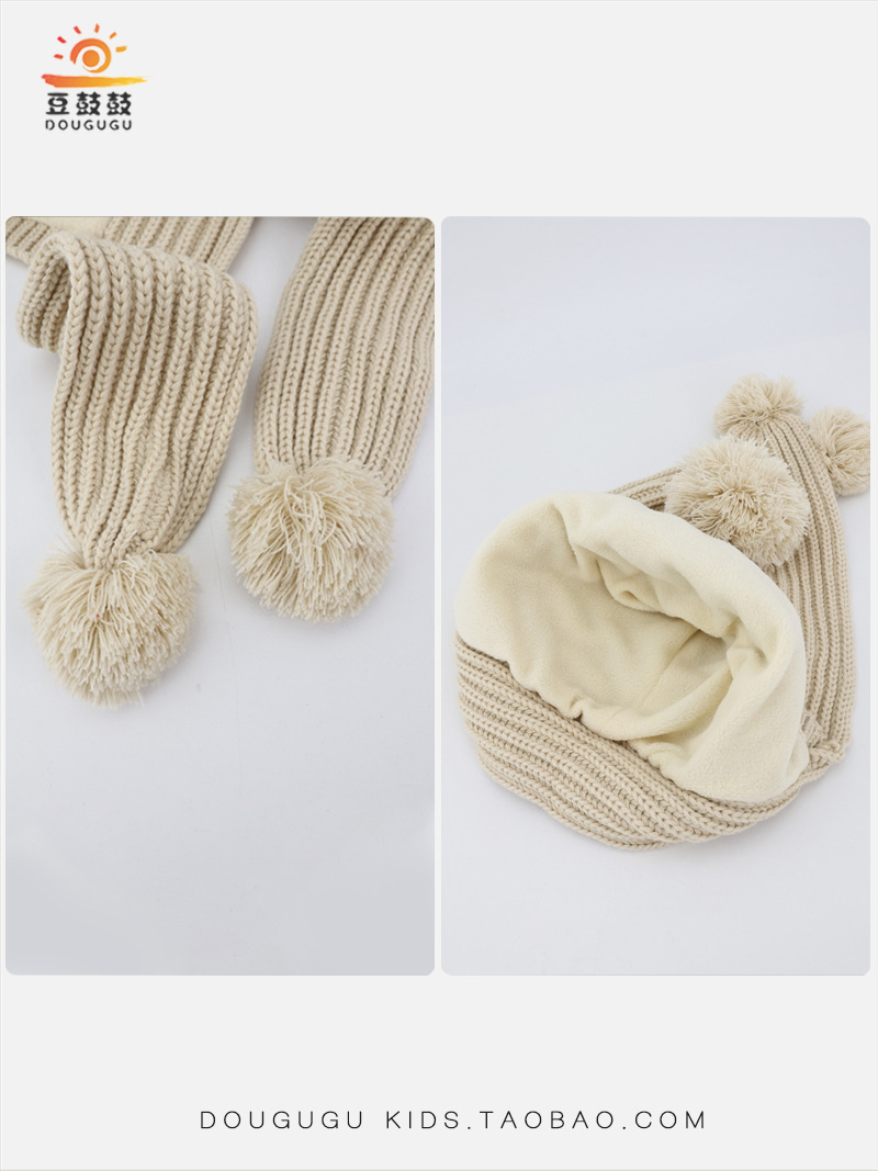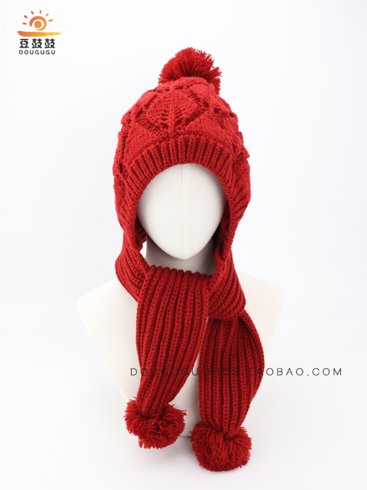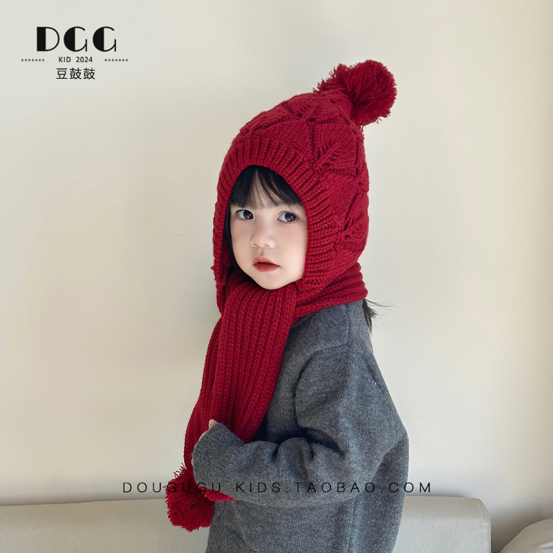 어린이 모자와 스카프 통합 겨울 기모 따뜻한 여아 니트 귀 보호 모자 한국식 중년 어린이 설날 울모자