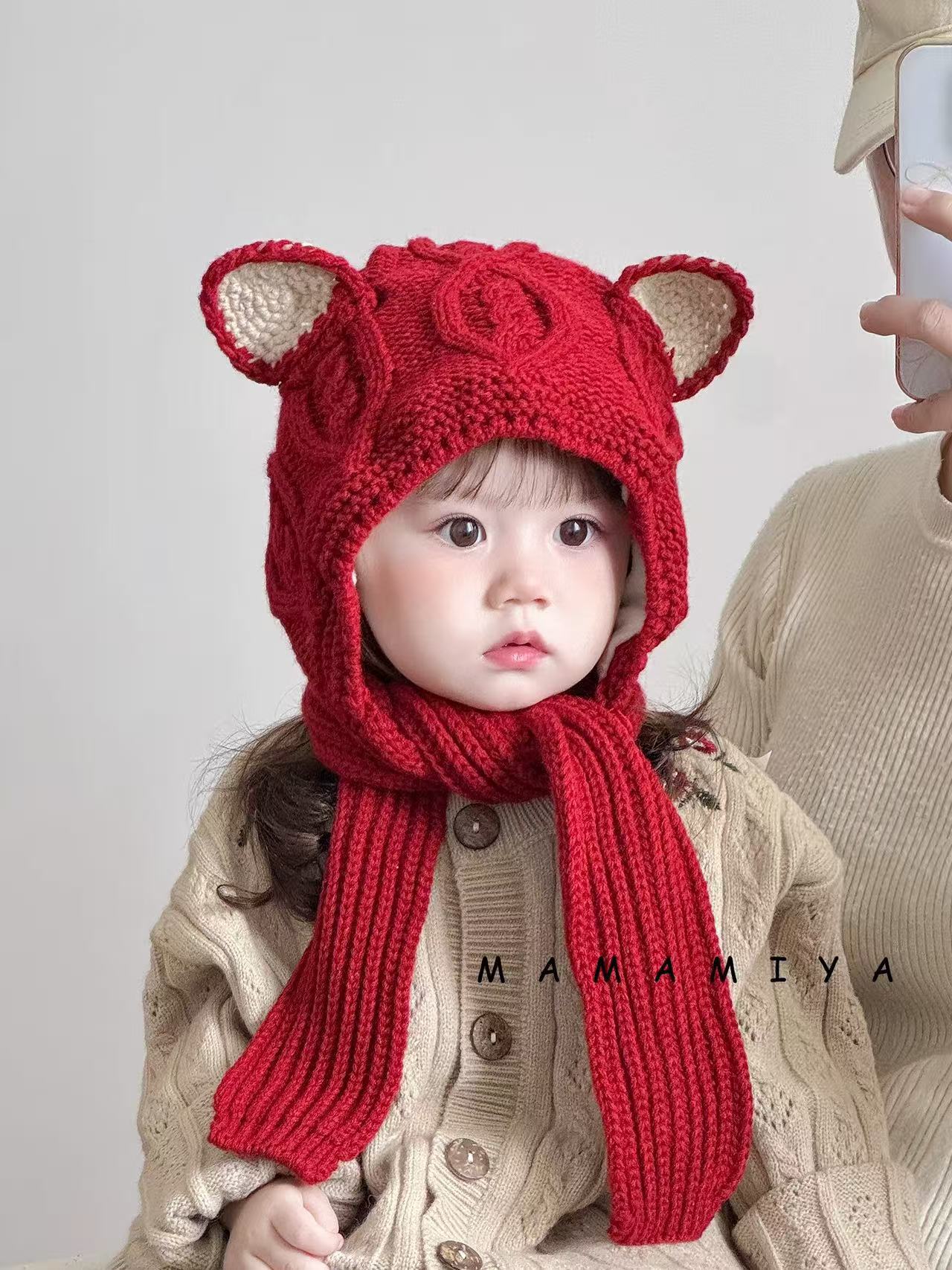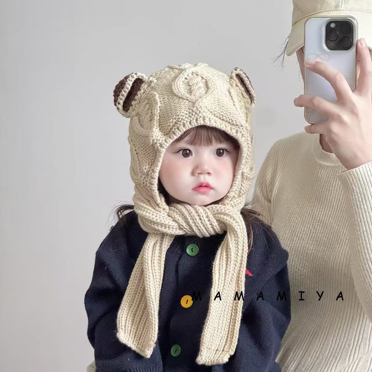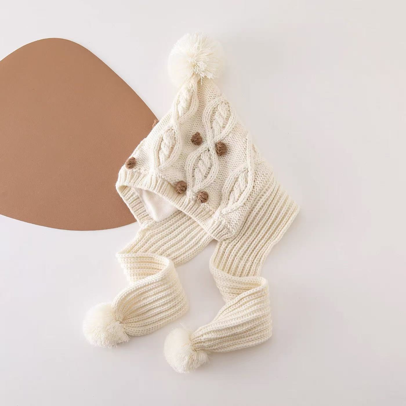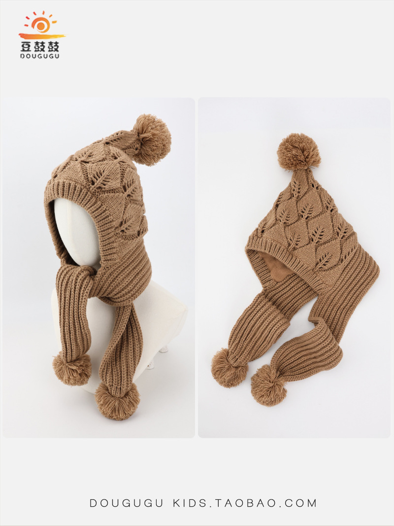 어린이 모자와 스카프 통합 겨울 기모 따뜻한 여아 니트 귀 보호 모자 한국식 중년 어린이 설날 울모자