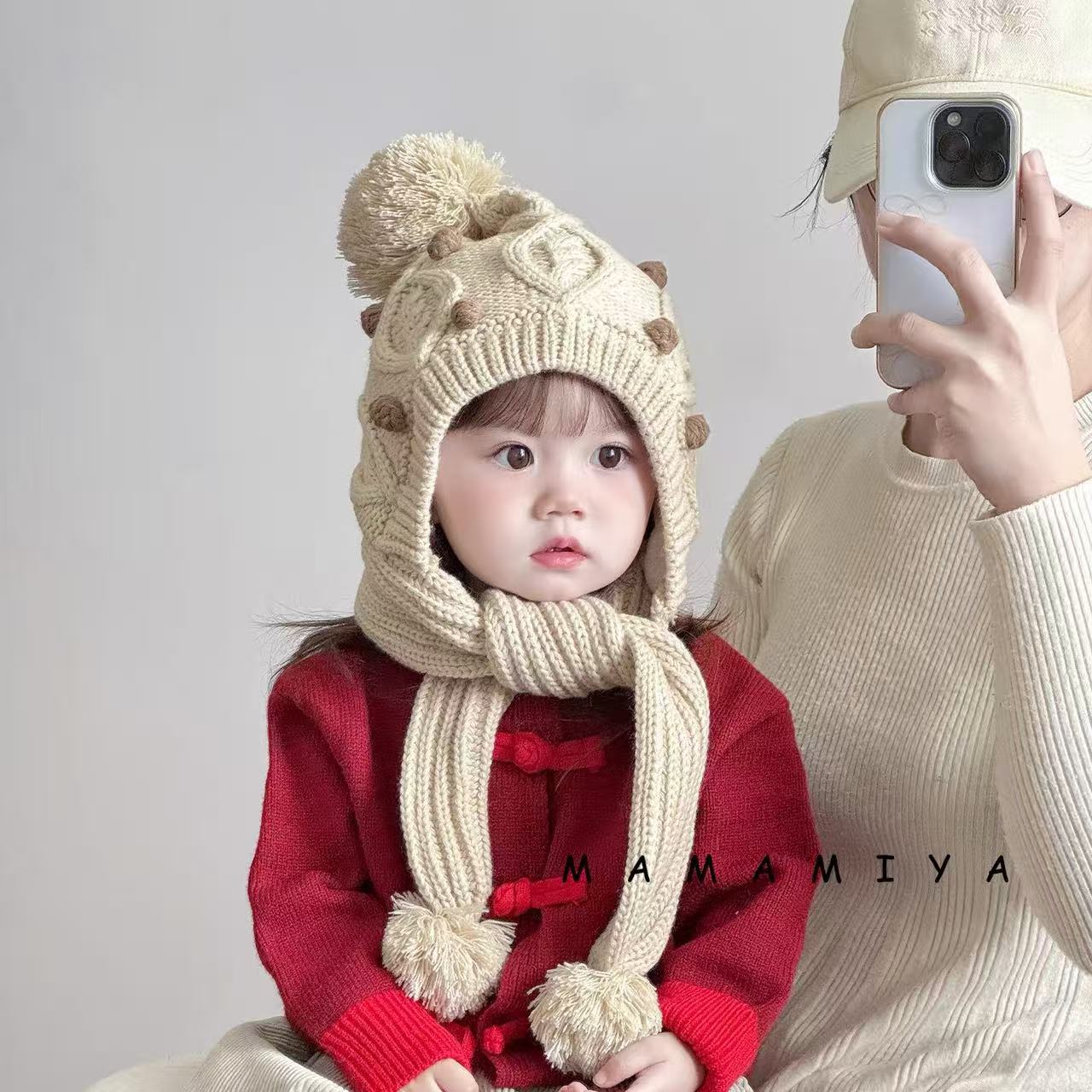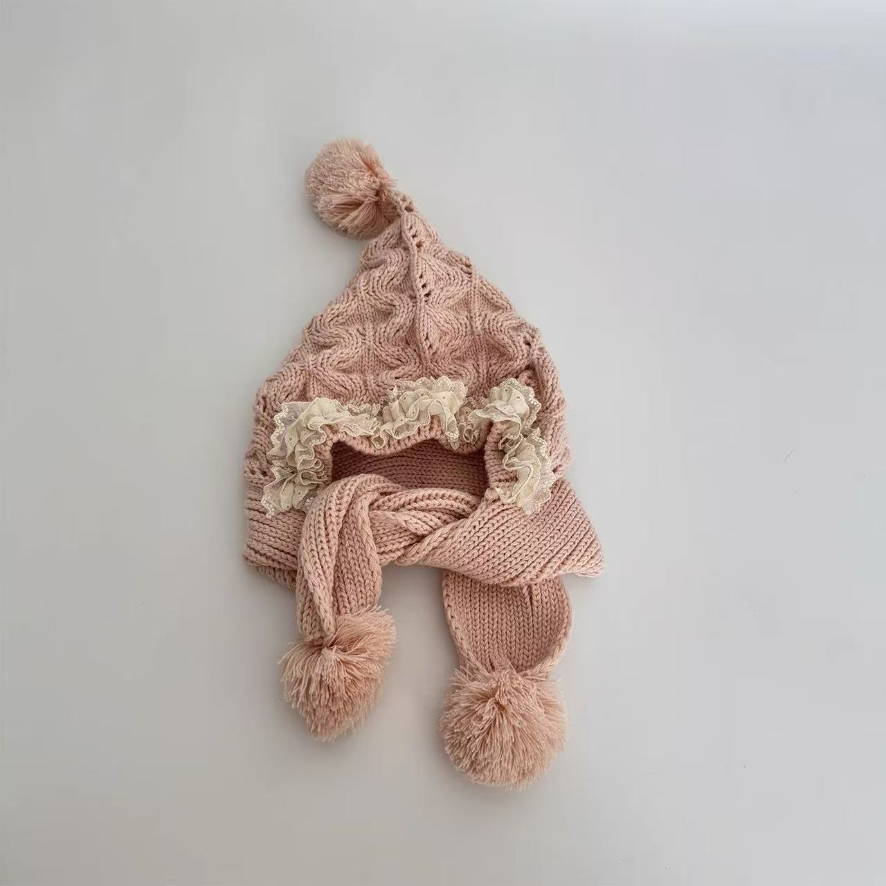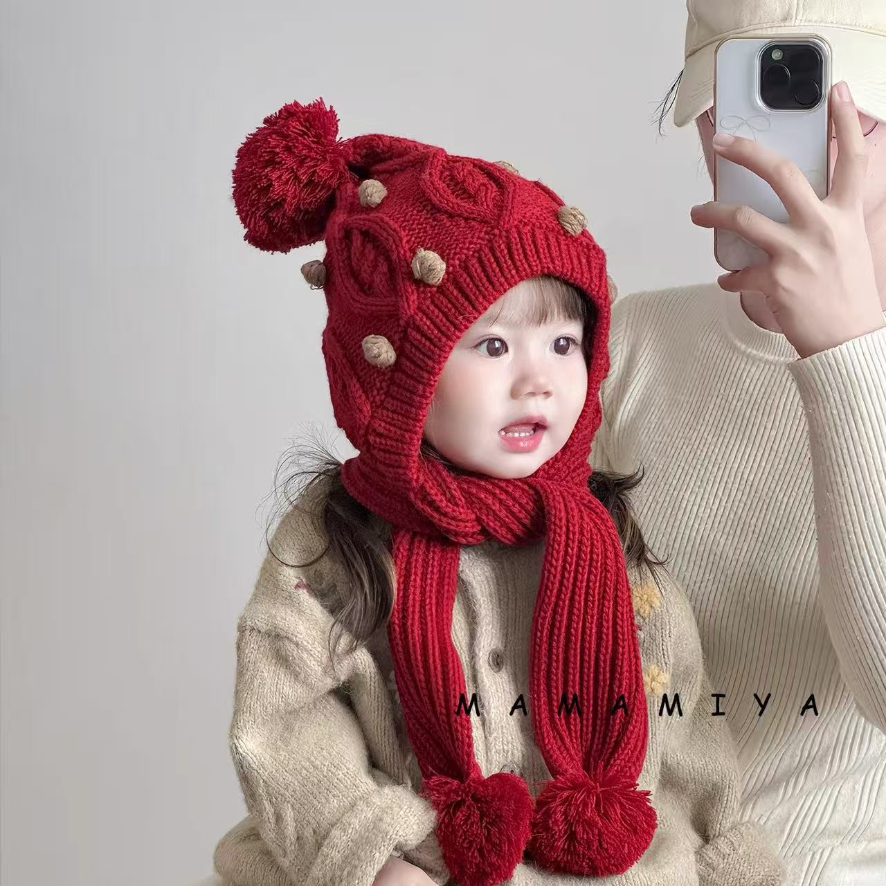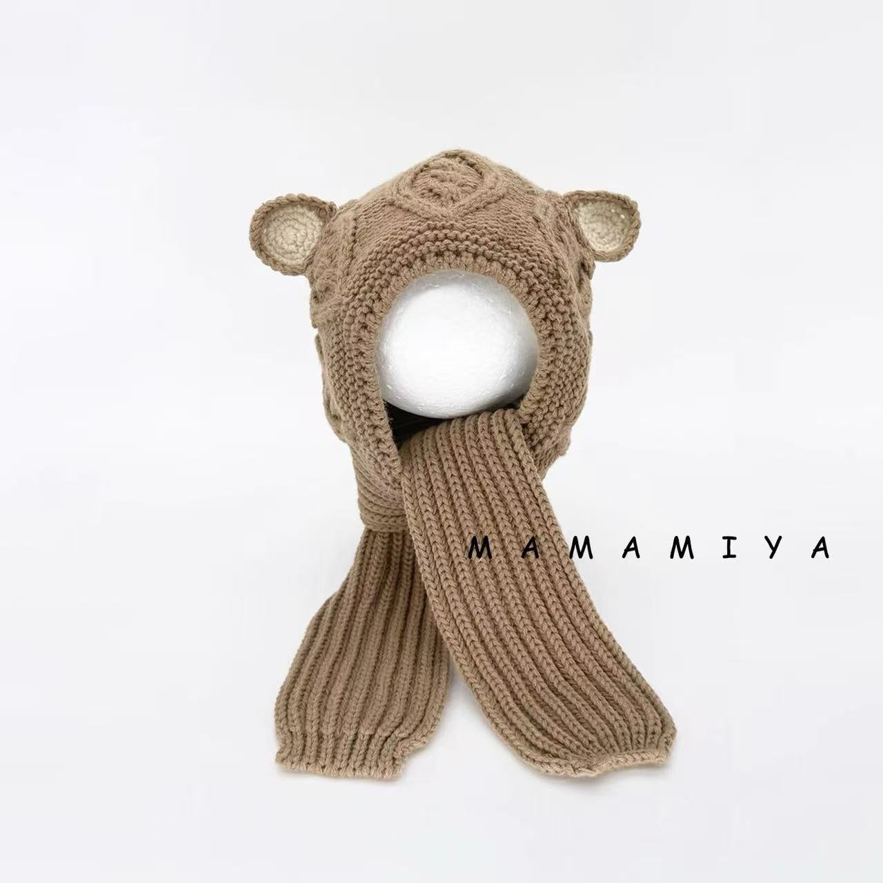 어린이 모자와 스카프 통합 겨울 기모 따뜻한 여아 니트 귀 보호 모자 한국식 중년 어린이 설날 울모자
