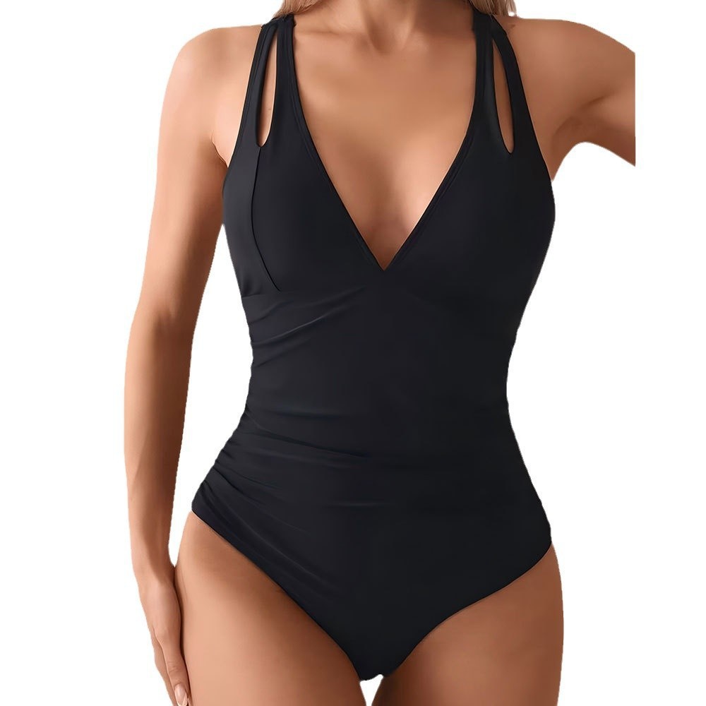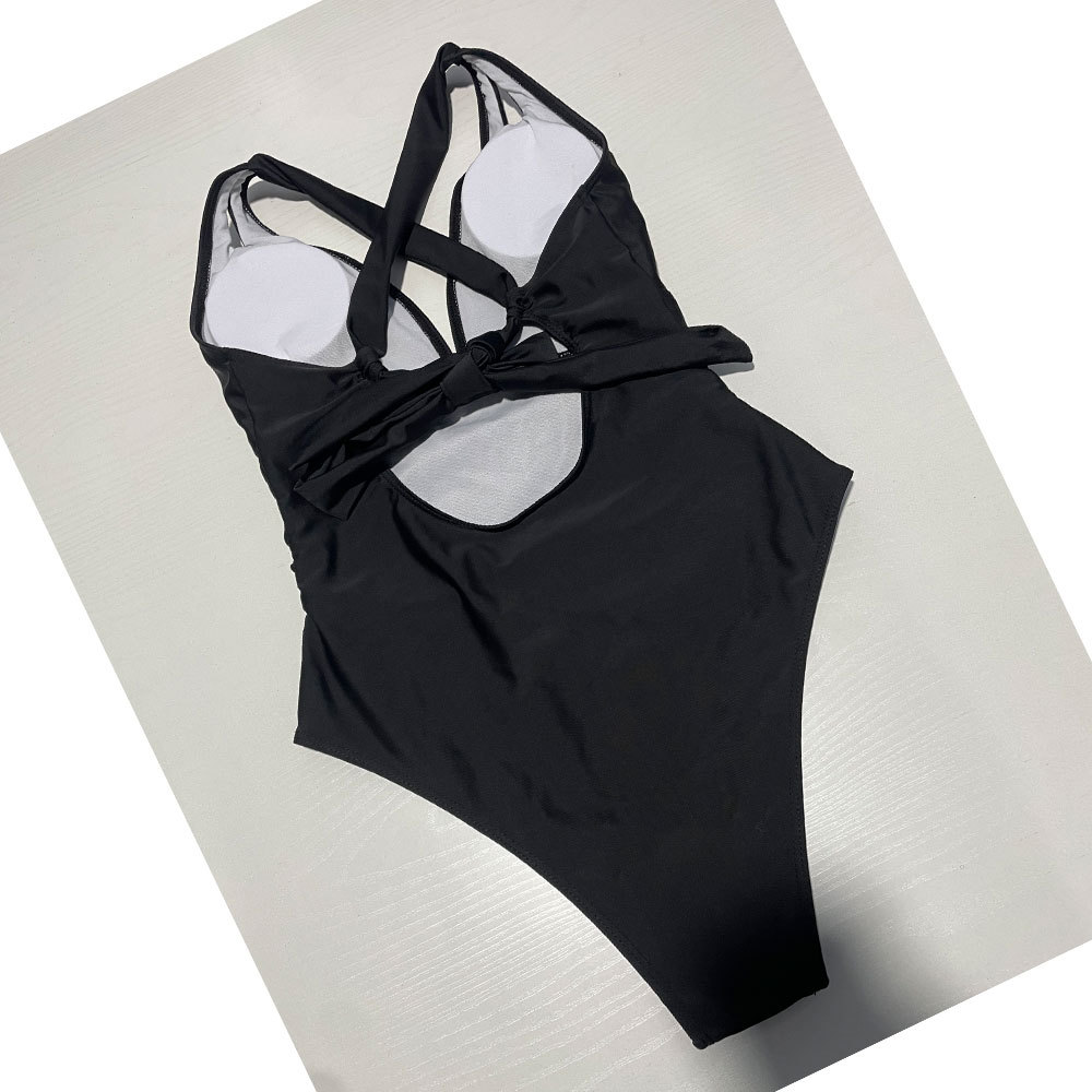 2025 새로운 유럽과 미국의 대외 무역 국경 단색 주름 레이스 업 섹시한 높은 허리 원피스 비키니 수영복 여성