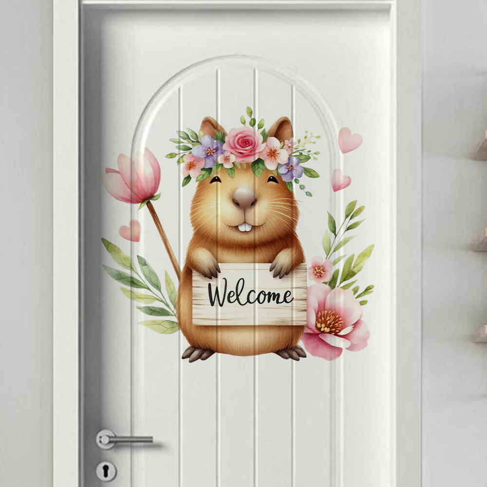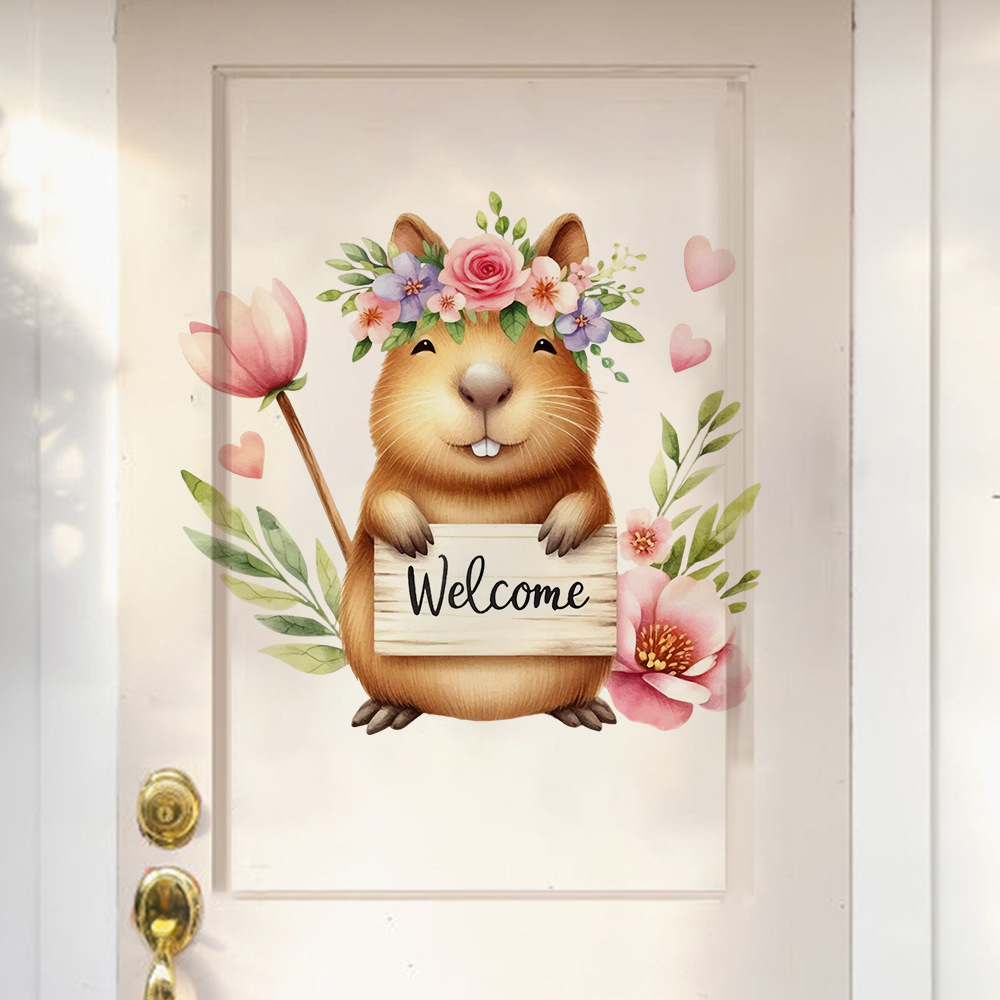 Yiyao DD3379 만화 창조적 인 꽃 카피 바라 영어 문 스티커 침실 문 이동식 장식 셀프 접착 스티커스토어 가기