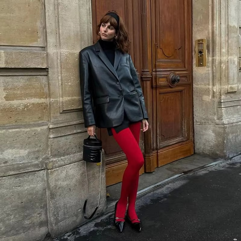 버건디 스타킹 벨벳 빨간 양말 새해 복고풍 붉은 바닥 팬티 스타킹 슬리밍 새해 분위기 팬티 스타킹스토어 가기