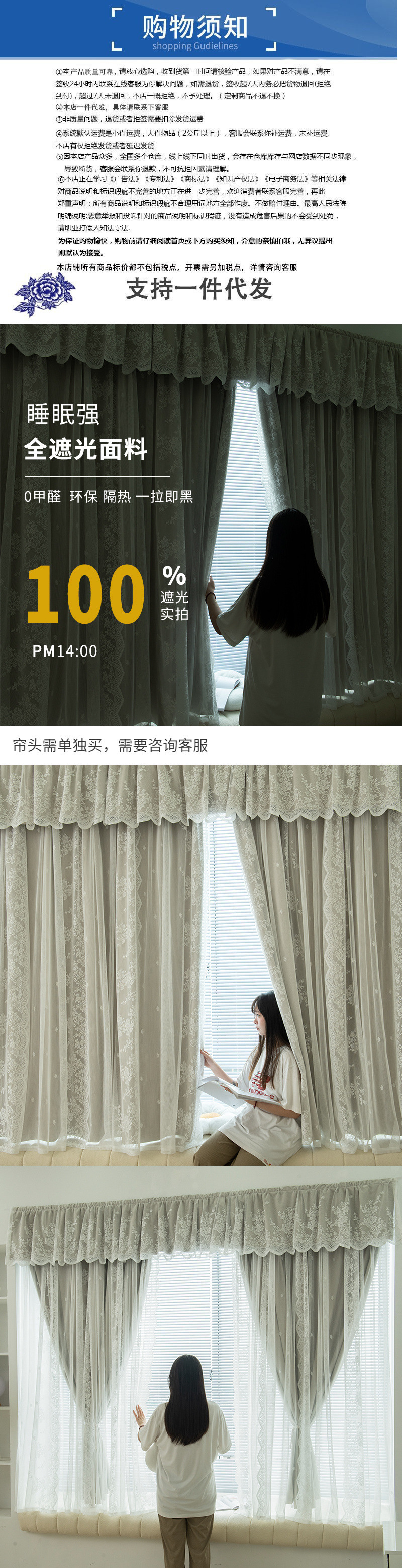 렌탈 룸 및 기숙사를위한 프랑스 커튼 벨크로 두꺼운 접착 무료 베이 창 대피소 커튼스토어 가기