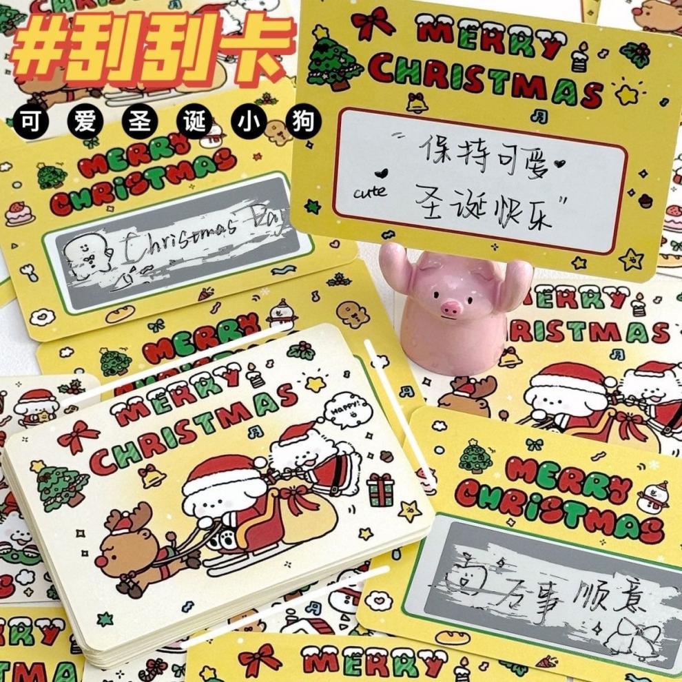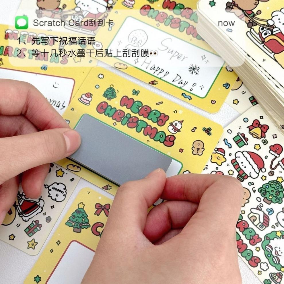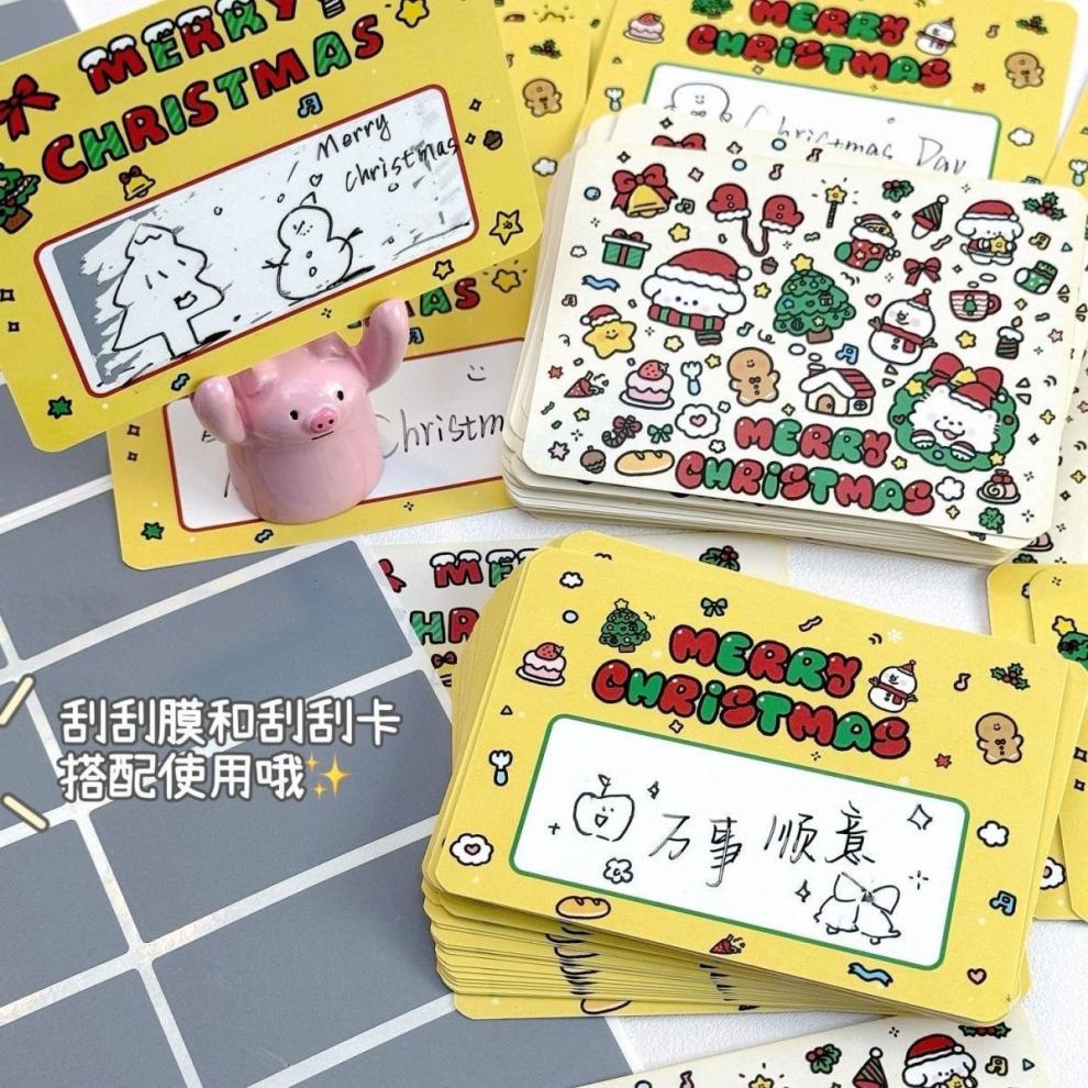 ins圣诞节刮刮卡可爱自制贺卡卡通手写祝福刮刮膜diy奖励卡明信片