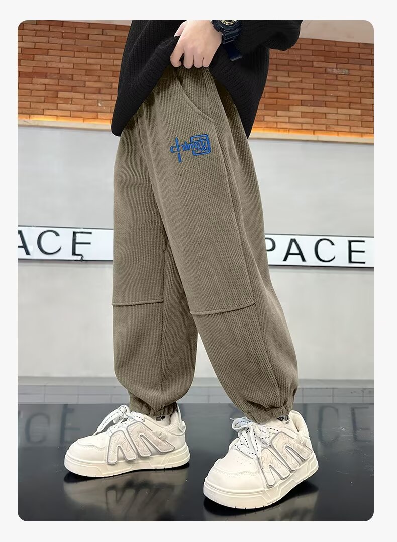 소년 바지 가을과 겨울 2024 새로운 어린이 자수 기모 바지 큰 소년 캐주얼 스포츠 바지 트렌디스토어 가기