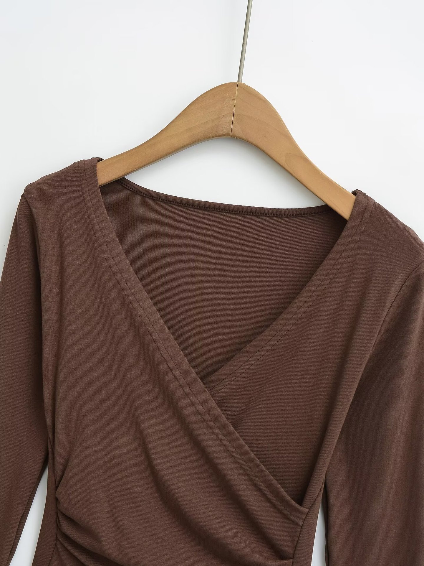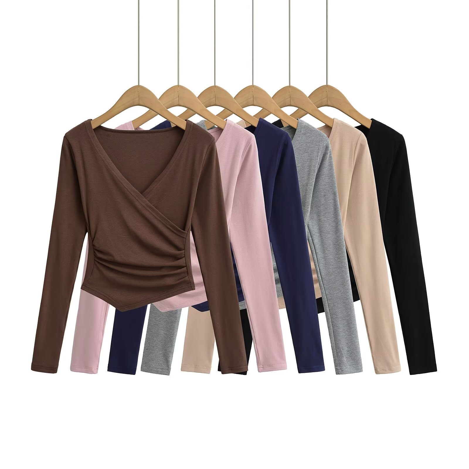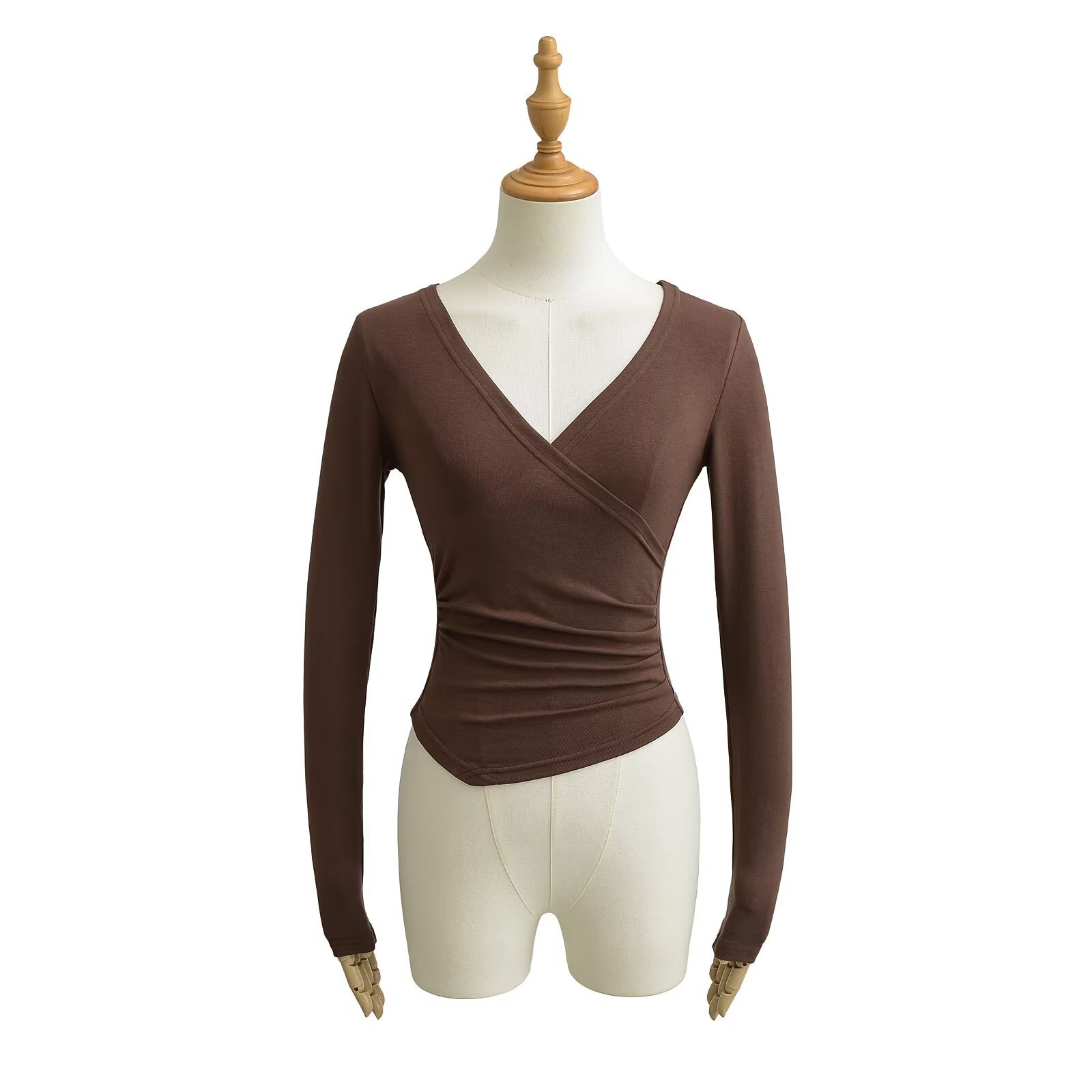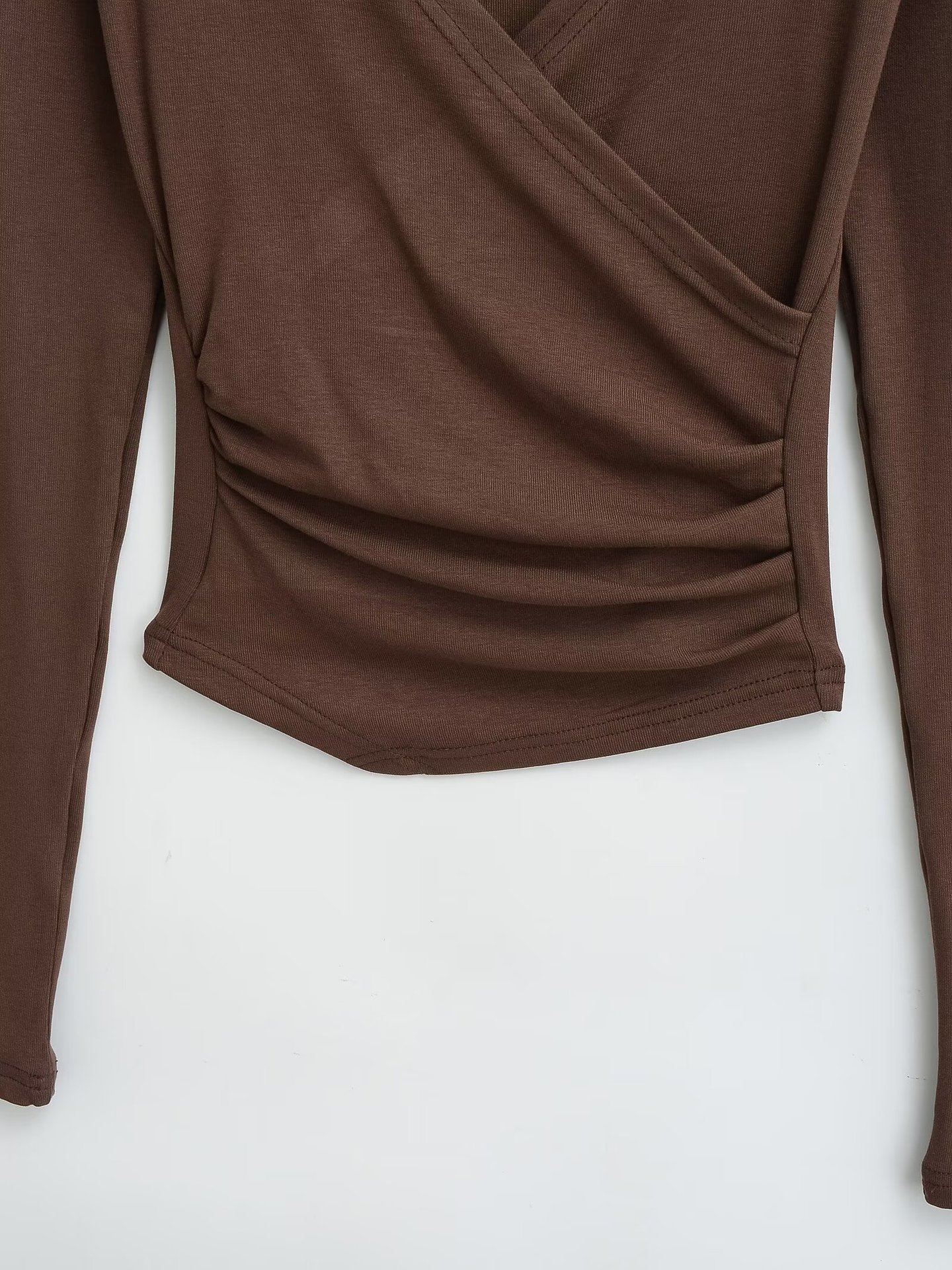 유럽과 미국의 Ins Cross V-neck 불규칙한 긴팔베이스 셔츠 여성의 가을과 겨울 뜨거운 소녀 슬림 핏 슬림 핏 탑스토어 가기
