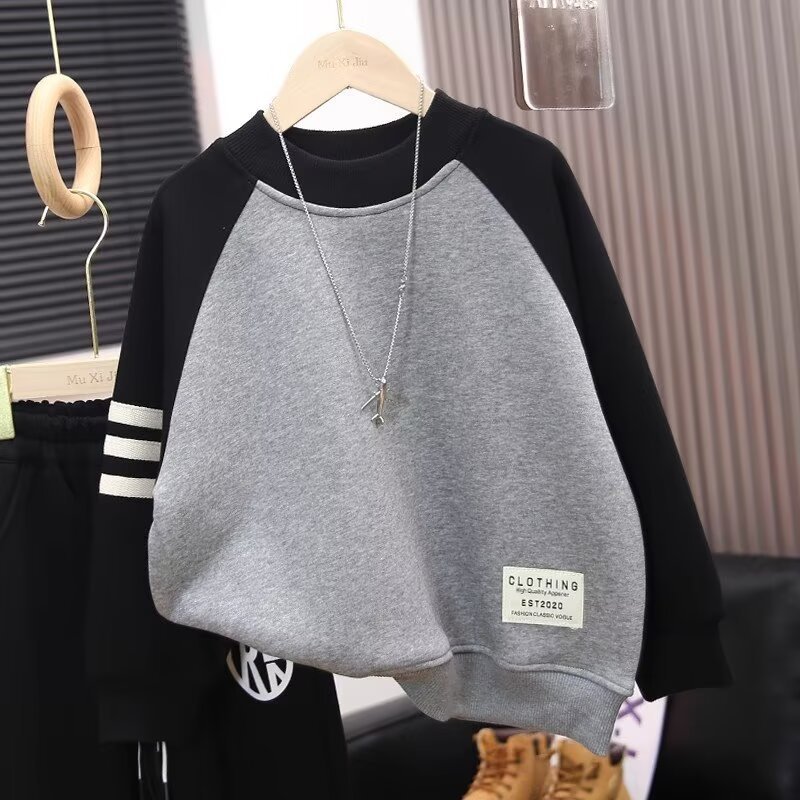 어린이 착용 소년 기모 땀 2024 년 가을 겨울 겨울 중간 및 큰 어린이 원피스 벨벳 탑스토어 가기