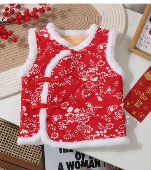 여아용 조끼, 동북풍 큰 꽃무늬 겨울용 두꺼운 민족풍 조끼, 중대형 어린이용 외출복, 어린이 공연복스토어 가기