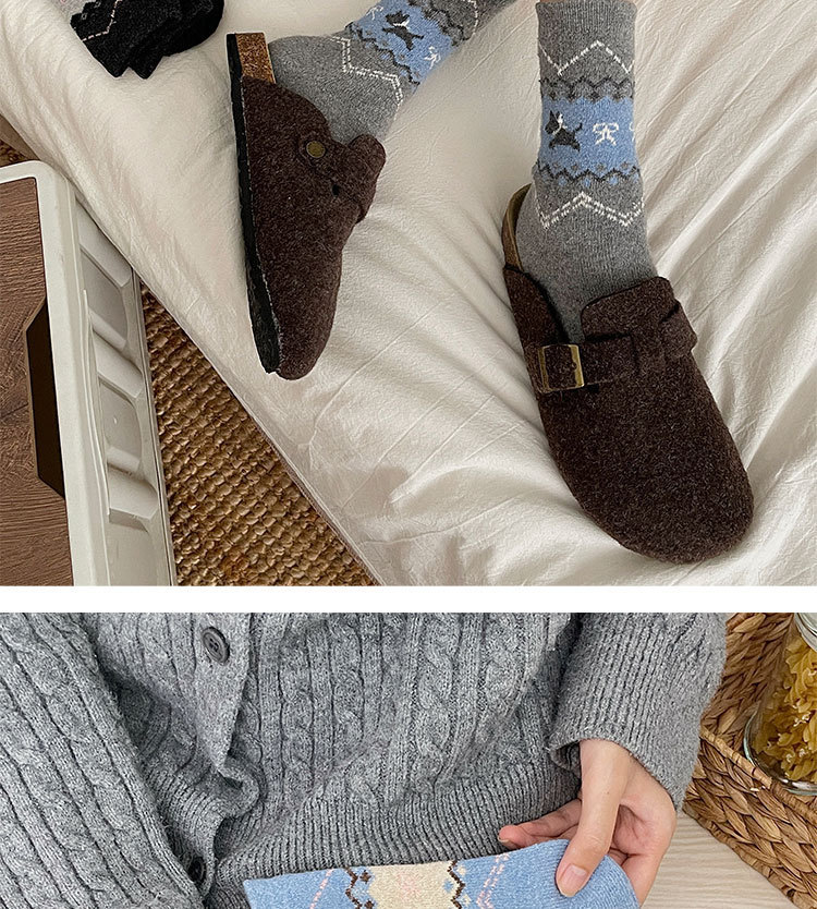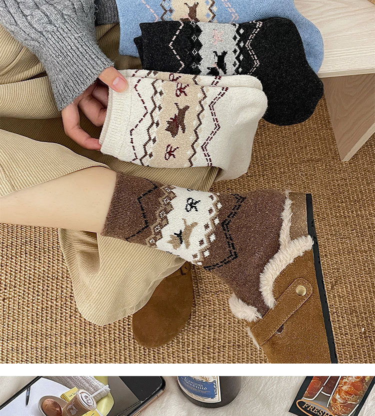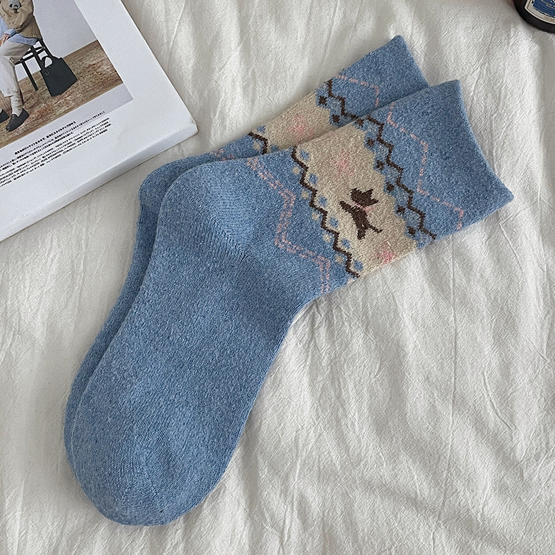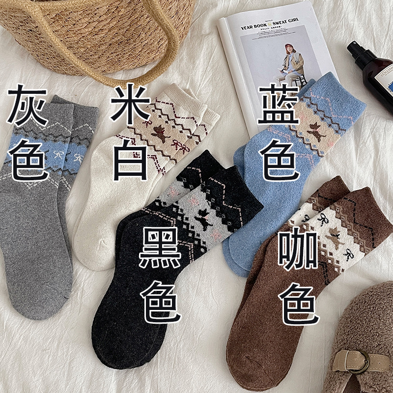 가을과 겨울 양모 양말 어린이 시즌 빈티지 페어 아일랜드 강아지 중간 길이 양말 두꺼운 따뜻한 일본 스타일 귀여운 만화 스타킹스토어 가기