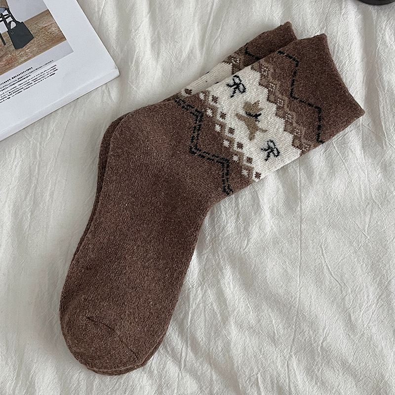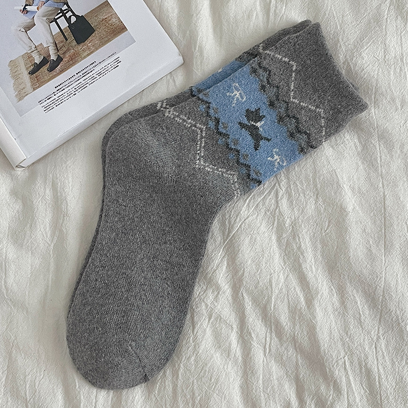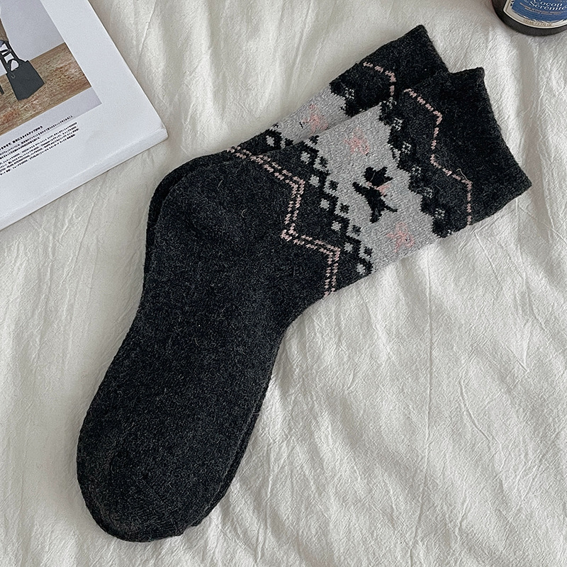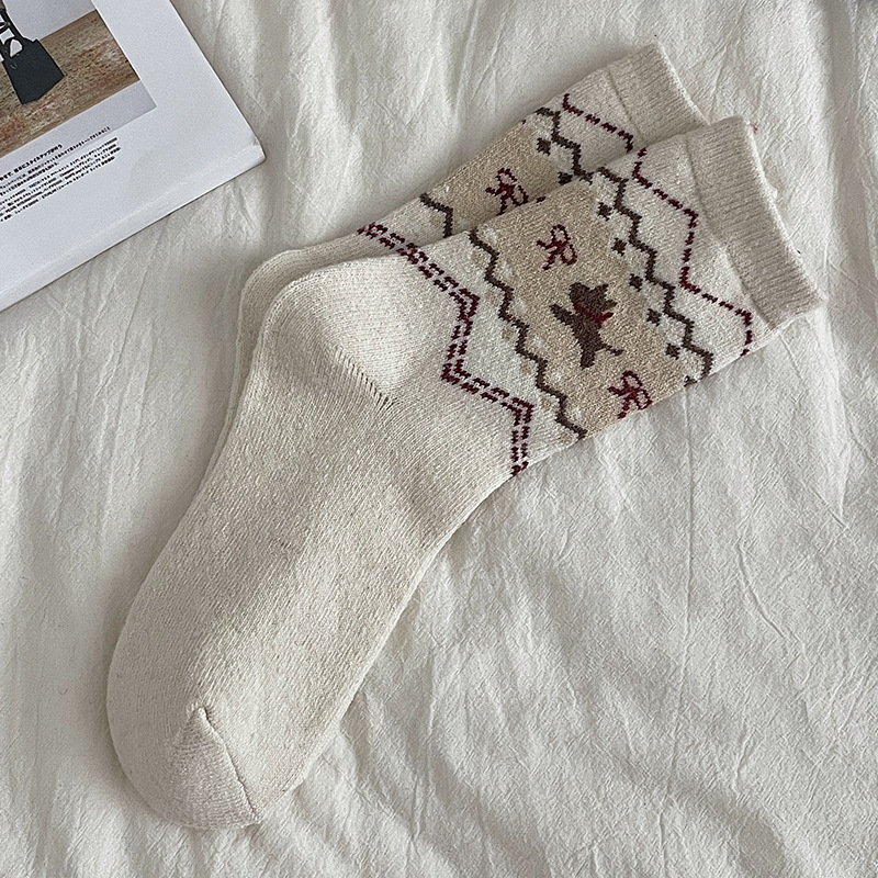 가을과 겨울 양모 양말 어린이 시즌 빈티지 페어 아일랜드 강아지 중간 길이 양말 두꺼운 따뜻한 일본 스타일 귀여운 만화 스타킹