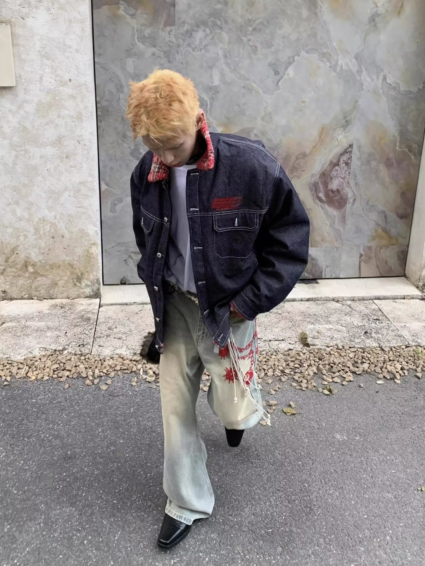 하이 스트리트 아메리칸 스타일 빈티지 세탁 오래 된 노란색 진흙 염색 청바지 남성 스트레이트 튜브 느슨한 마이크로 플레어 바이브 바지스토어 가기
