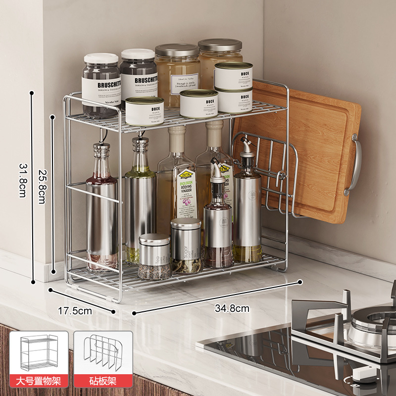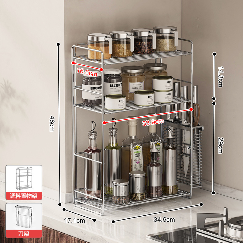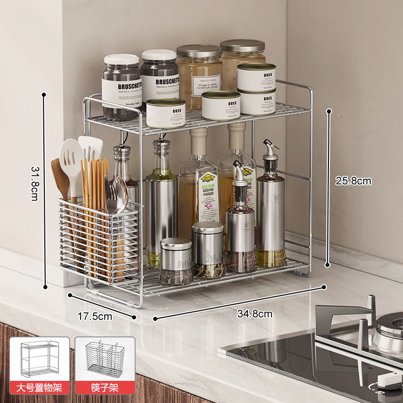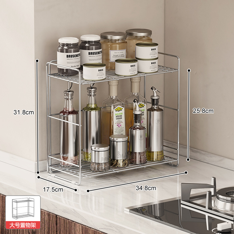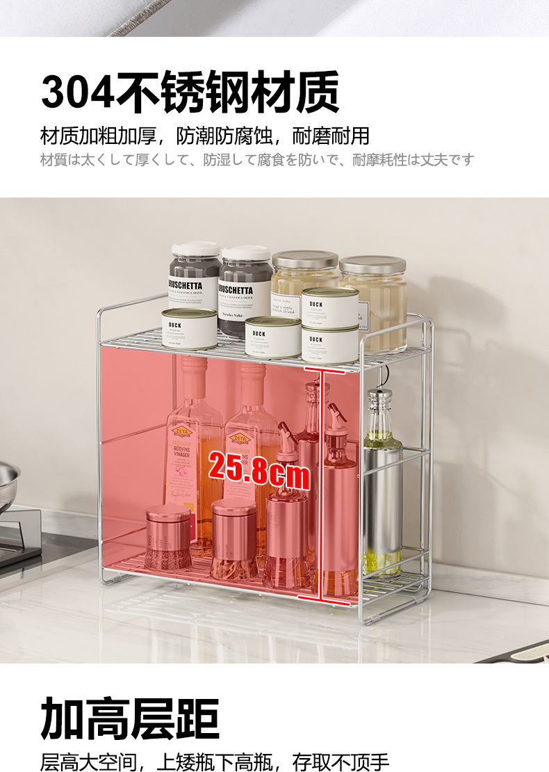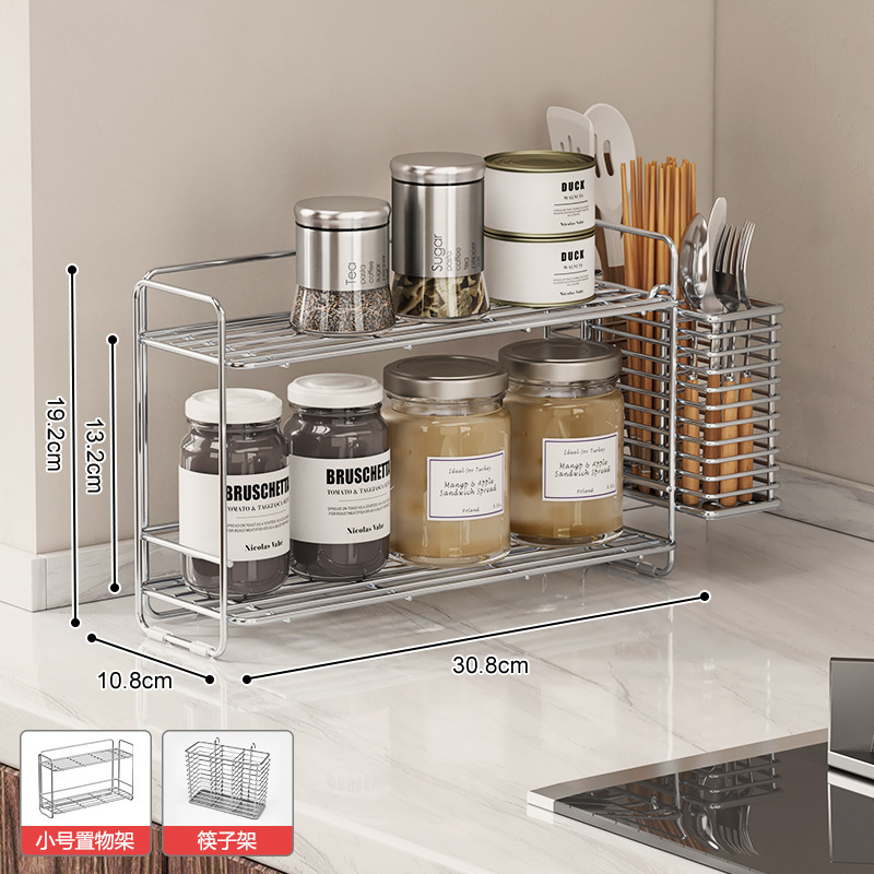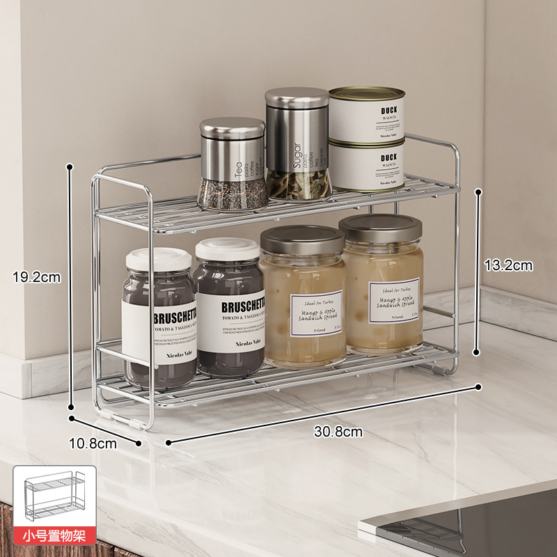 304 스테인레스 스틸 양념 랙 주방 코너 조미료 항아리 저장 좁은 측면 통합 더블 레이어 테이블 탑 스파이스 랙