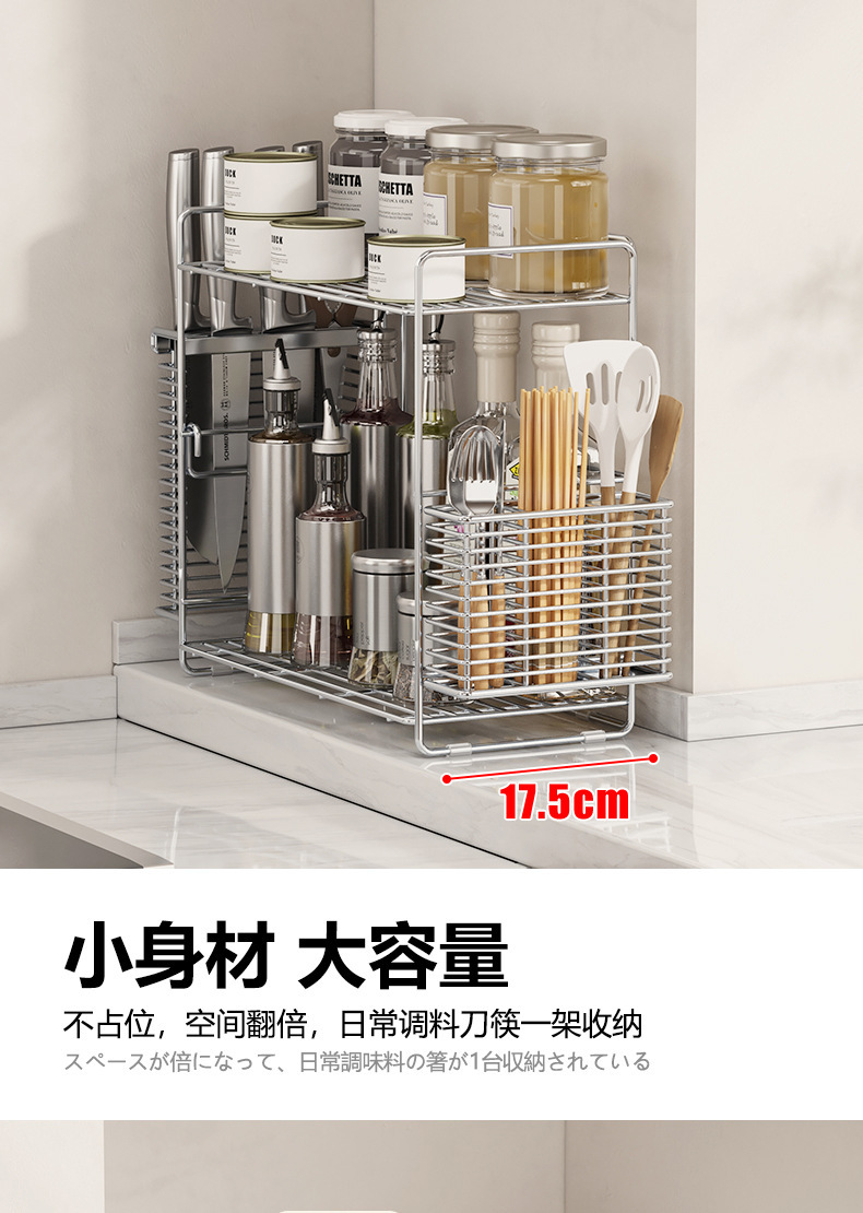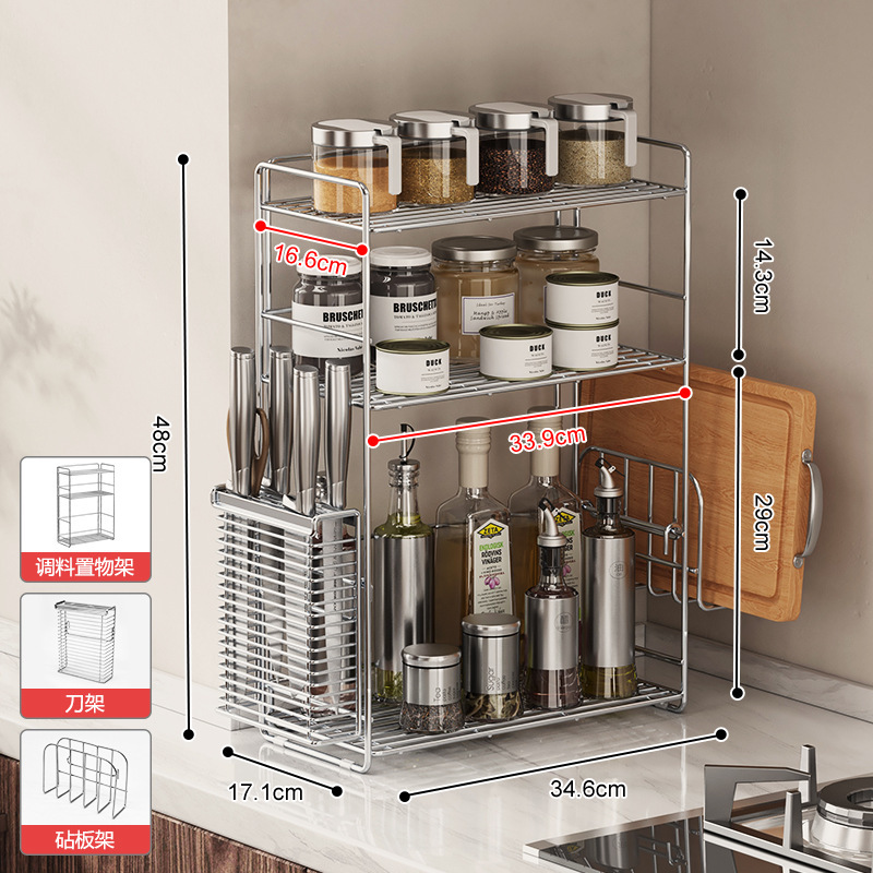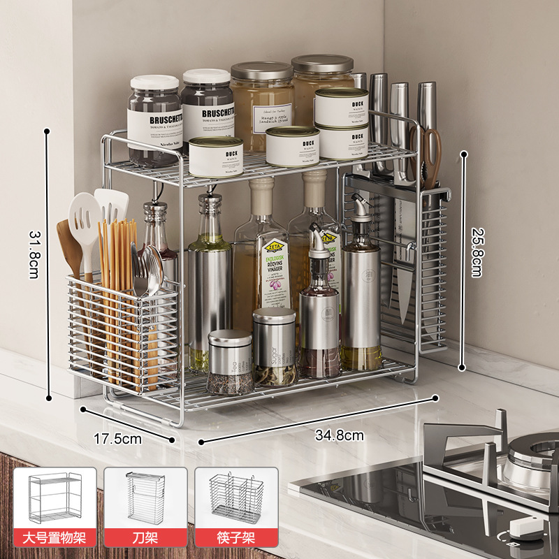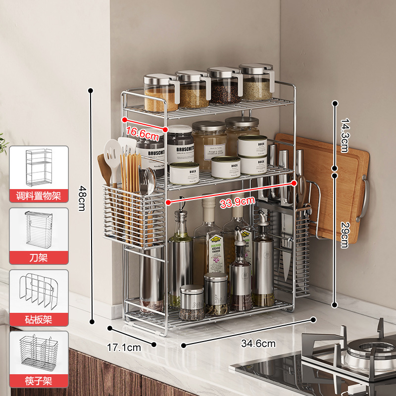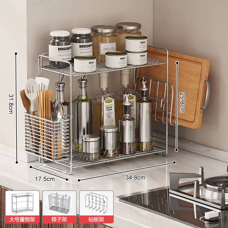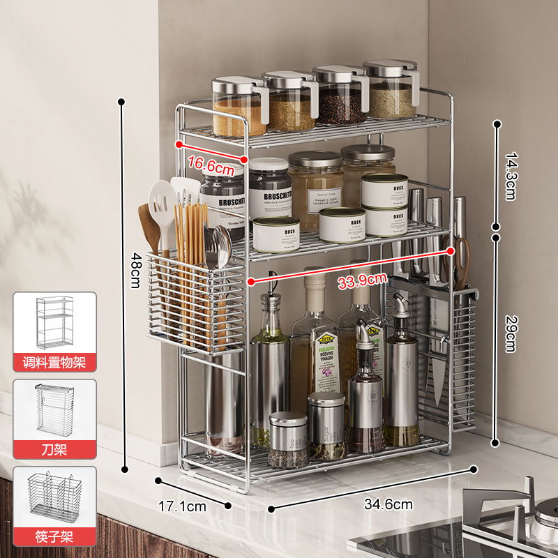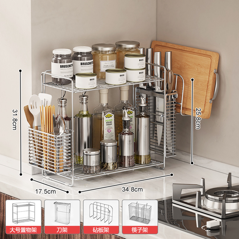 304 스테인레스 스틸 양념 랙 주방 코너 조미료 항아리 저장 좁은 측면 통합 더블 레이어 테이블 탑 스파이스 랙