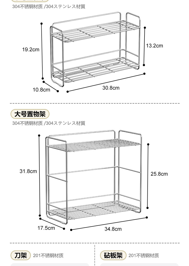 • [대형] 304 2단 양념걸이 + 세로젓가락걸이 + 도마걸이 + 칼걸이