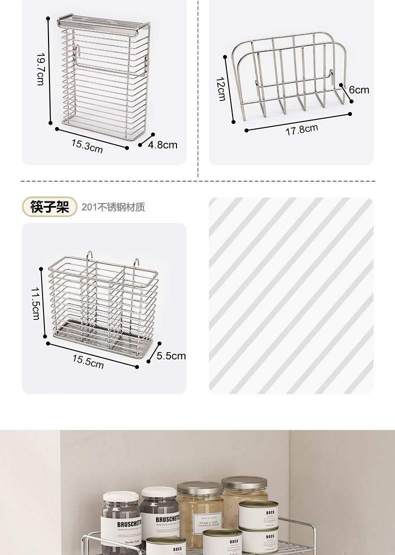 • 설치가 필요 없는 304 스테인리스 조미료 선반 + 젓가락 꽂이