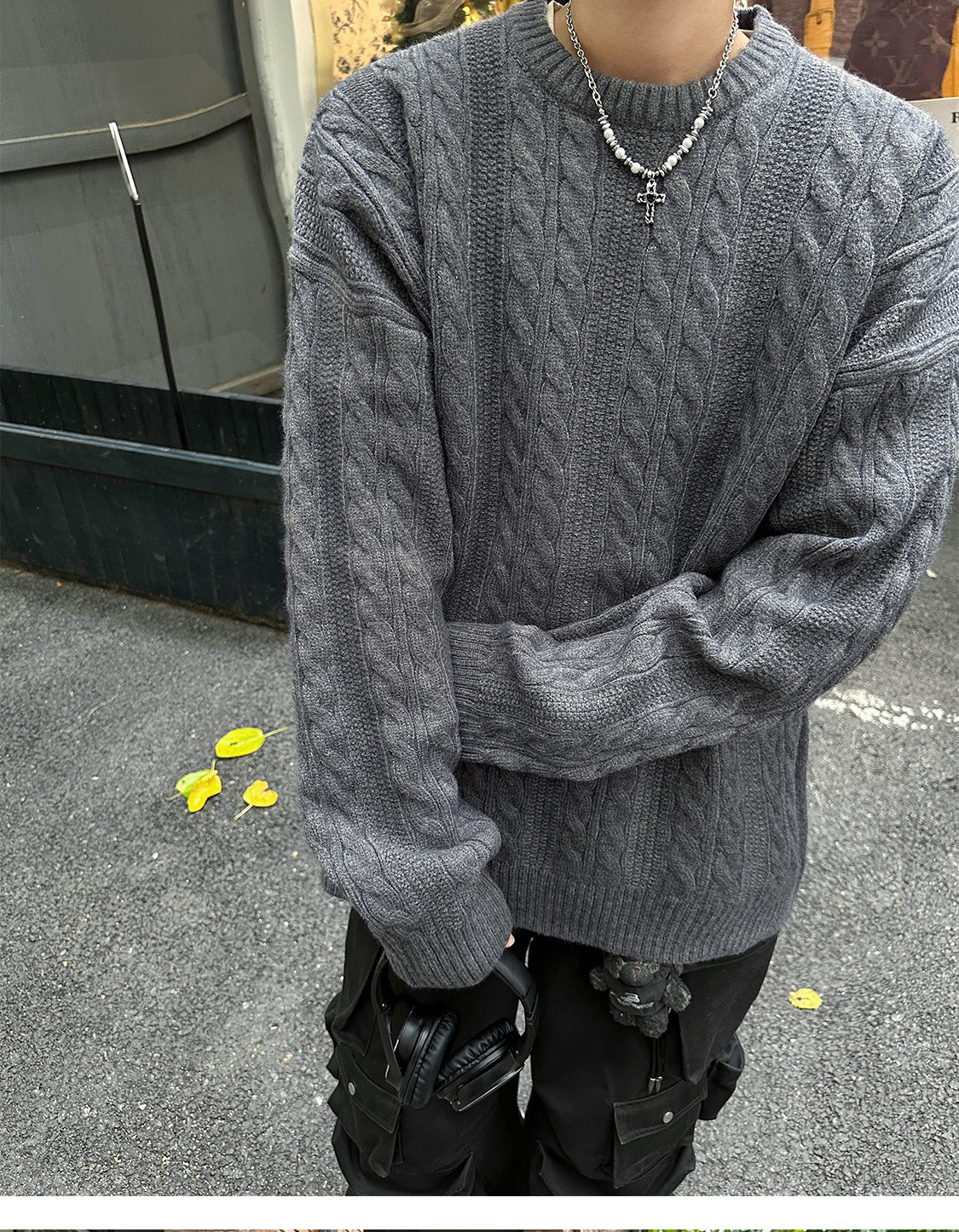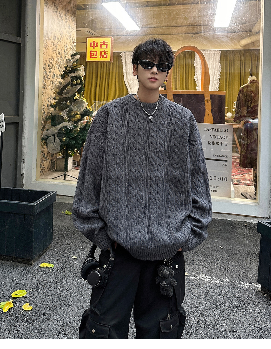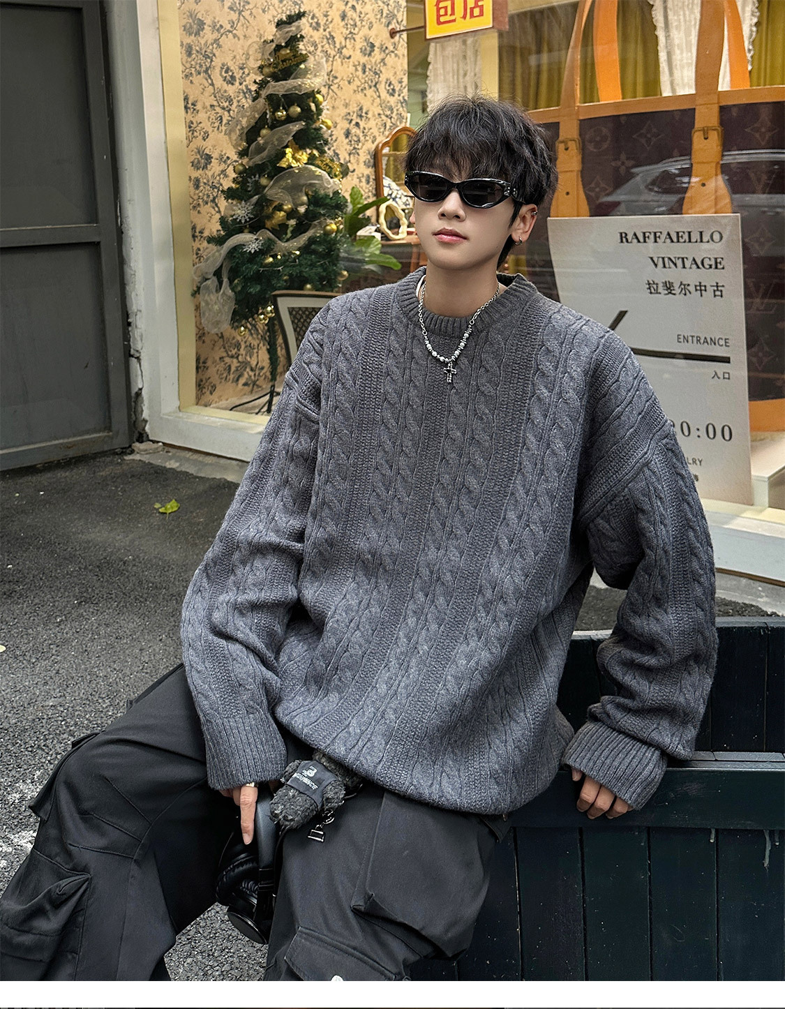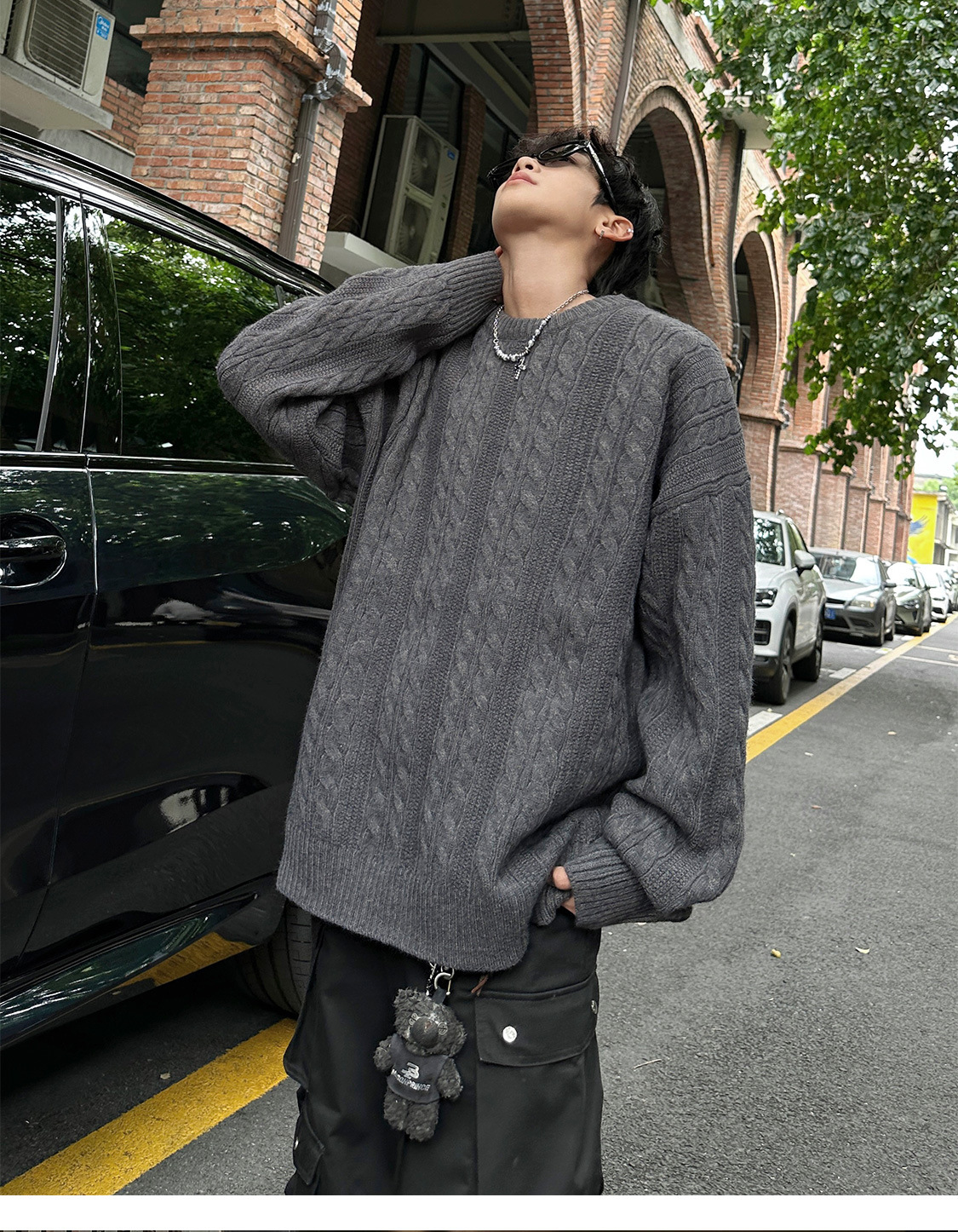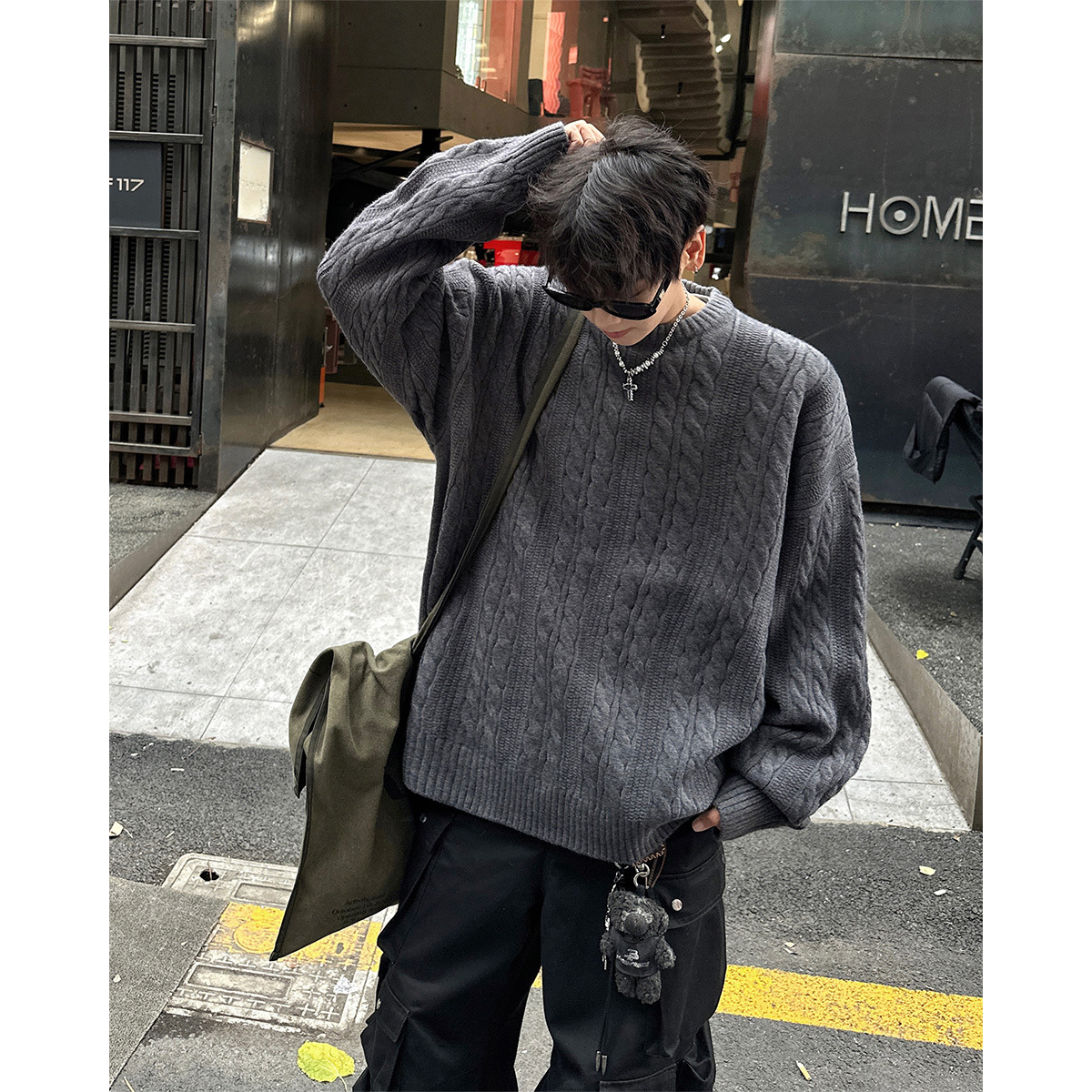 다크 그레이 트위스트 스웨터 남자의 가을과 겨울 오버 사이즈 게으른 스타일 크루 넥 재킷 패션 브랜드 하이 엔드 스웨터스토어 가기