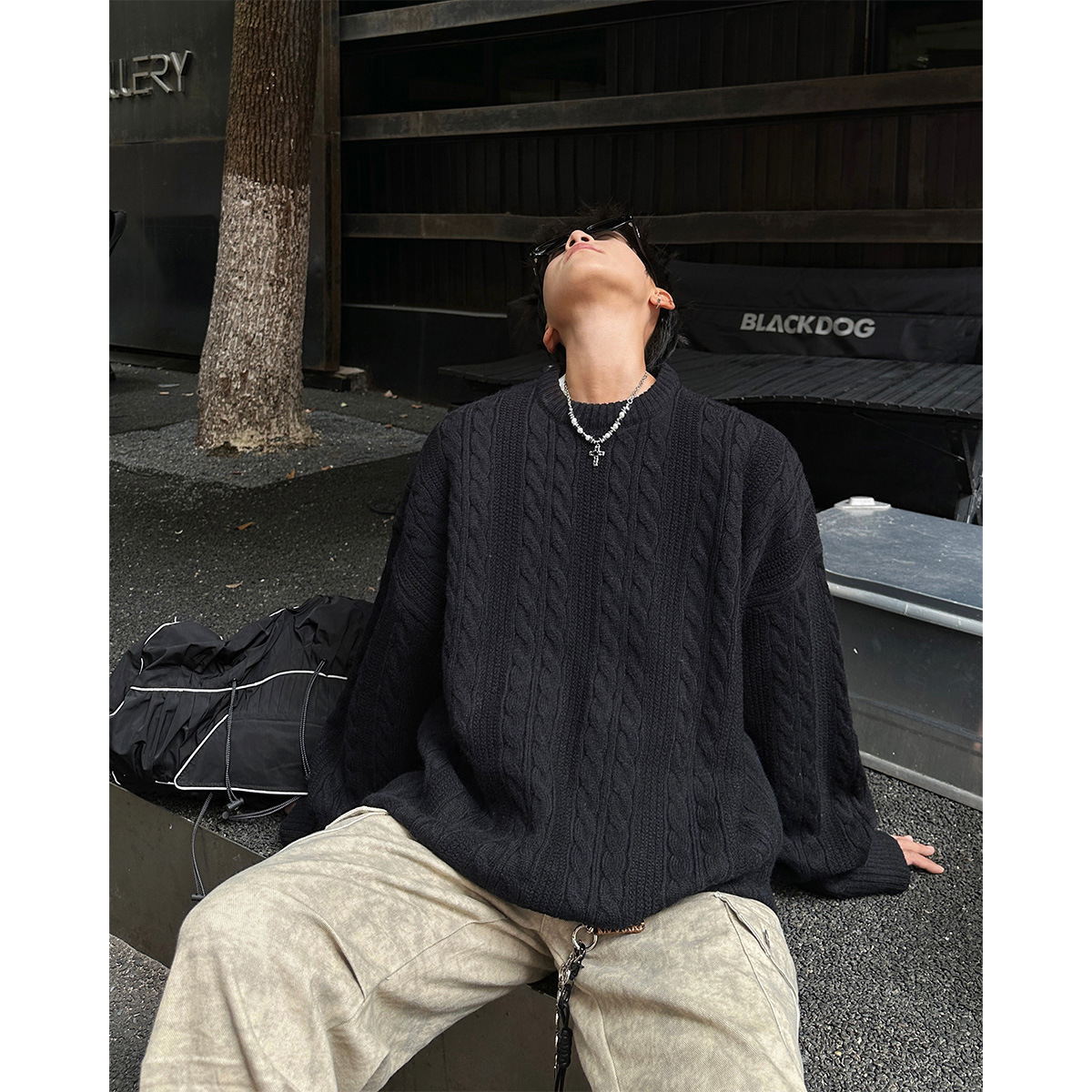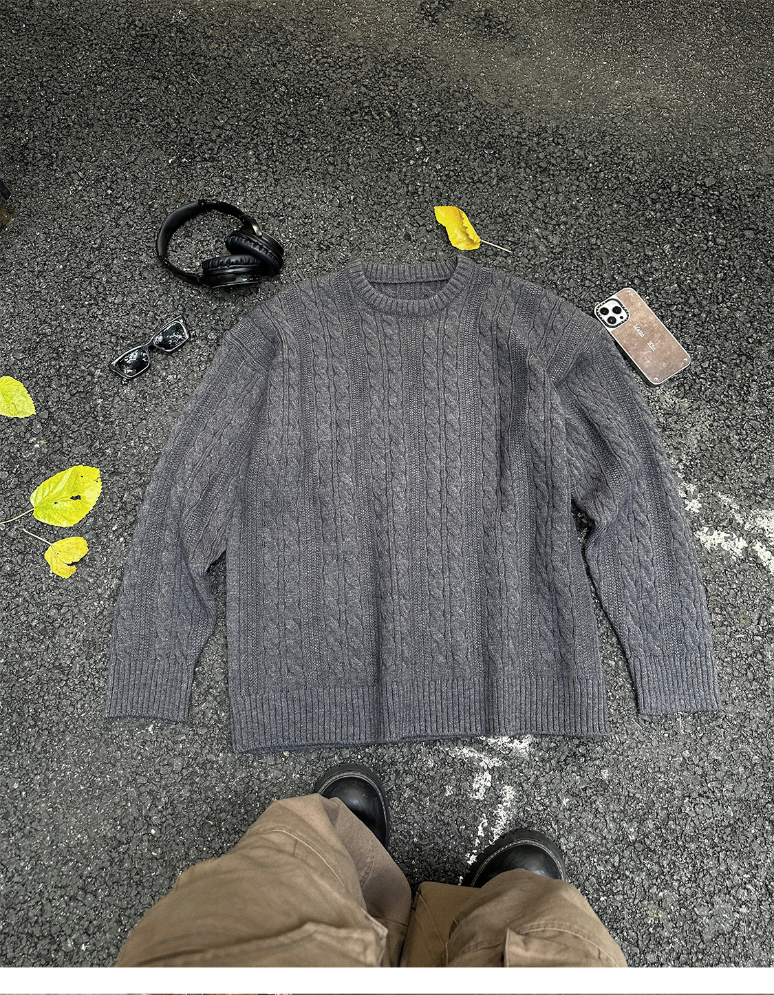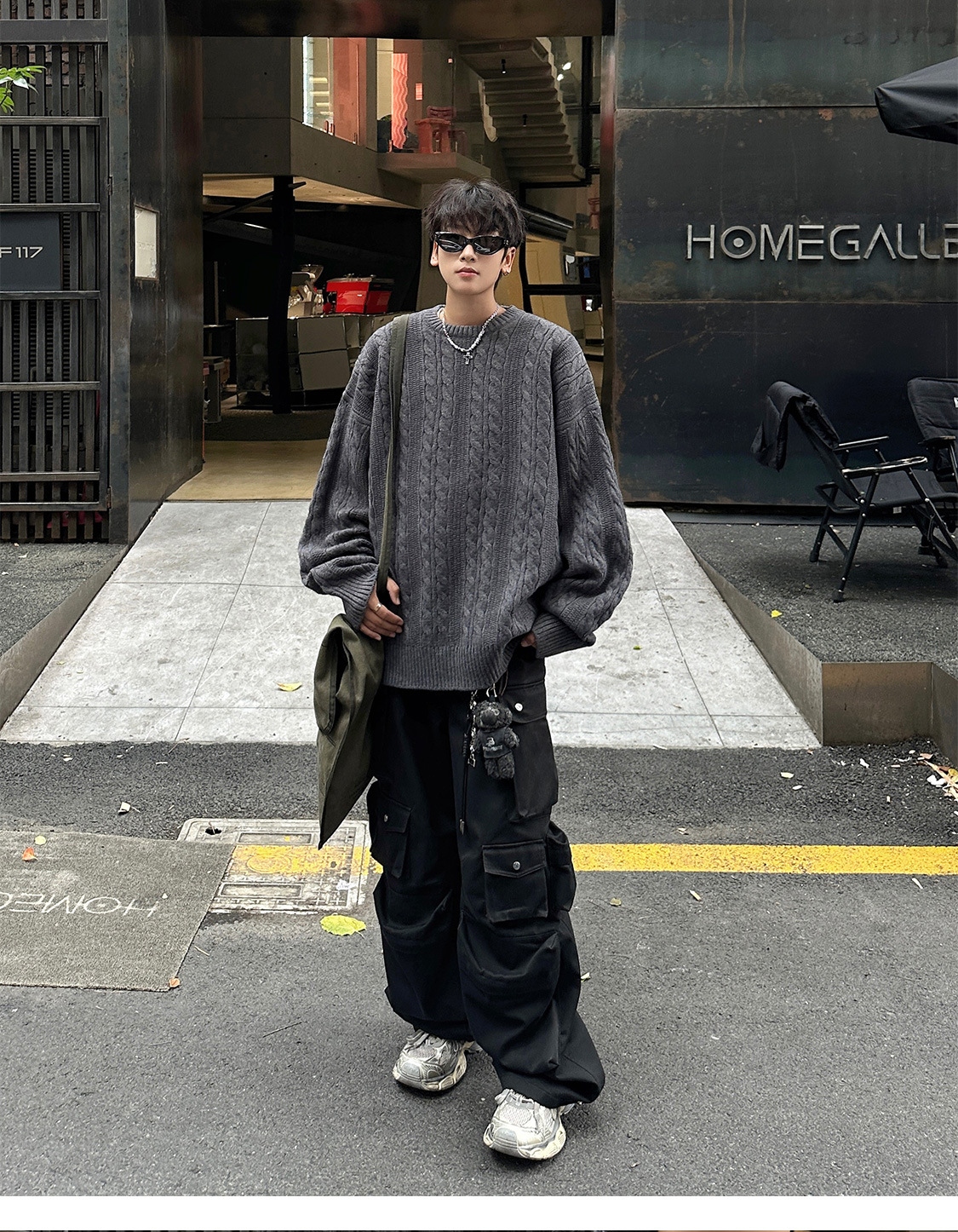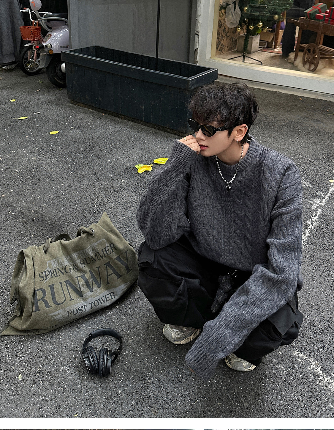 다크 그레이 트위스트 스웨터 남자의 가을과 겨울 오버 사이즈 게으른 스타일 크루 넥 재킷 패션 브랜드 하이 엔드 스웨터스토어 가기