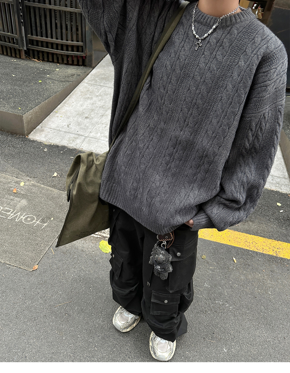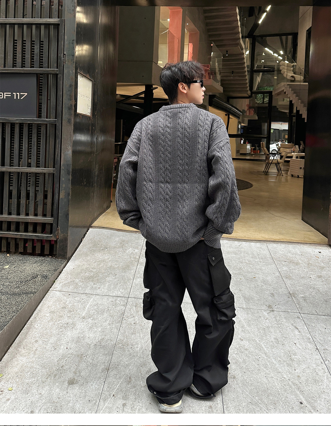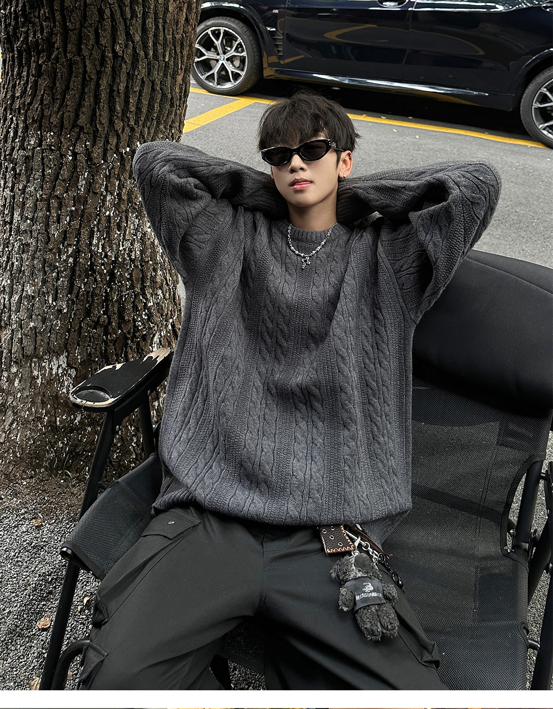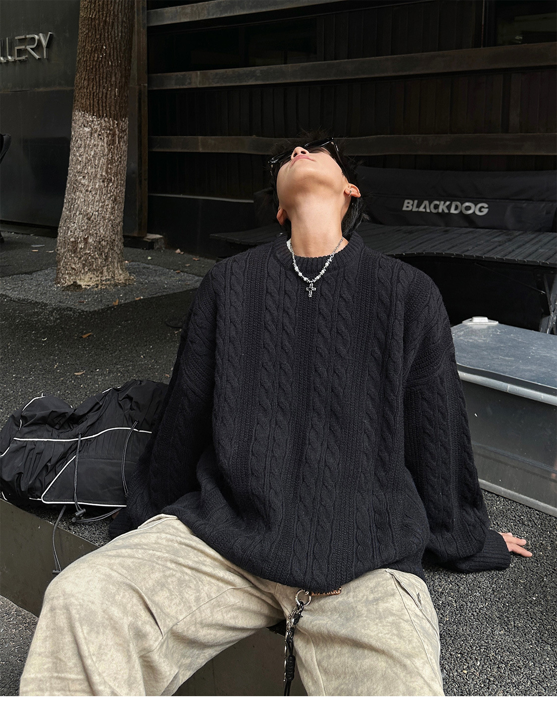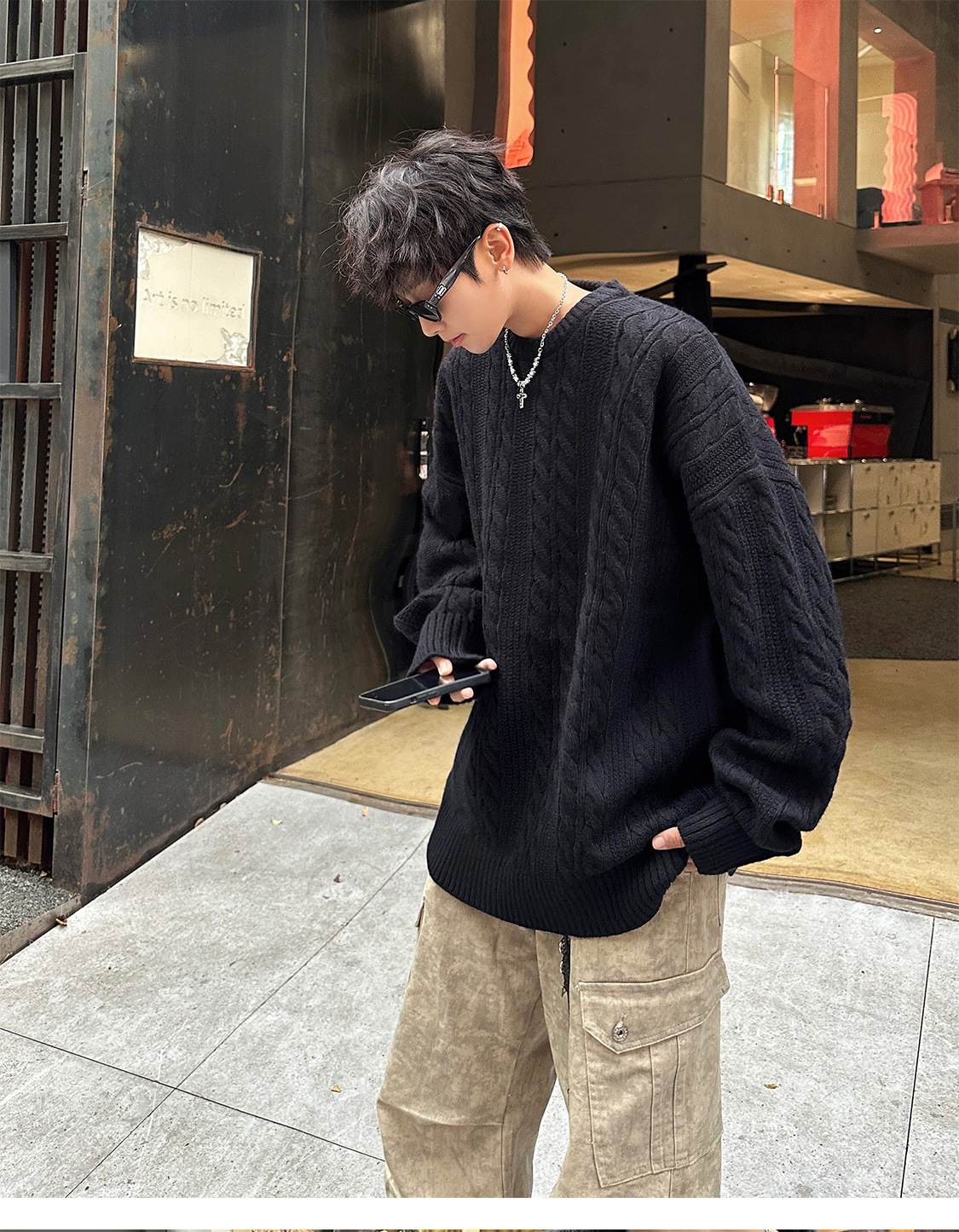다크 그레이 트위스트 스웨터 남자의 가을과 겨울 오버 사이즈 게으른 스타일 크루 넥 재킷 패션 브랜드 하이 엔드 스웨터스토어 가기