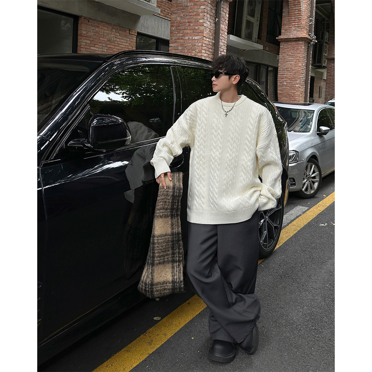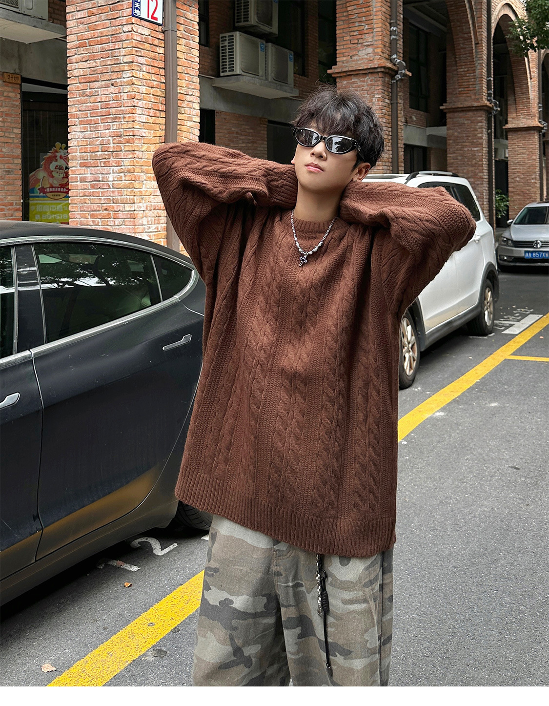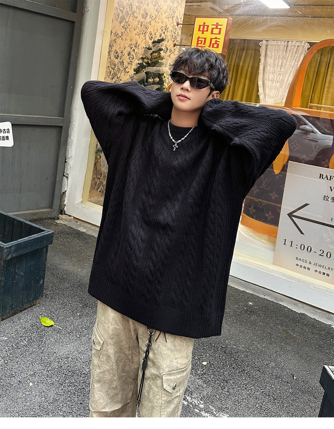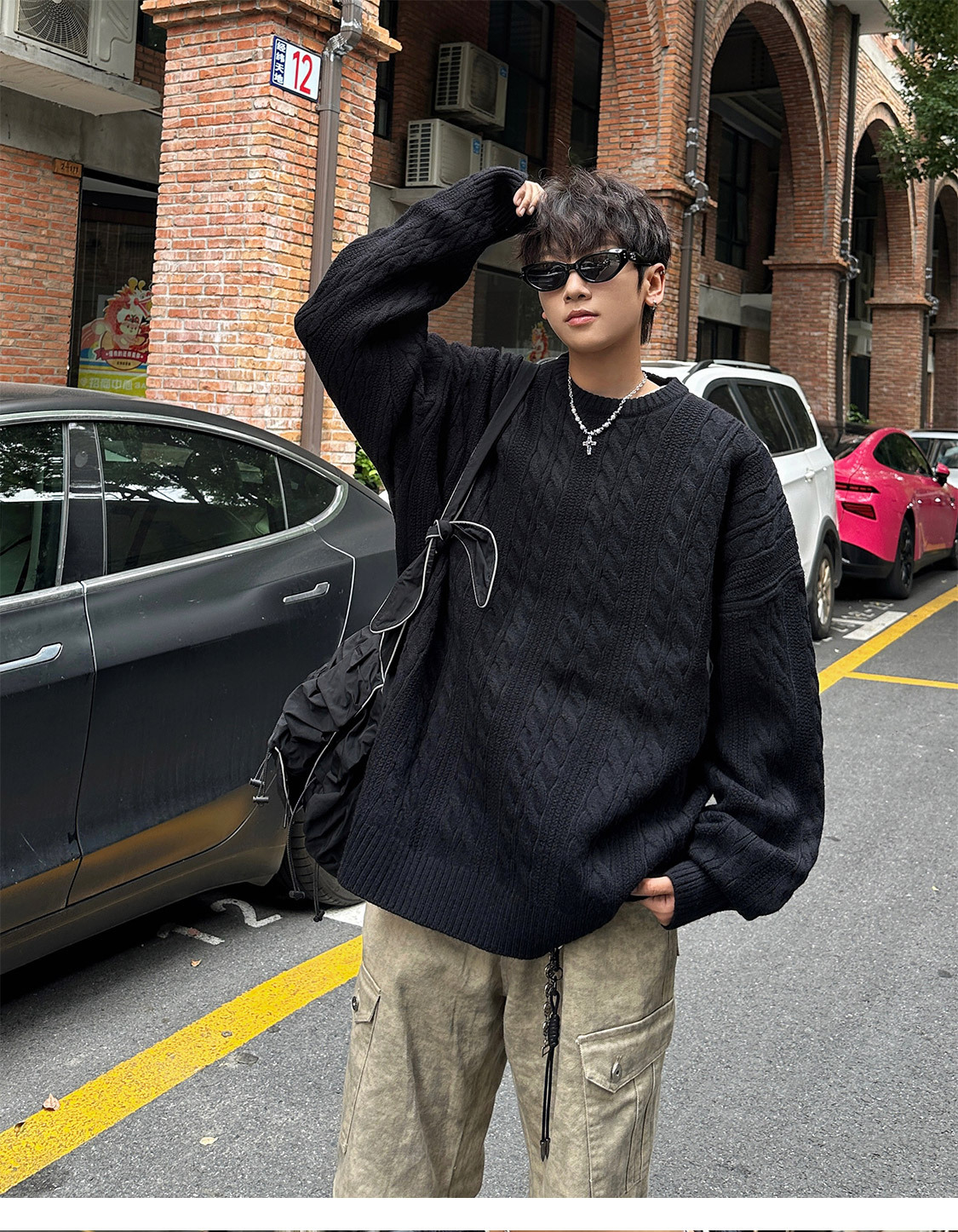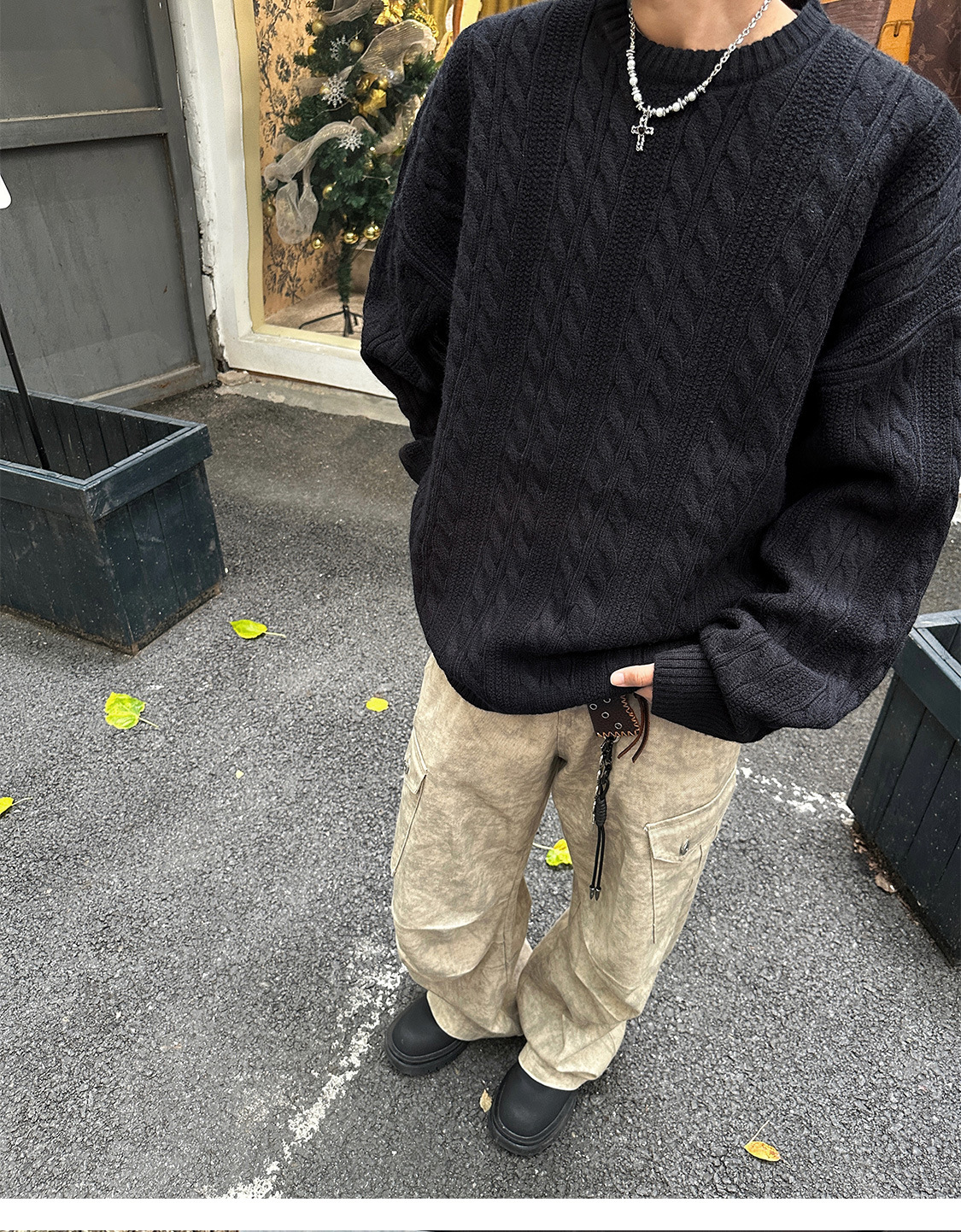 다크 그레이 트위스트 스웨터 남자의 가을과 겨울 오버 사이즈 게으른 스타일 크루 넥 재킷 패션 브랜드 하이 엔드 스웨터스토어 가기