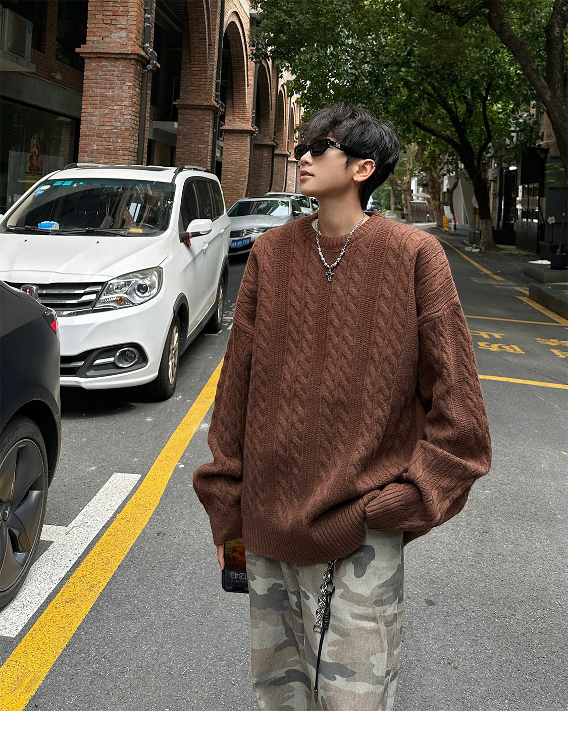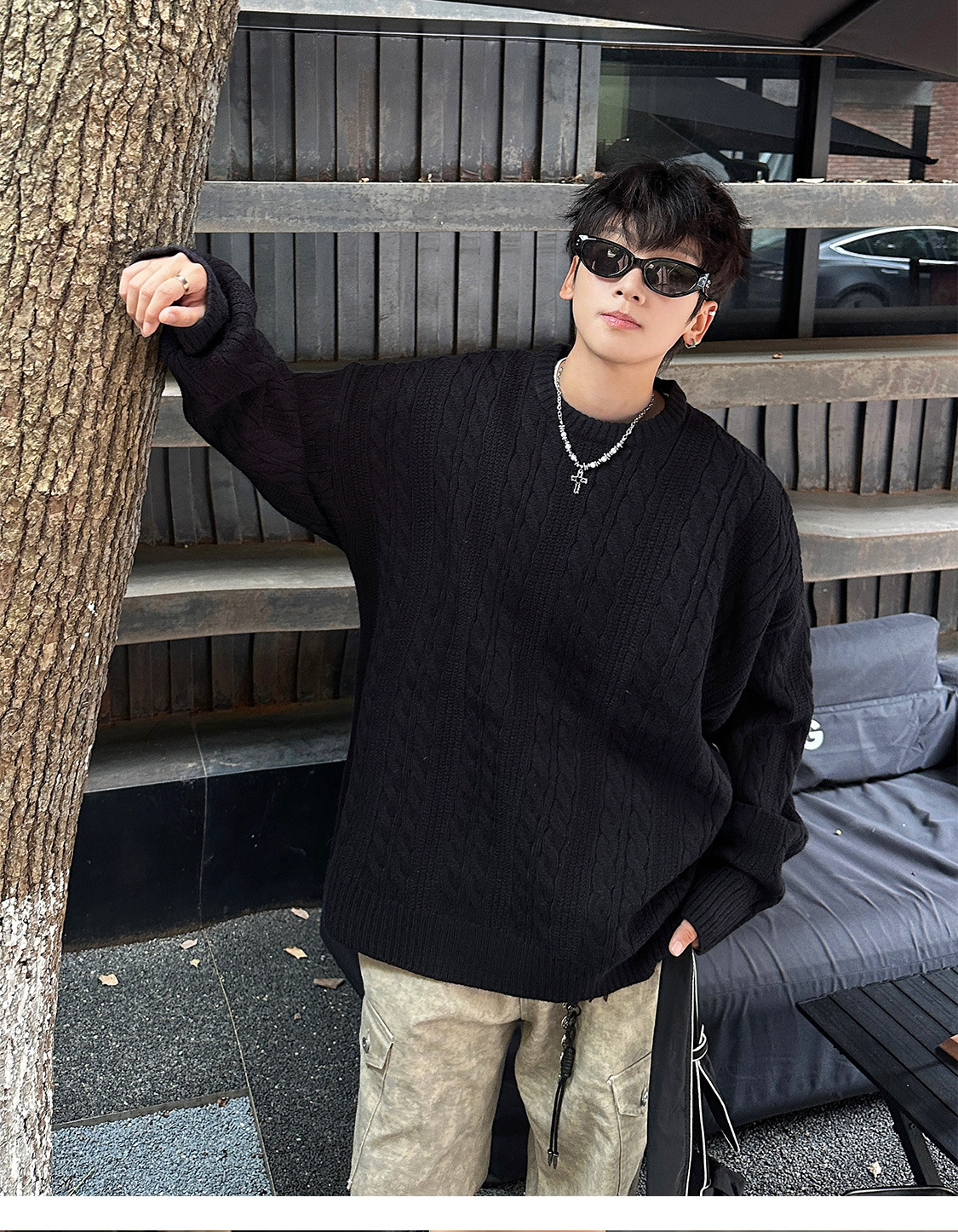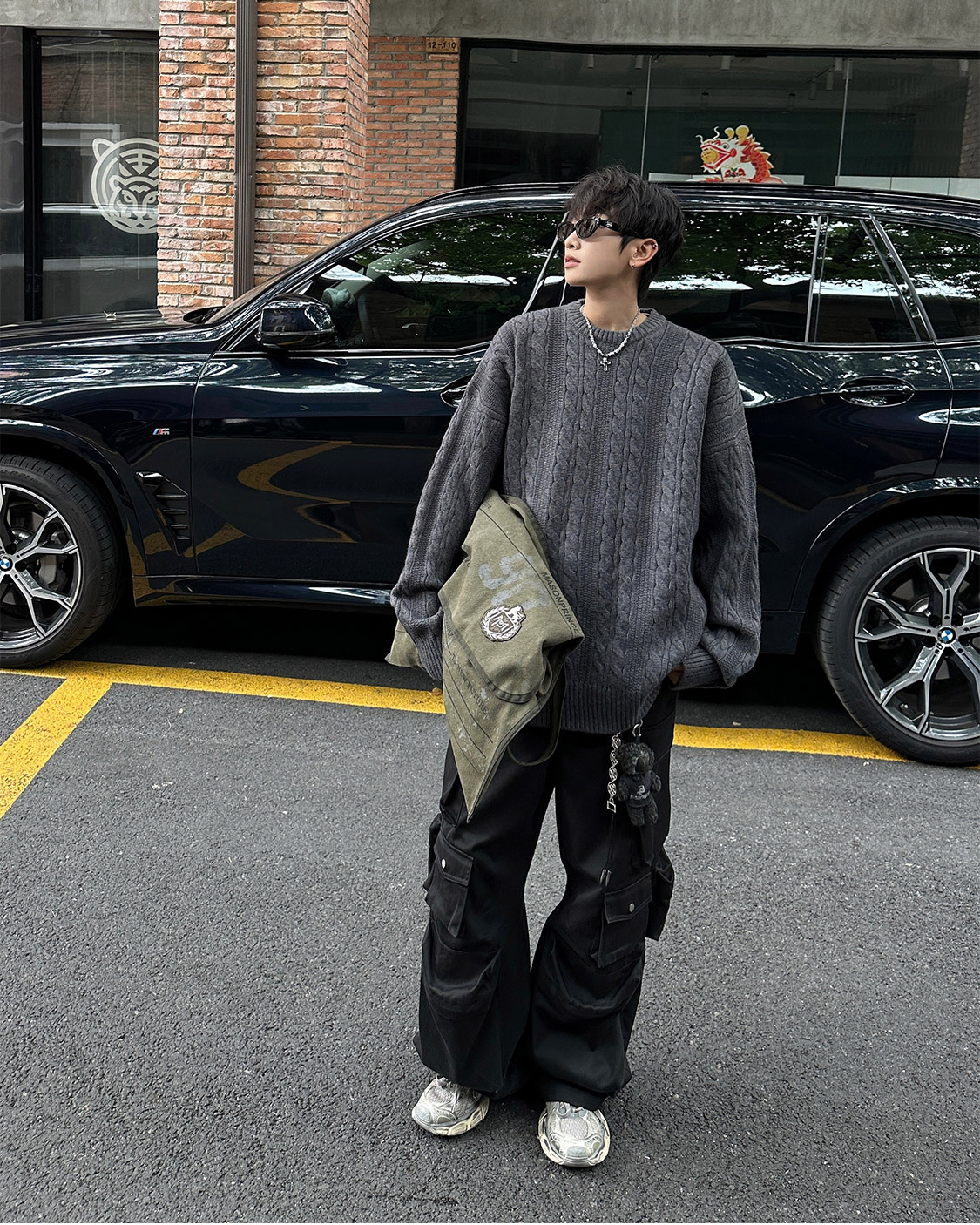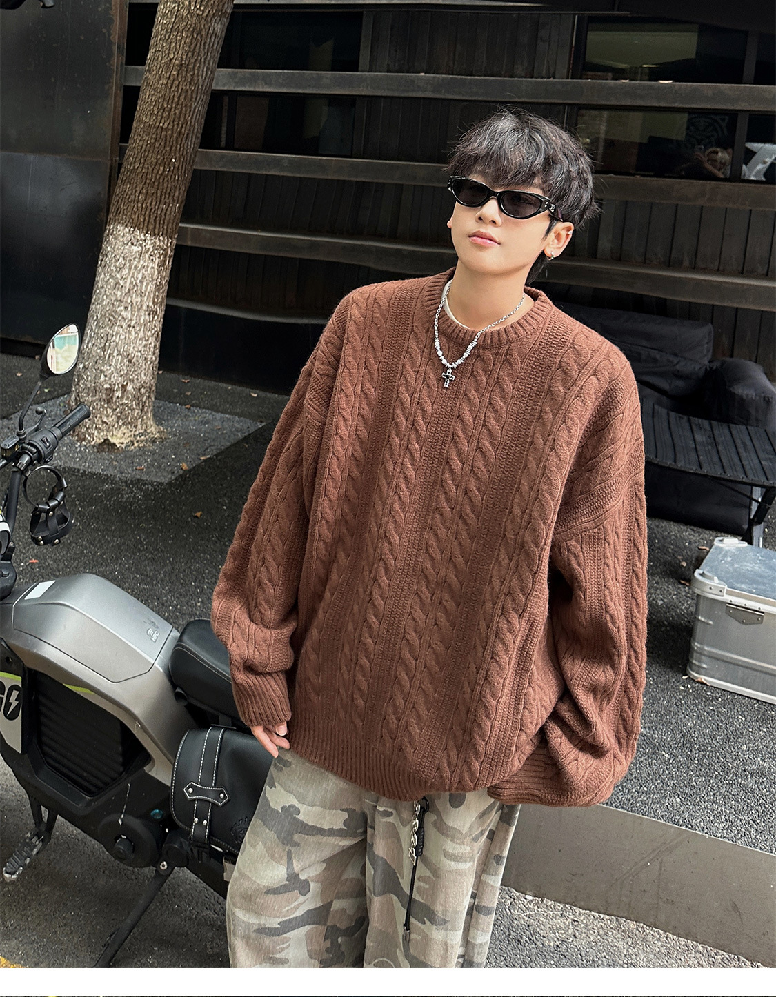 다크 그레이 트위스트 스웨터 남자의 가을과 겨울 오버 사이즈 게으른 스타일 크루 넥 재킷 패션 브랜드 하이 엔드 스웨터스토어 가기