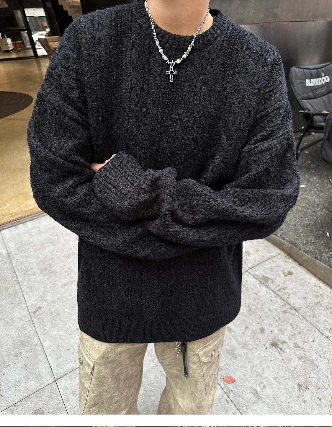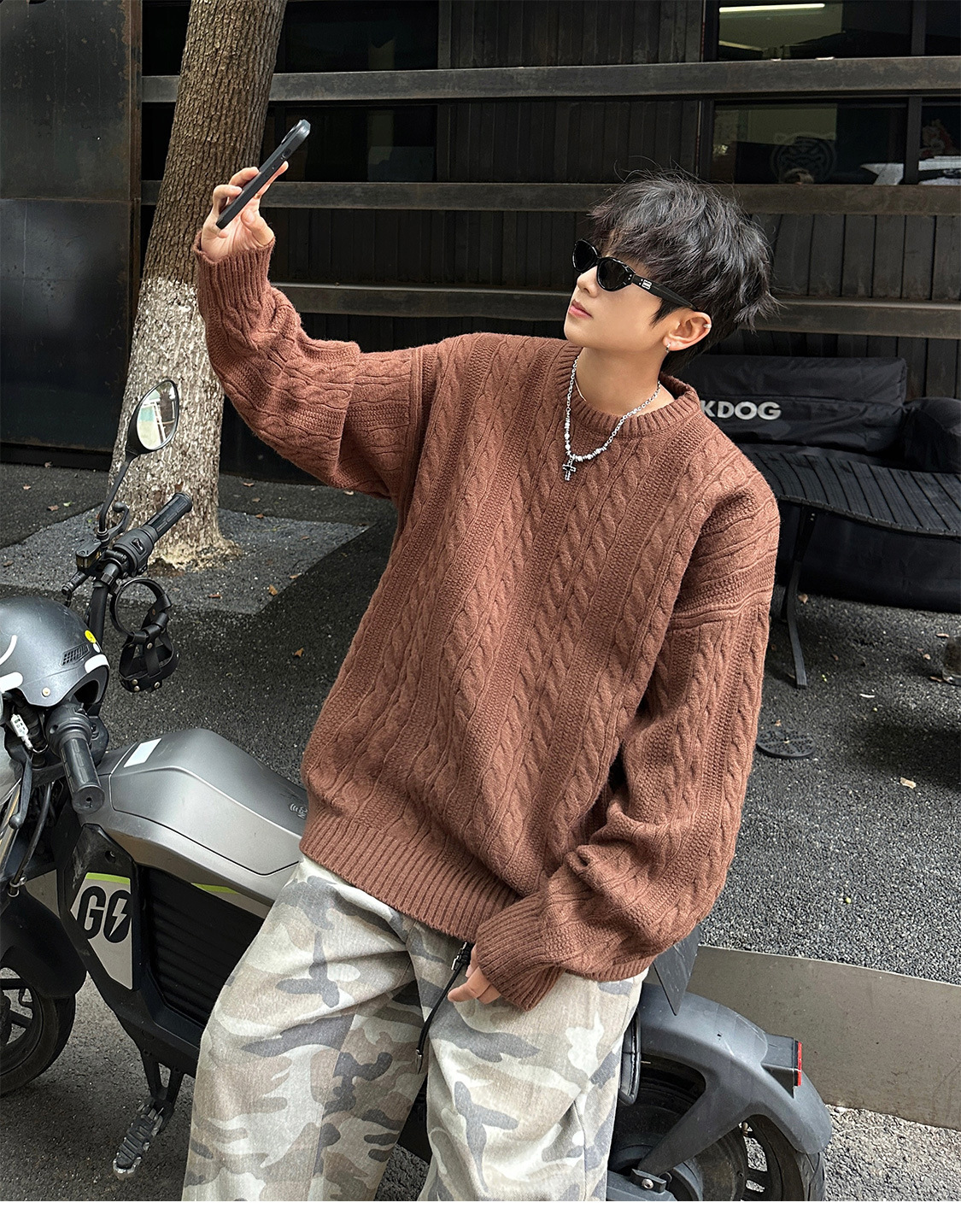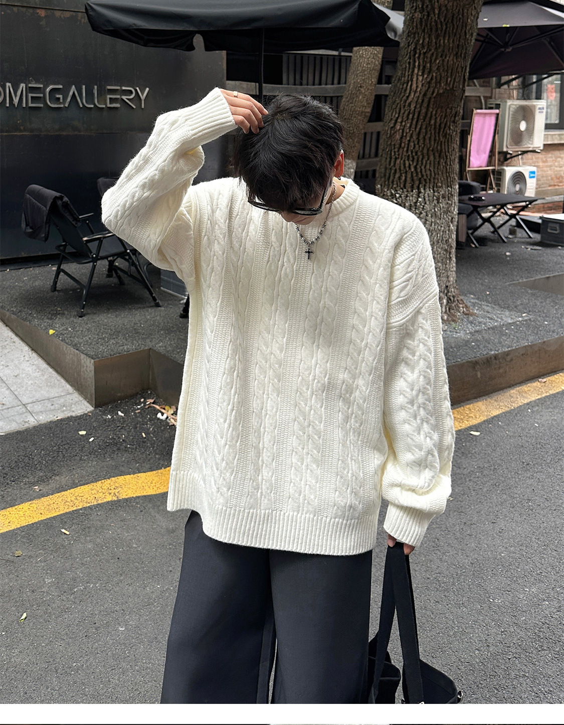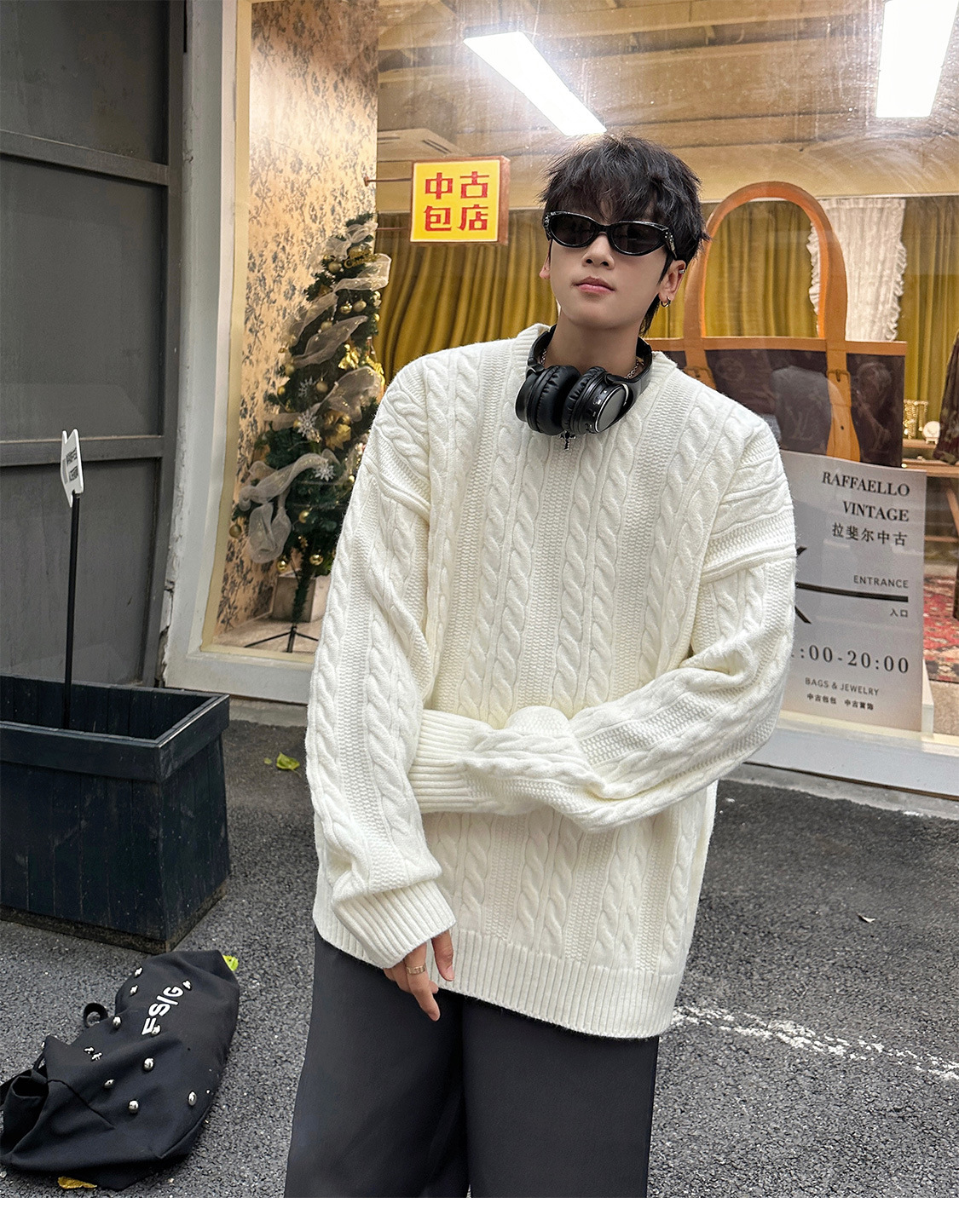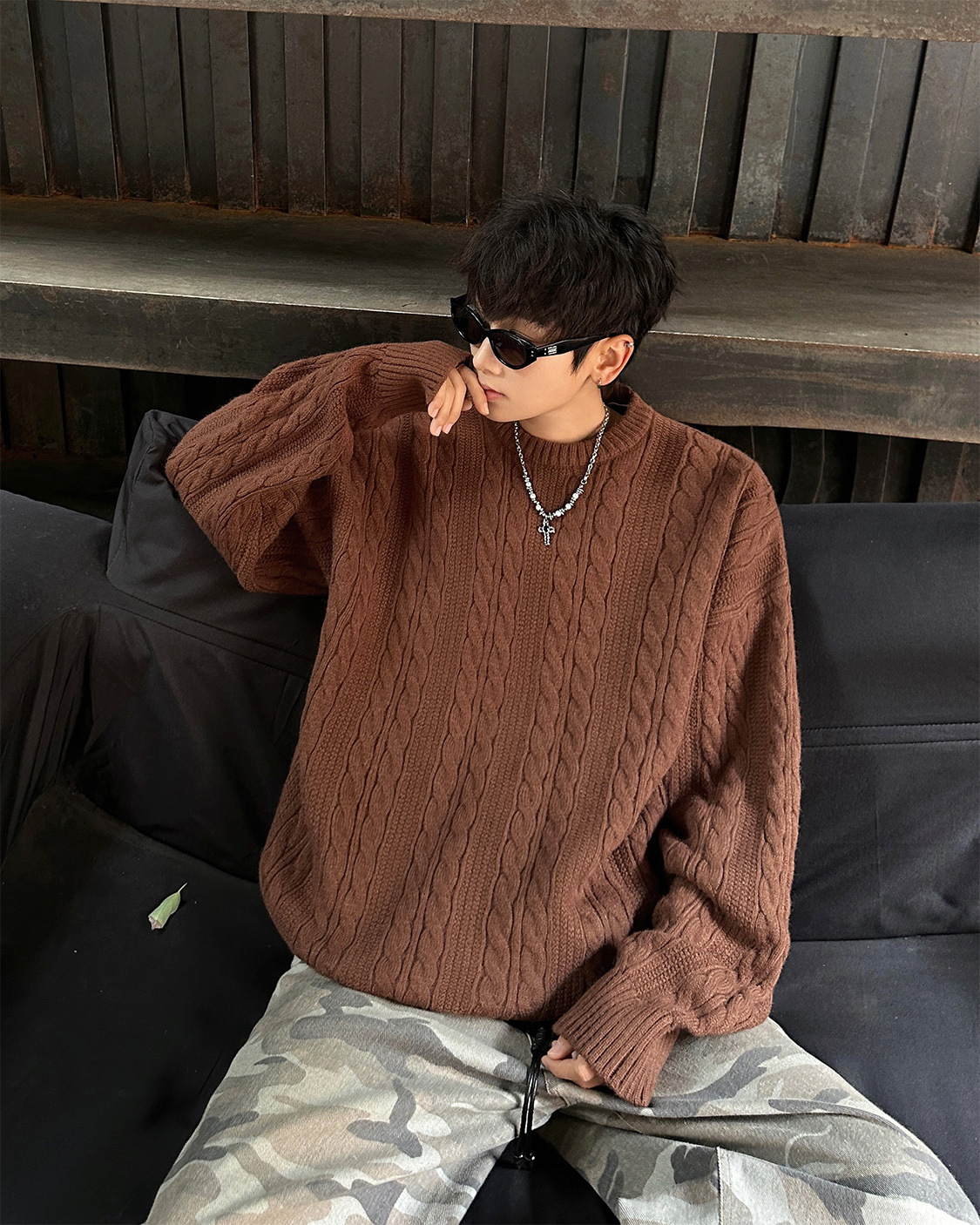 다크 그레이 트위스트 스웨터 남자의 가을과 겨울 오버 사이즈 게으른 스타일 크루 넥 재킷 패션 브랜드 하이 엔드 스웨터스토어 가기