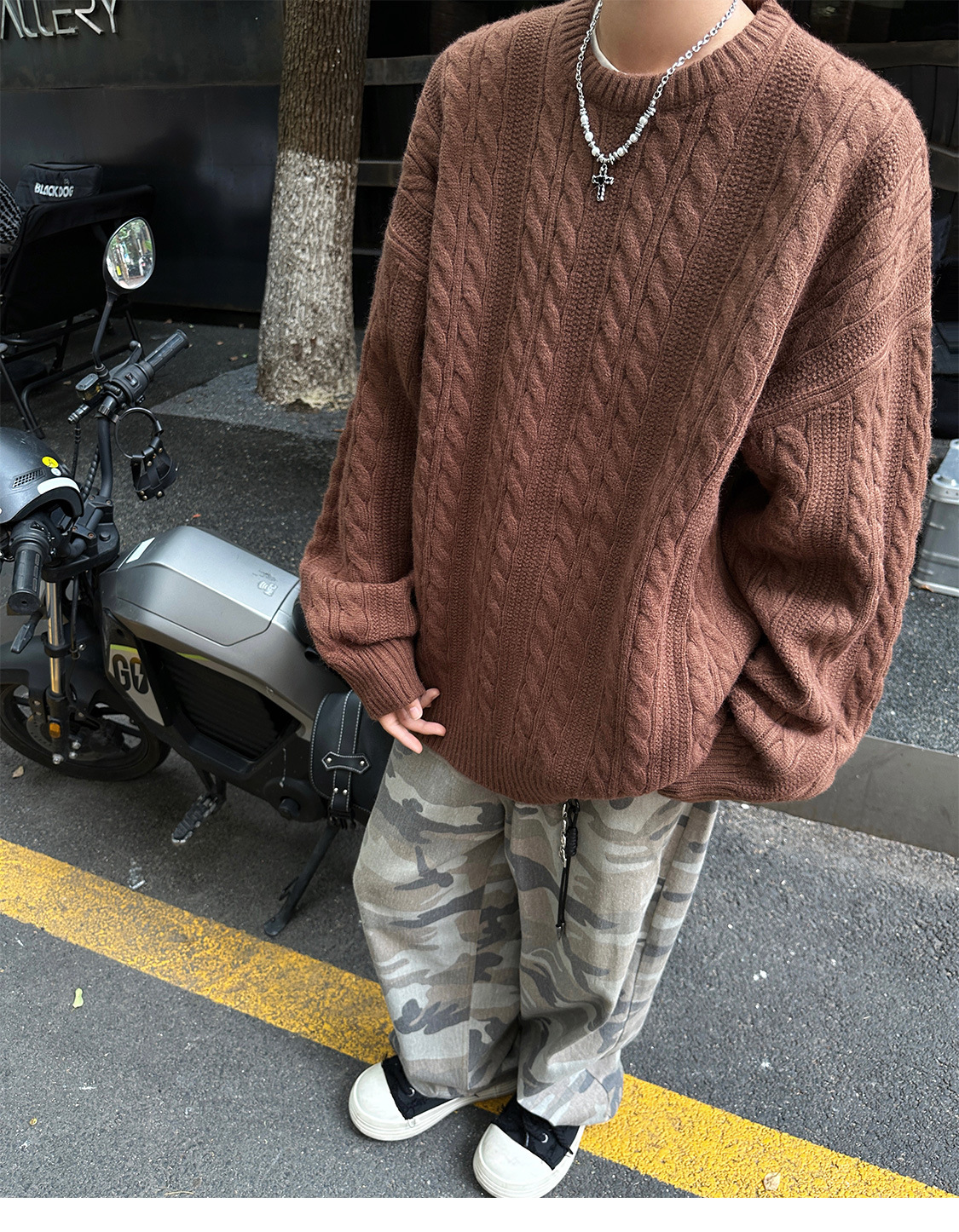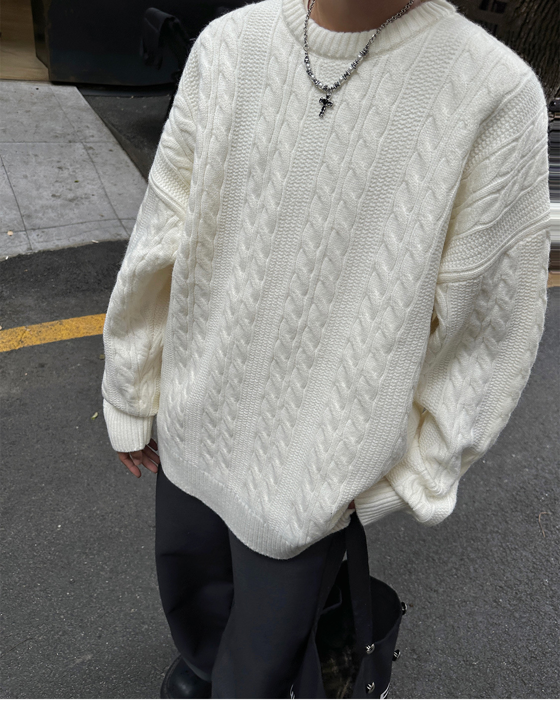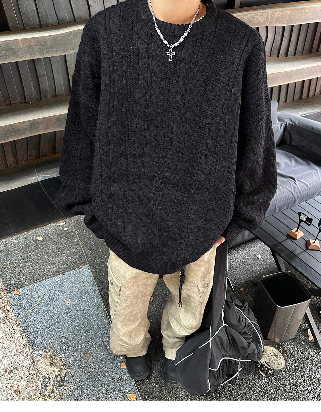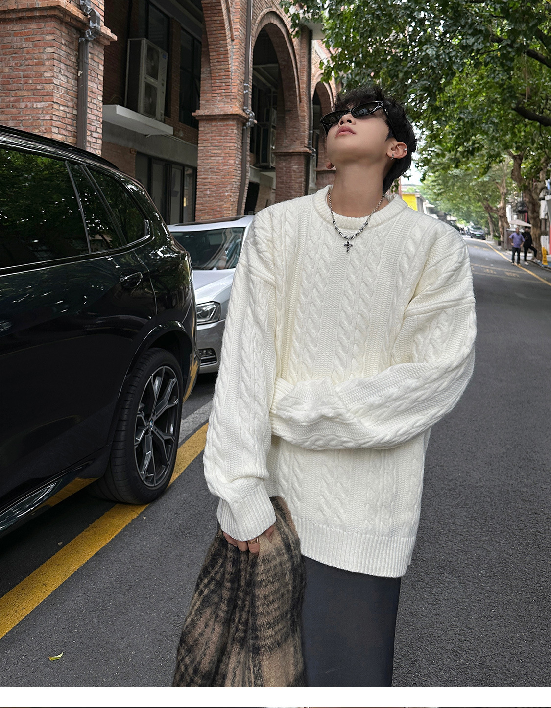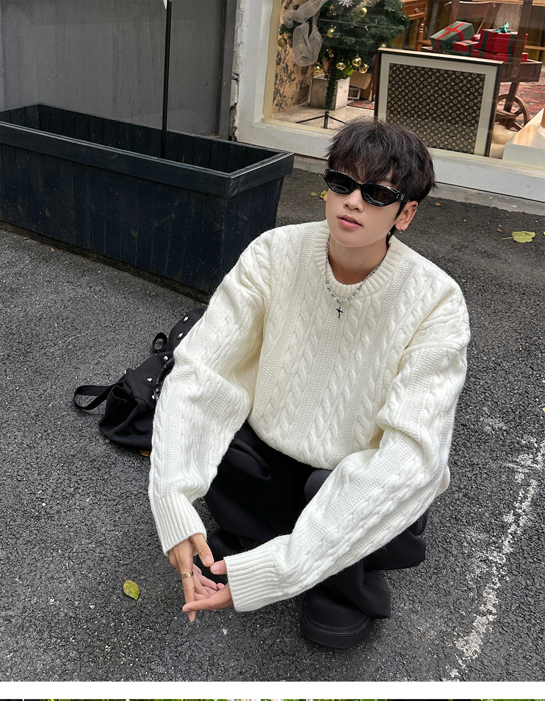 다크 그레이 트위스트 스웨터 남자의 가을과 겨울 오버 사이즈 게으른 스타일 크루 넥 재킷 패션 브랜드 하이 엔드 스웨터스토어 가기