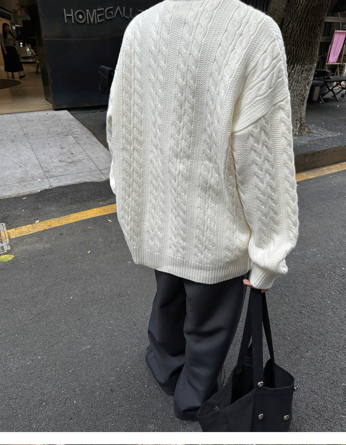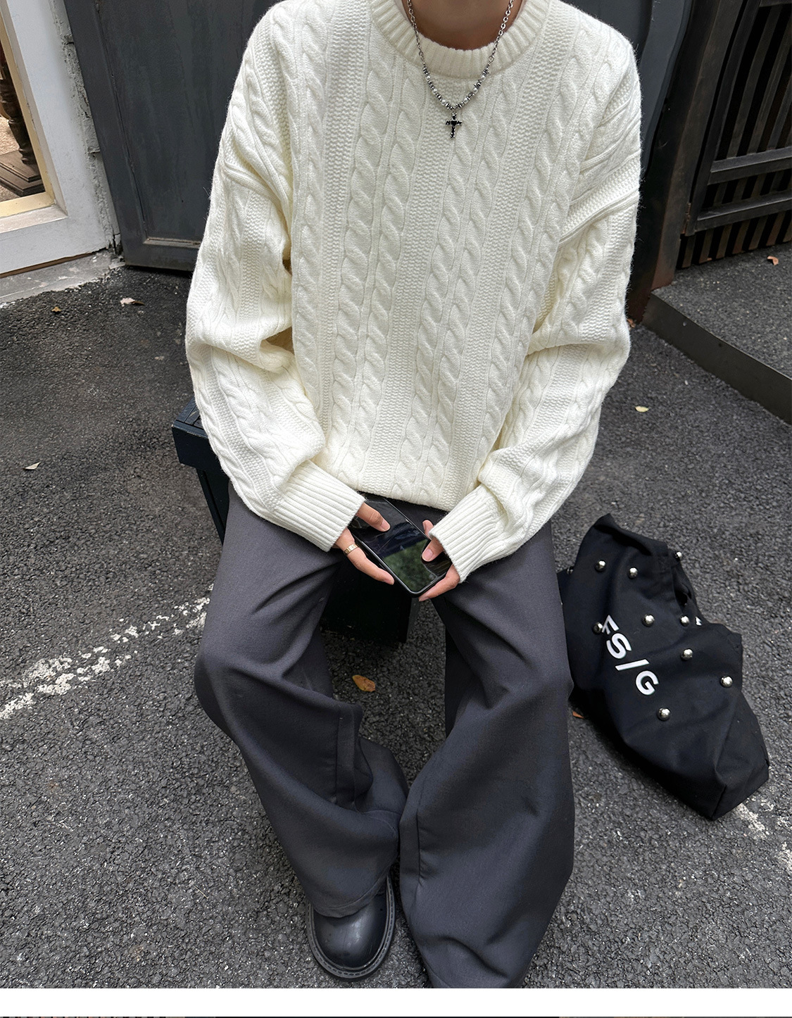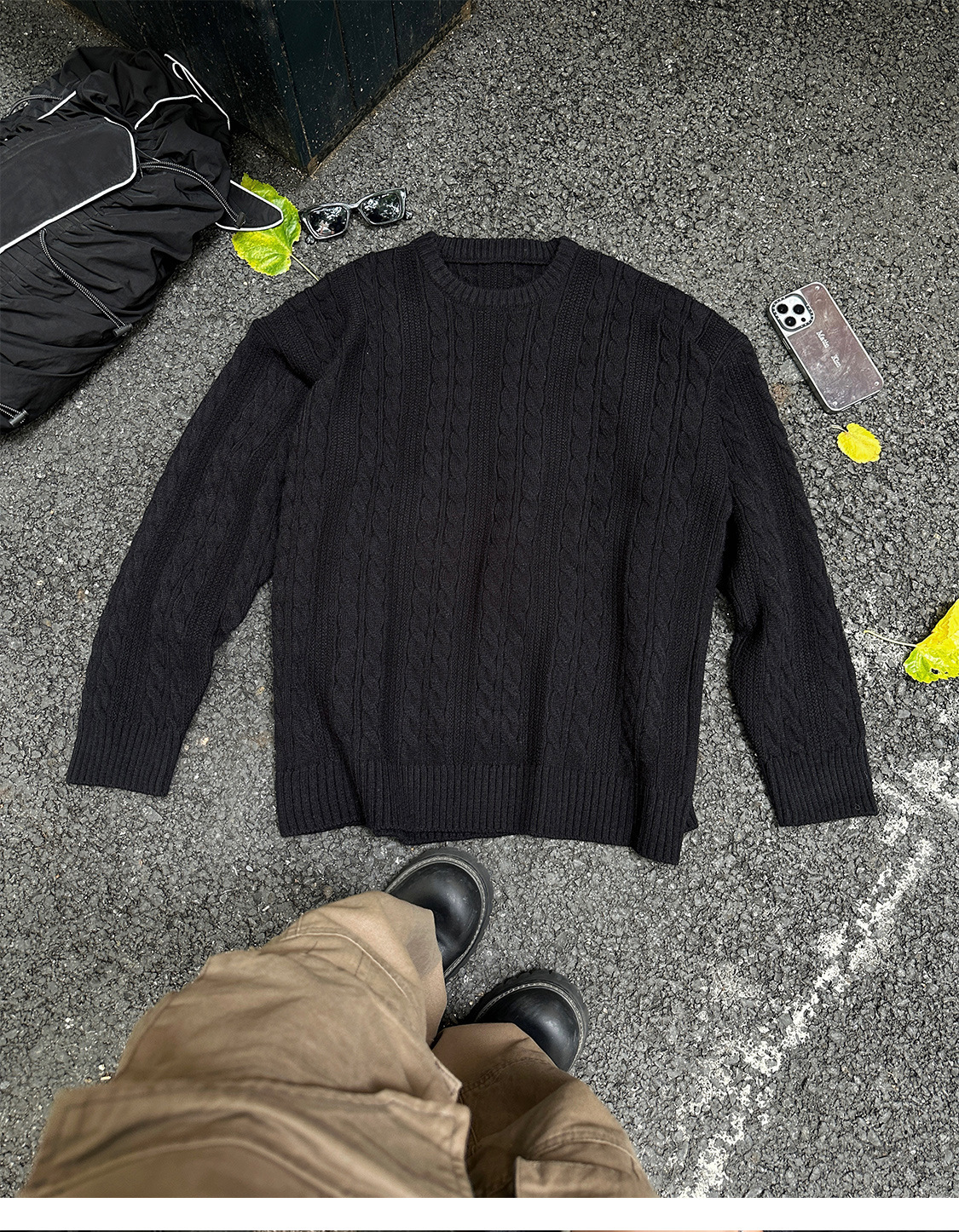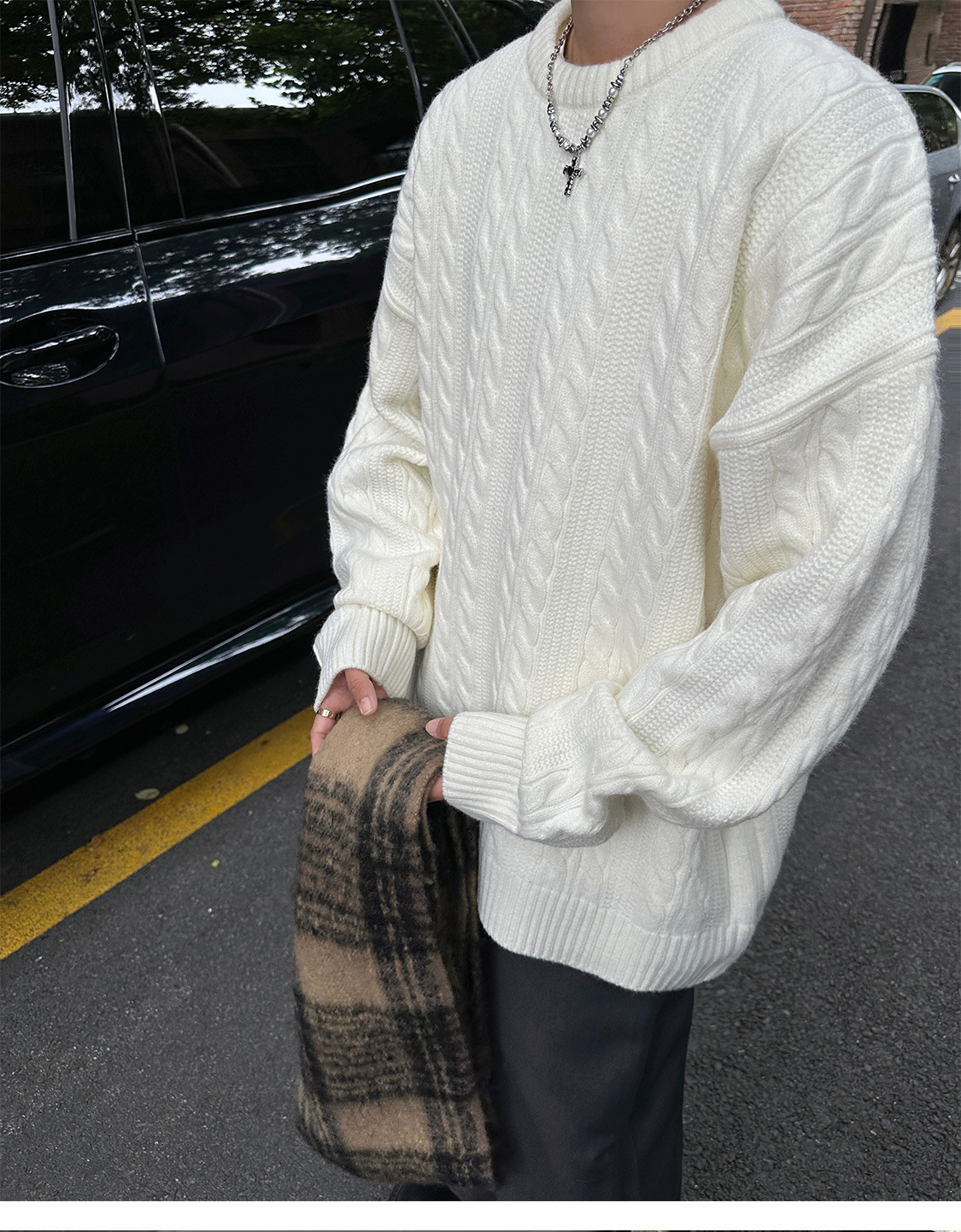 다크 그레이 트위스트 스웨터 남자의 가을과 겨울 오버 사이즈 게으른 스타일 크루 넥 재킷 패션 브랜드 하이 엔드 스웨터스토어 가기