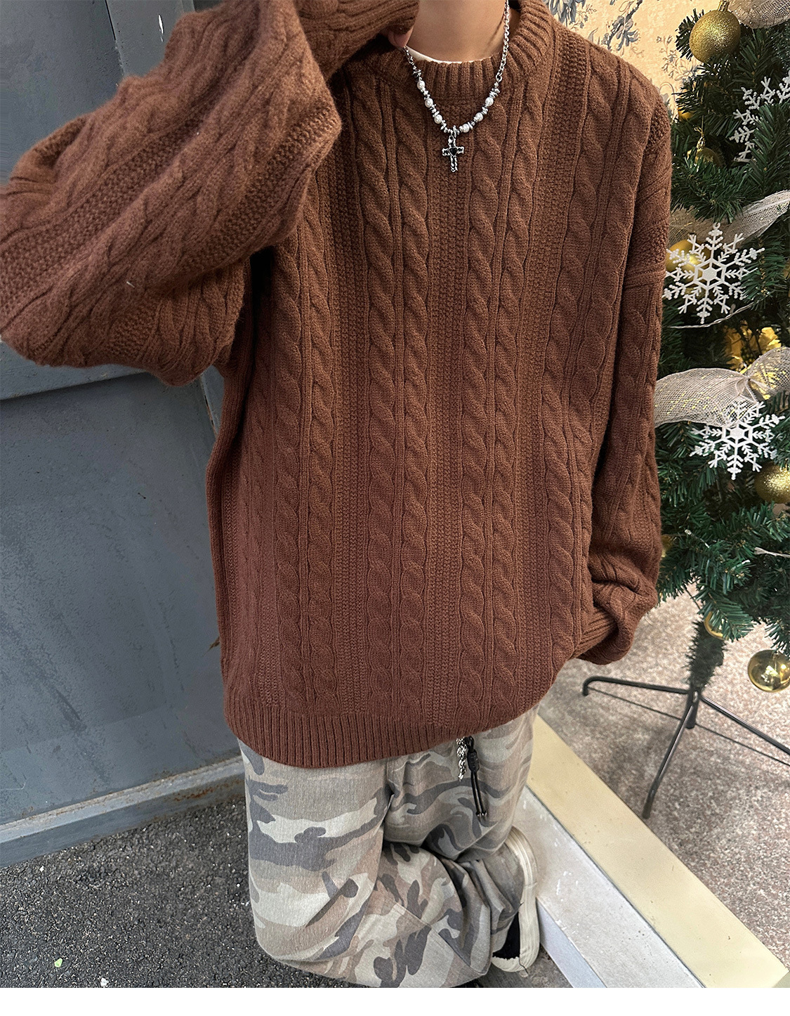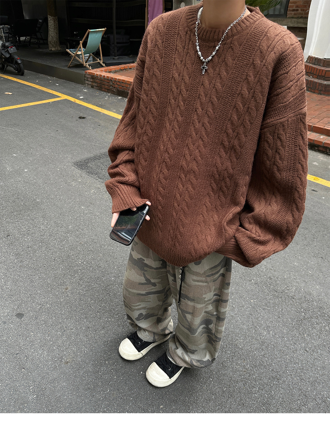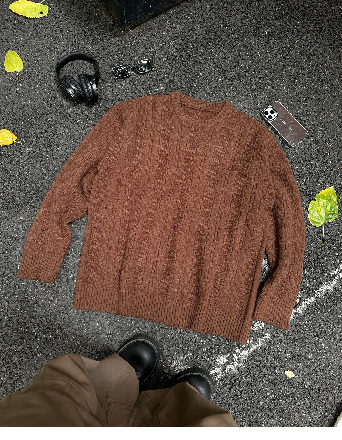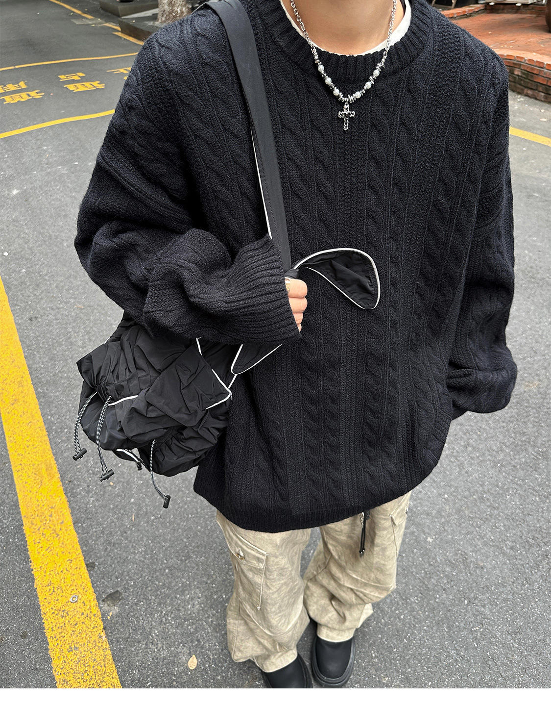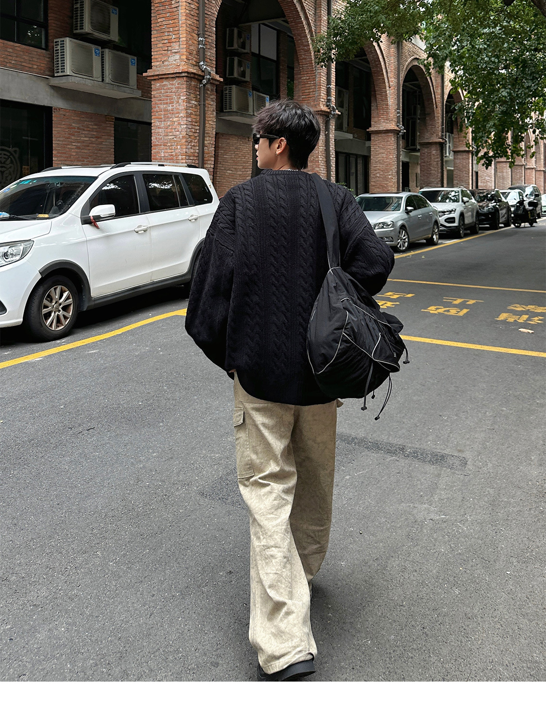 다크 그레이 트위스트 스웨터 남자의 가을과 겨울 오버 사이즈 게으른 스타일 크루 넥 재킷 패션 브랜드 하이 엔드 스웨터스토어 가기