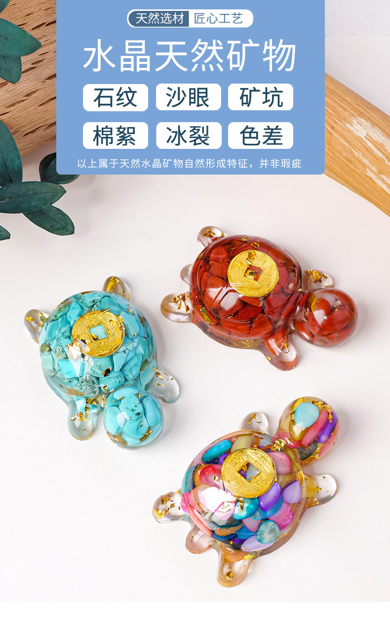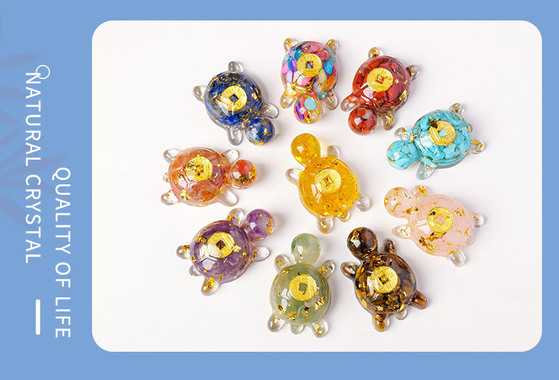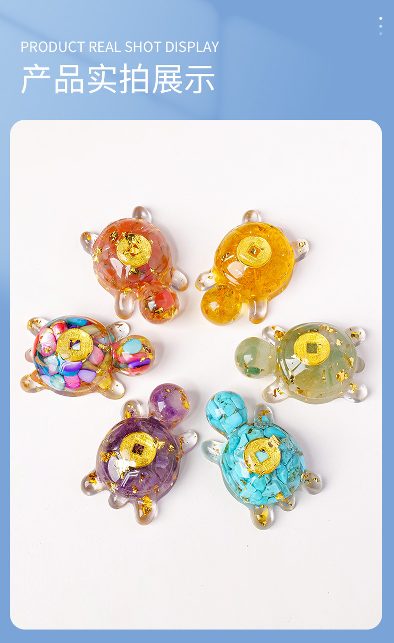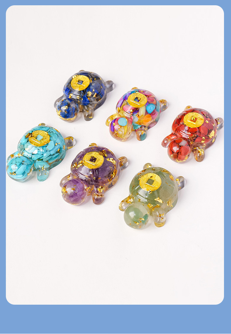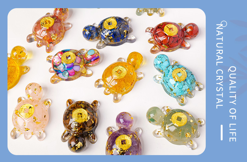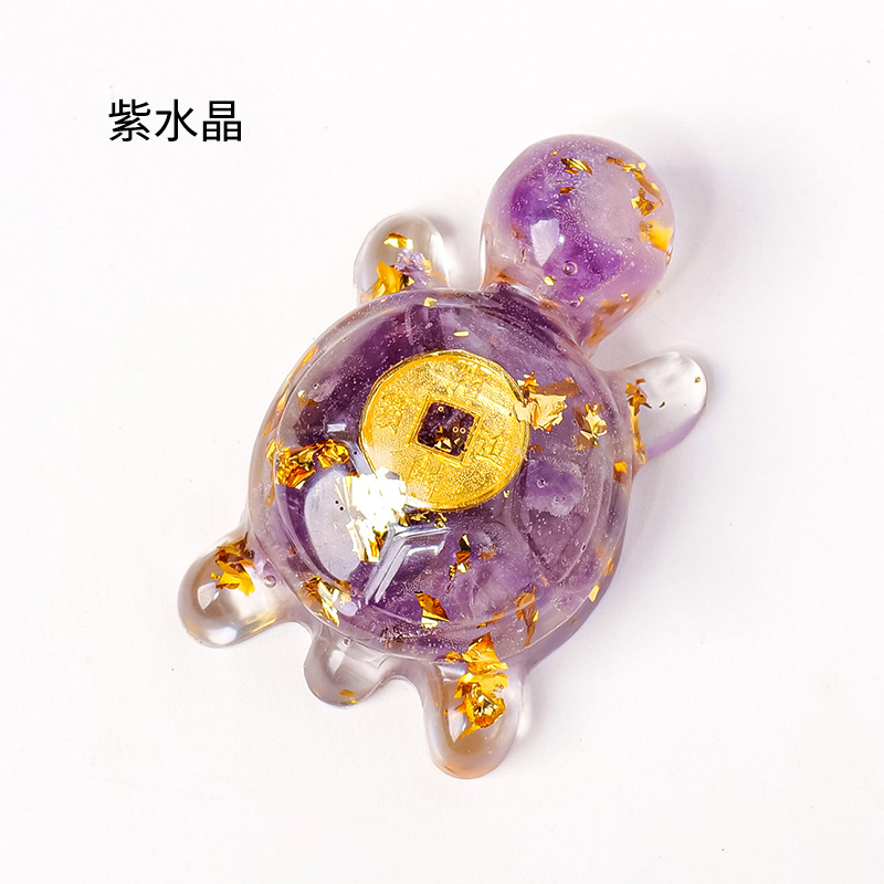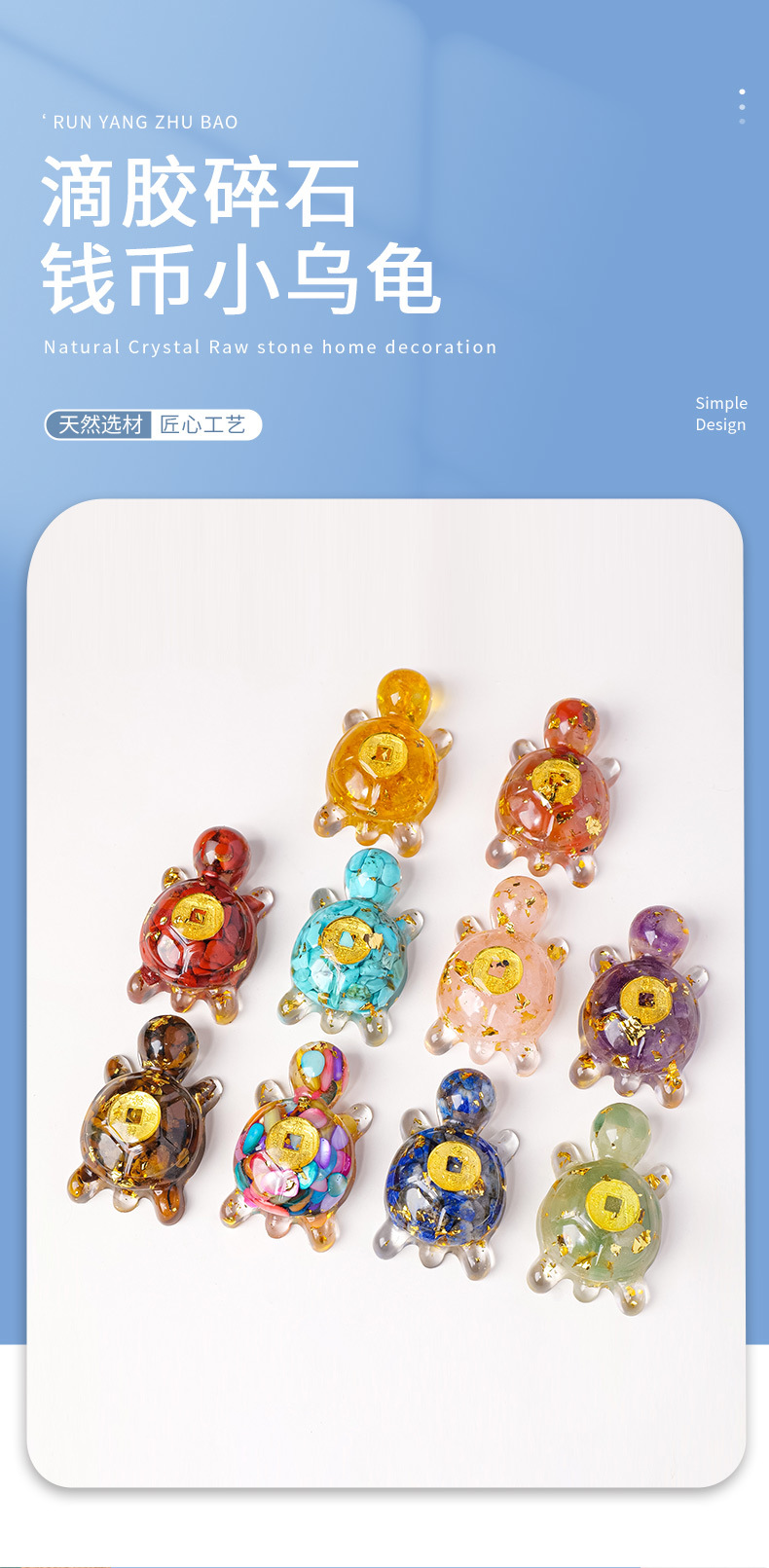 국경 간 자연 크리스탈 잔해 거북 수지 공예 황금 거북 홈 데스크탑 장식 장식품 도매
